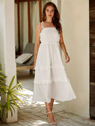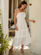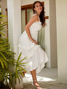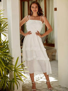 فستان كامي بحواف مكشكشة على الأكتاف بعقدة على شكل كشكش