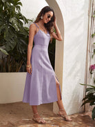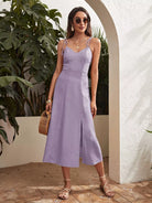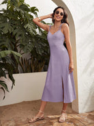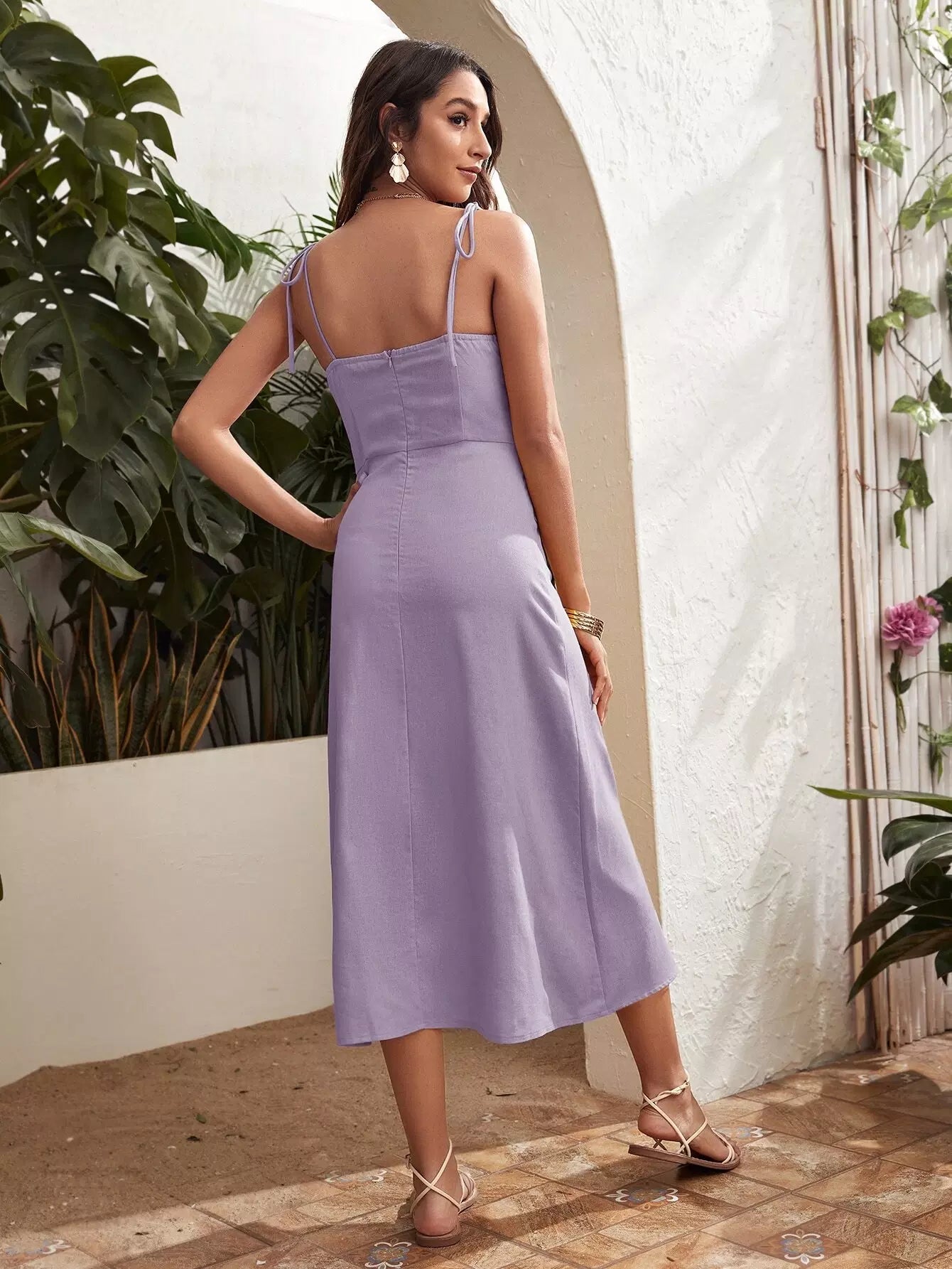 فستان بفتحة كتف منقسمة على الفخذين بعقدة