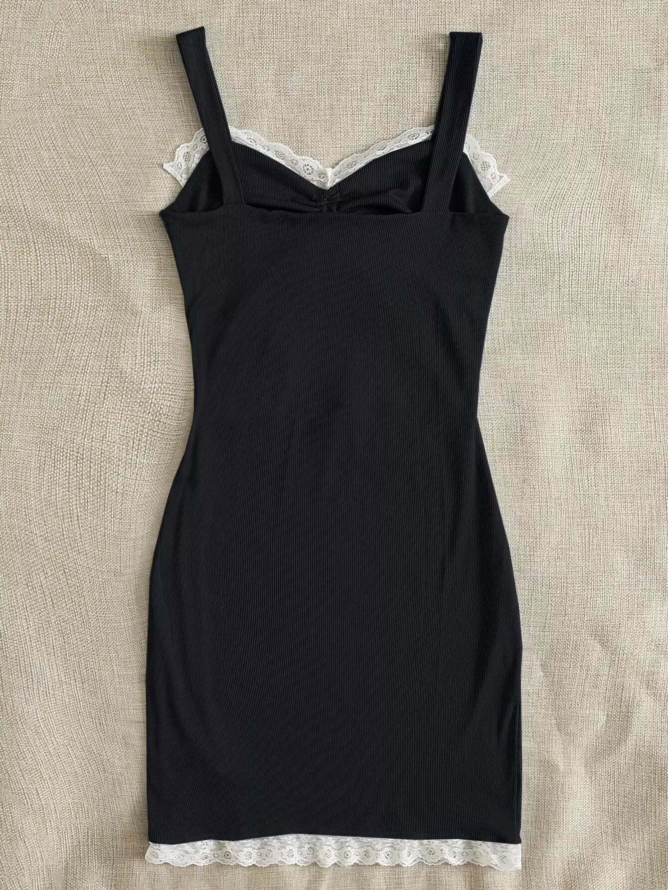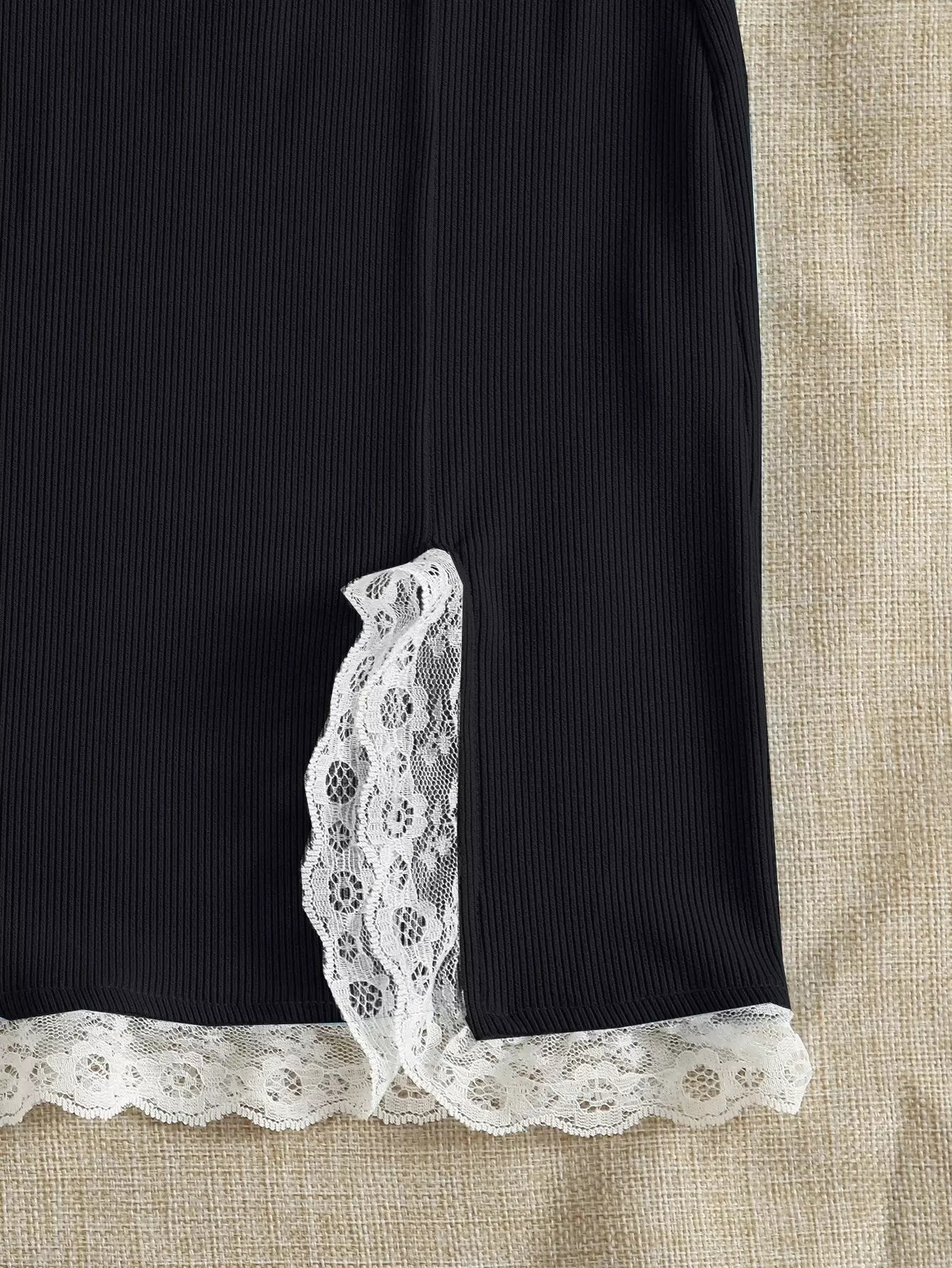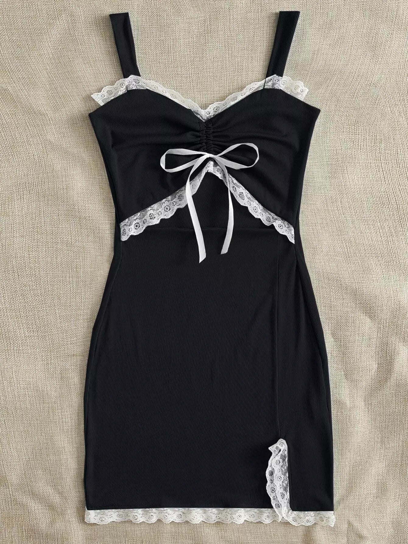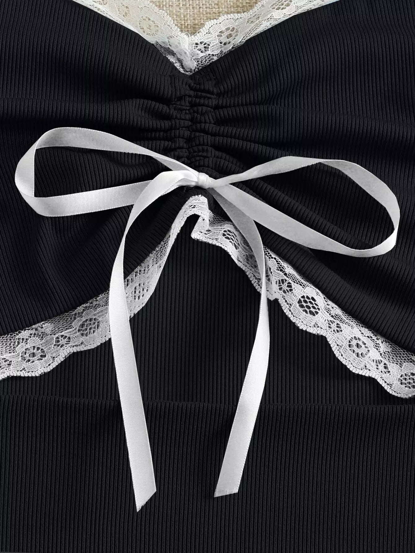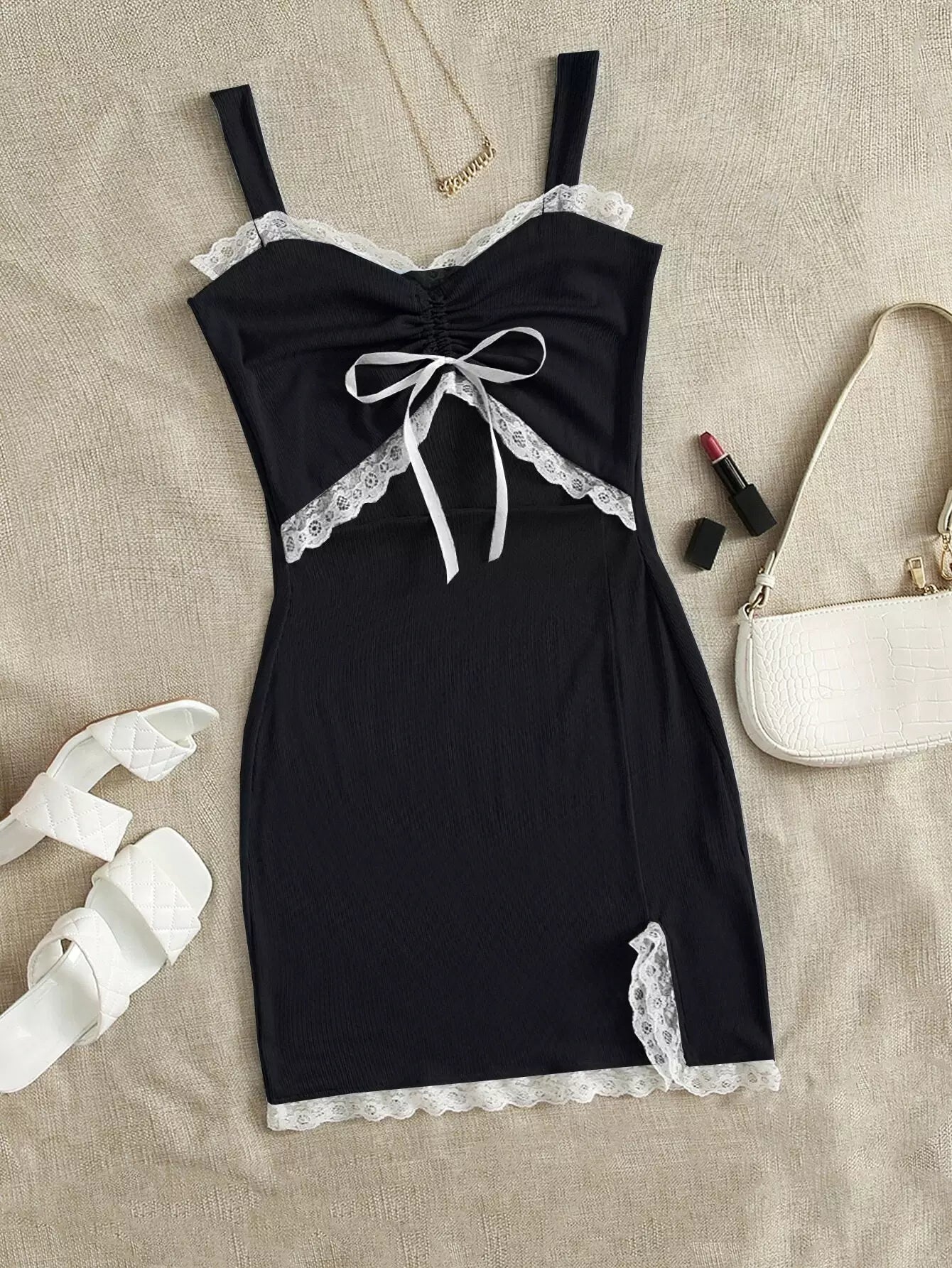 فستان كامي بربطة أمامية من الدانتيل بتفاصيل من الدانتيل