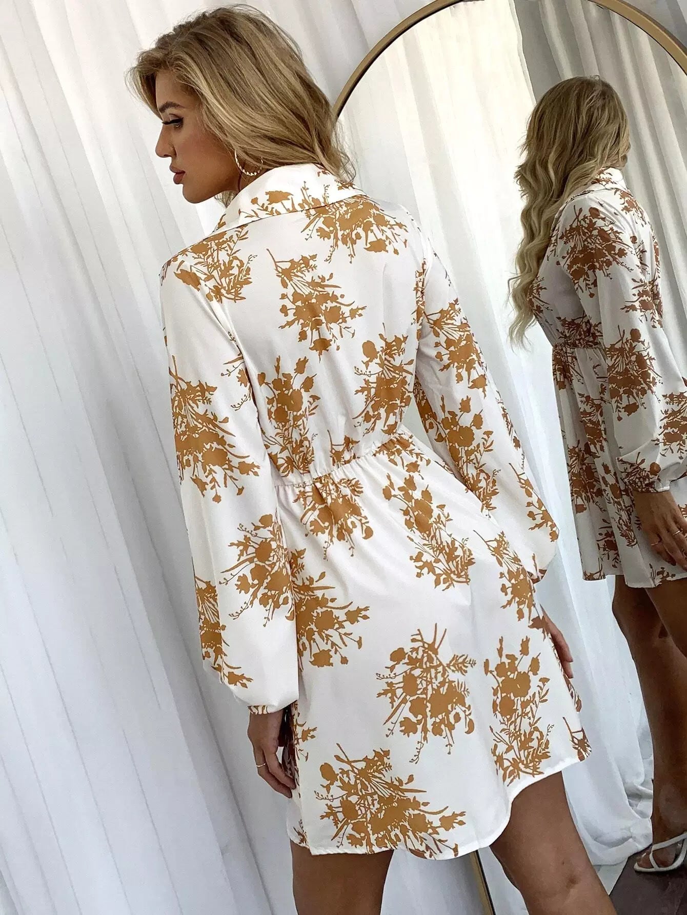 فستان بأكمام فانوس بأزرار أمامية من الأزهار