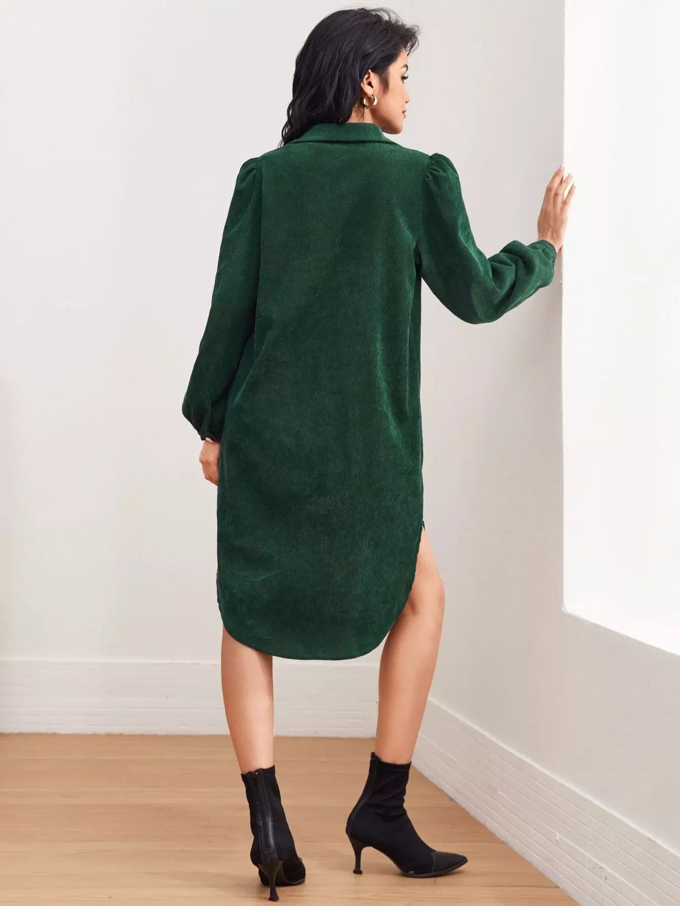 فستان قميص بحاشية منحنية وأكمام فانوس بدون حزام