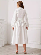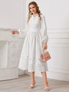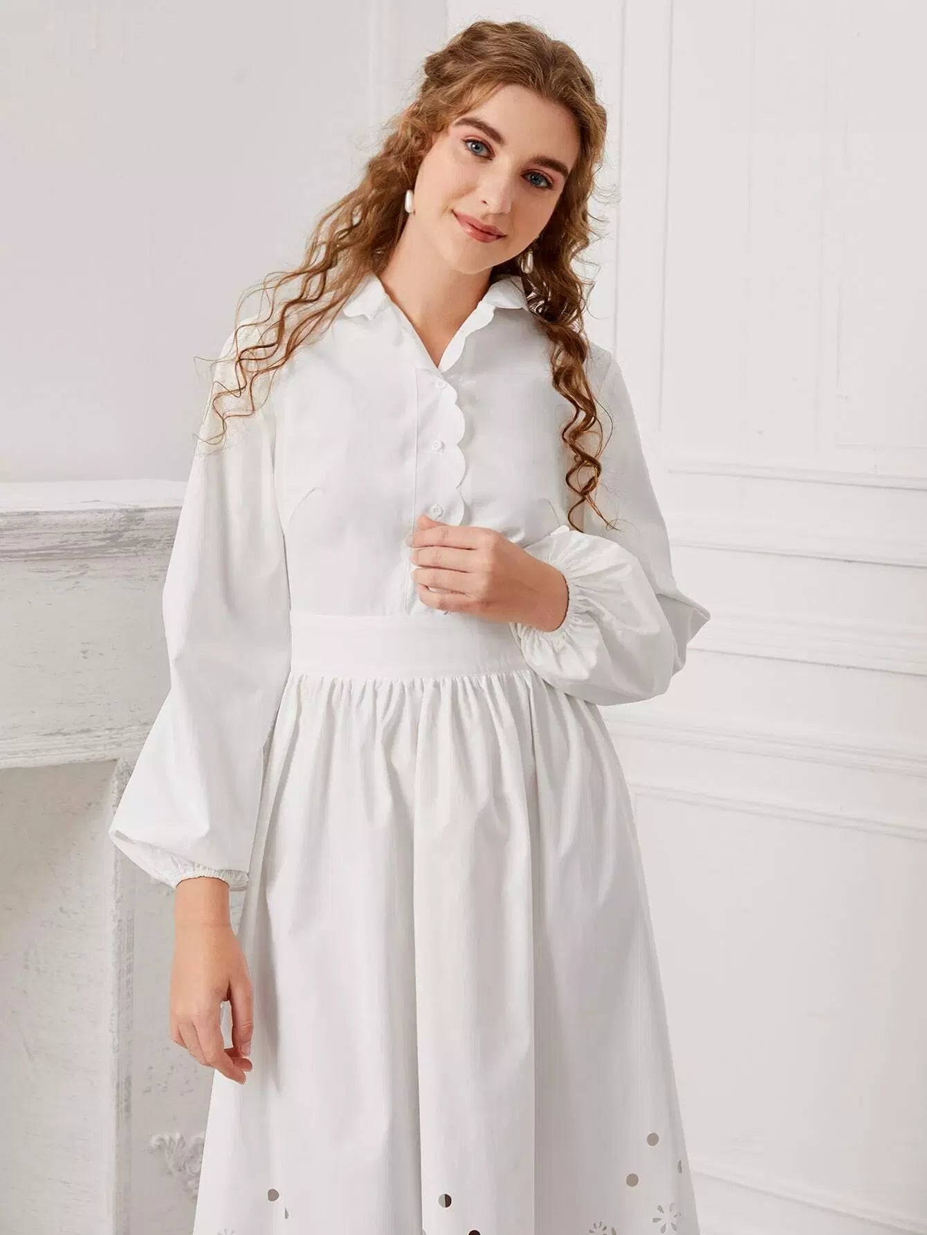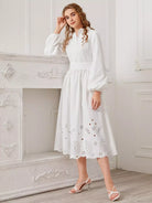 فستان بأكمام فانوس بأكمام ليزر مقصوصة بالليزر