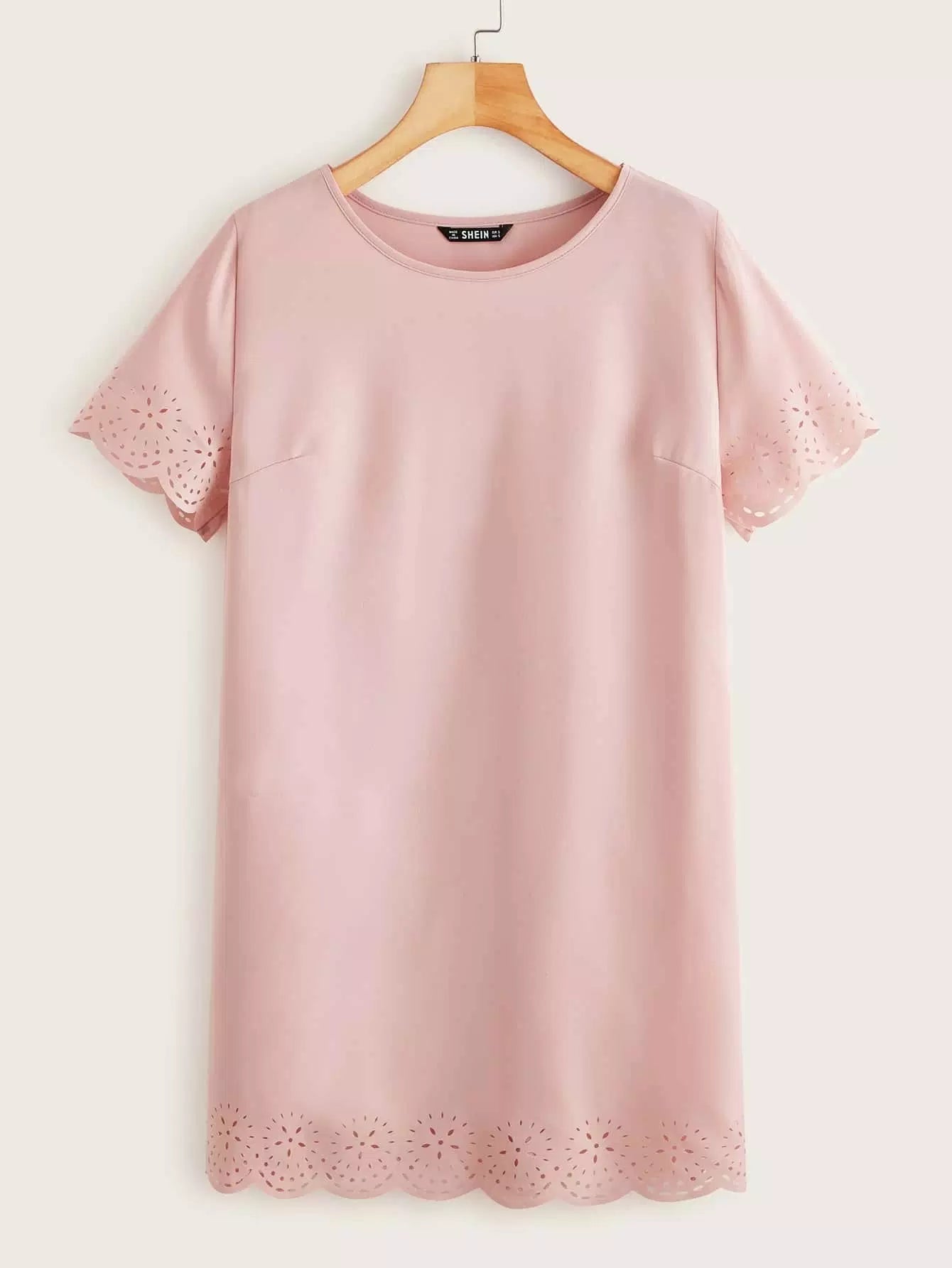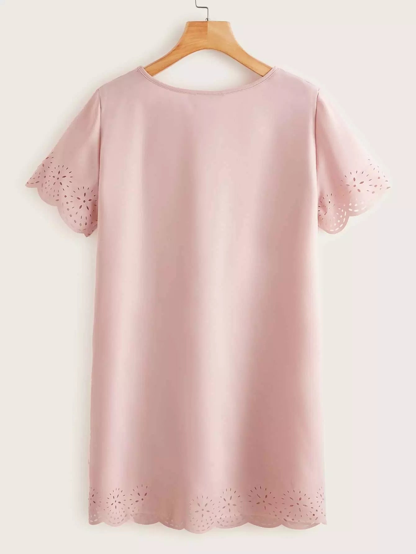 فستان بقصّة ليزر بحافة صدف مقطوعة بالليزر