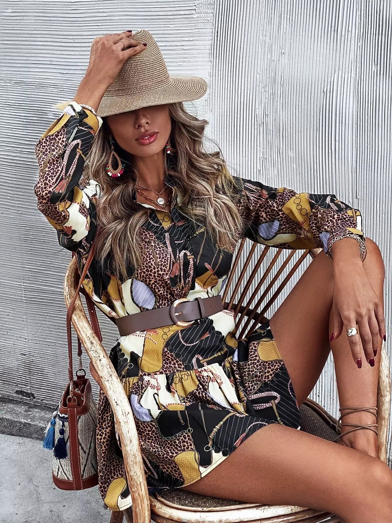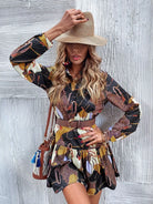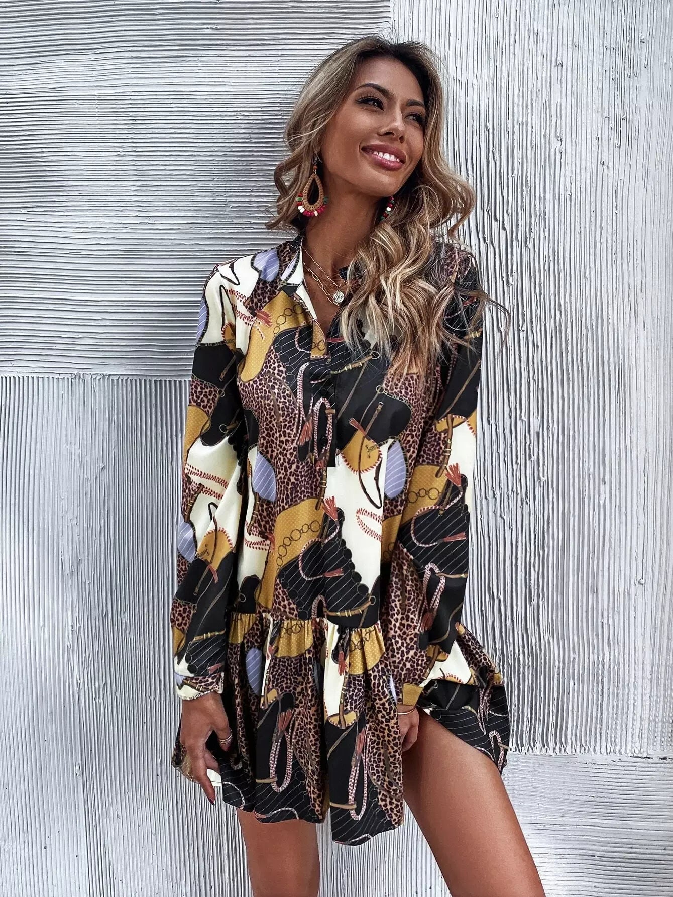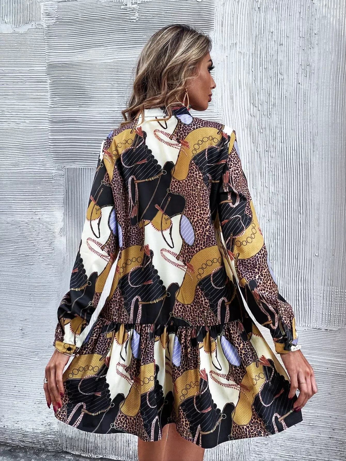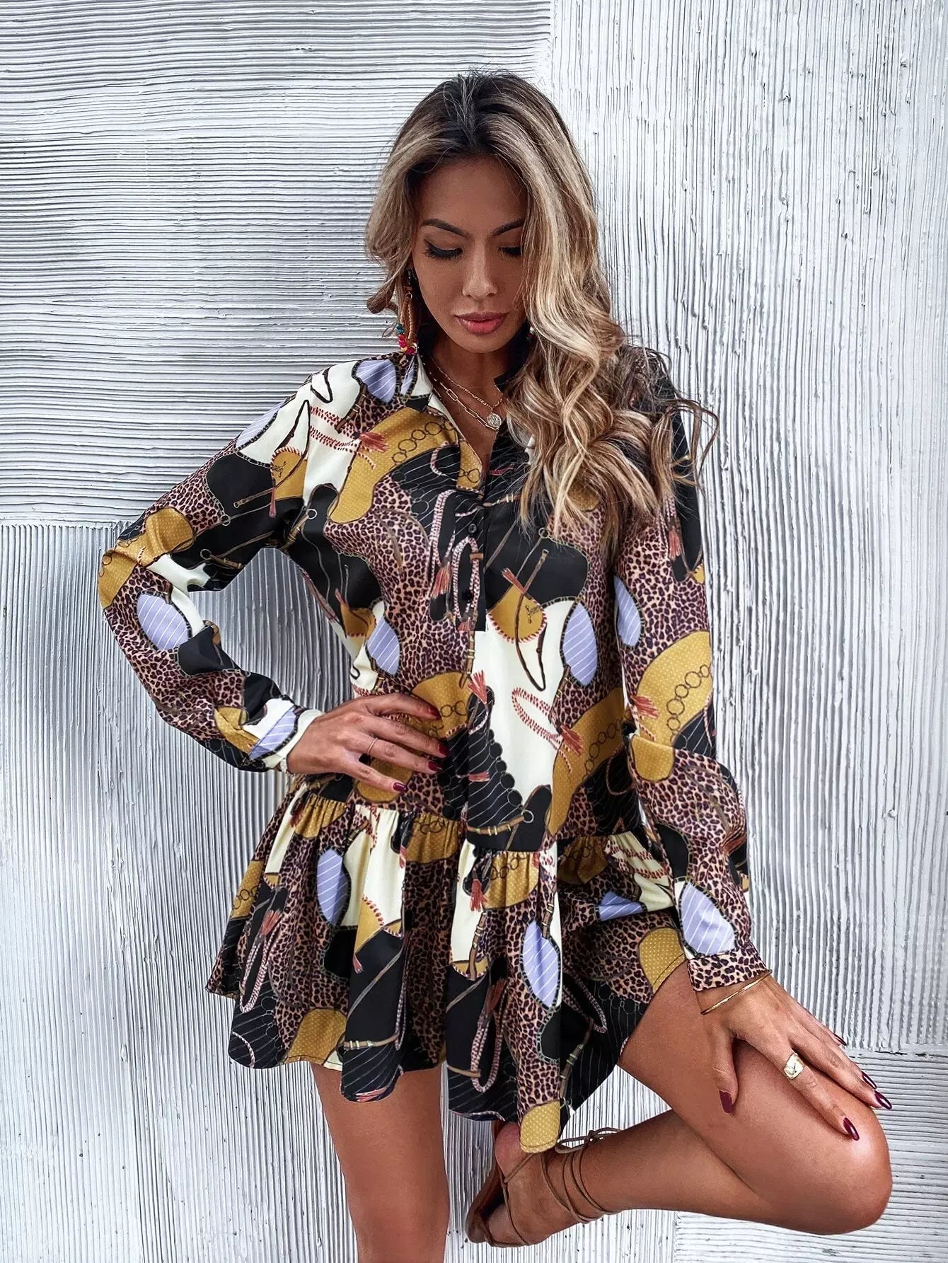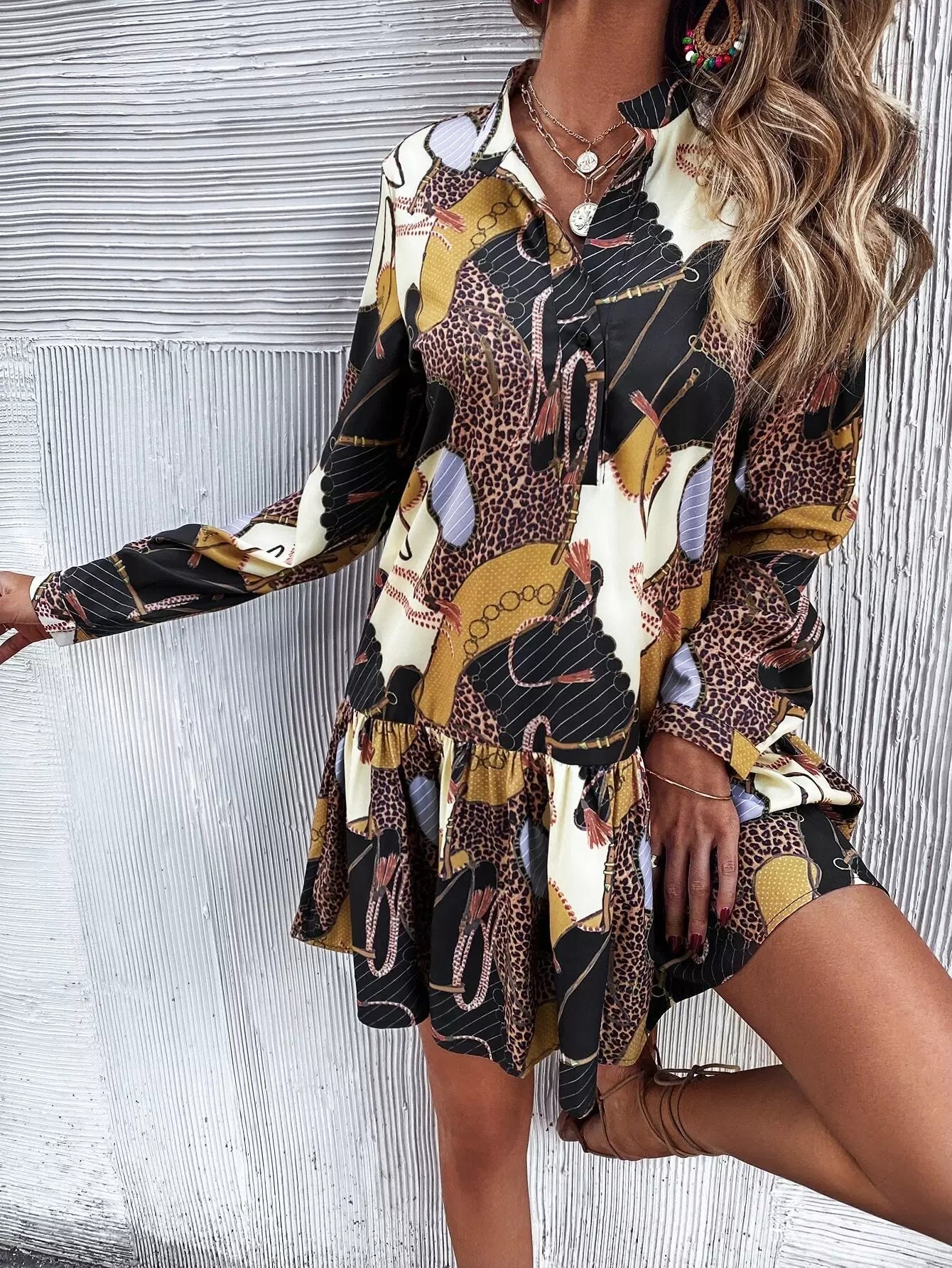 فستان كشكش بحاشية كشكش بطبعة جلد النمر