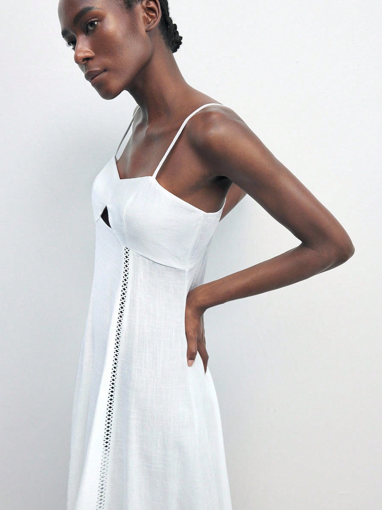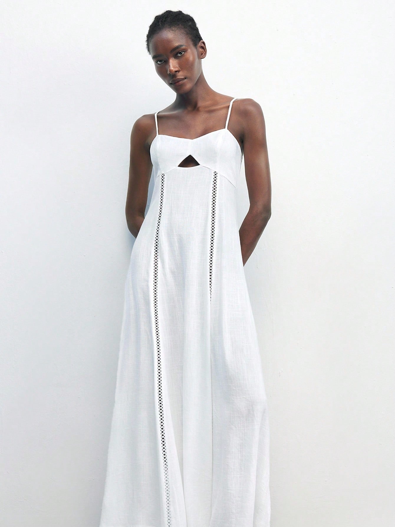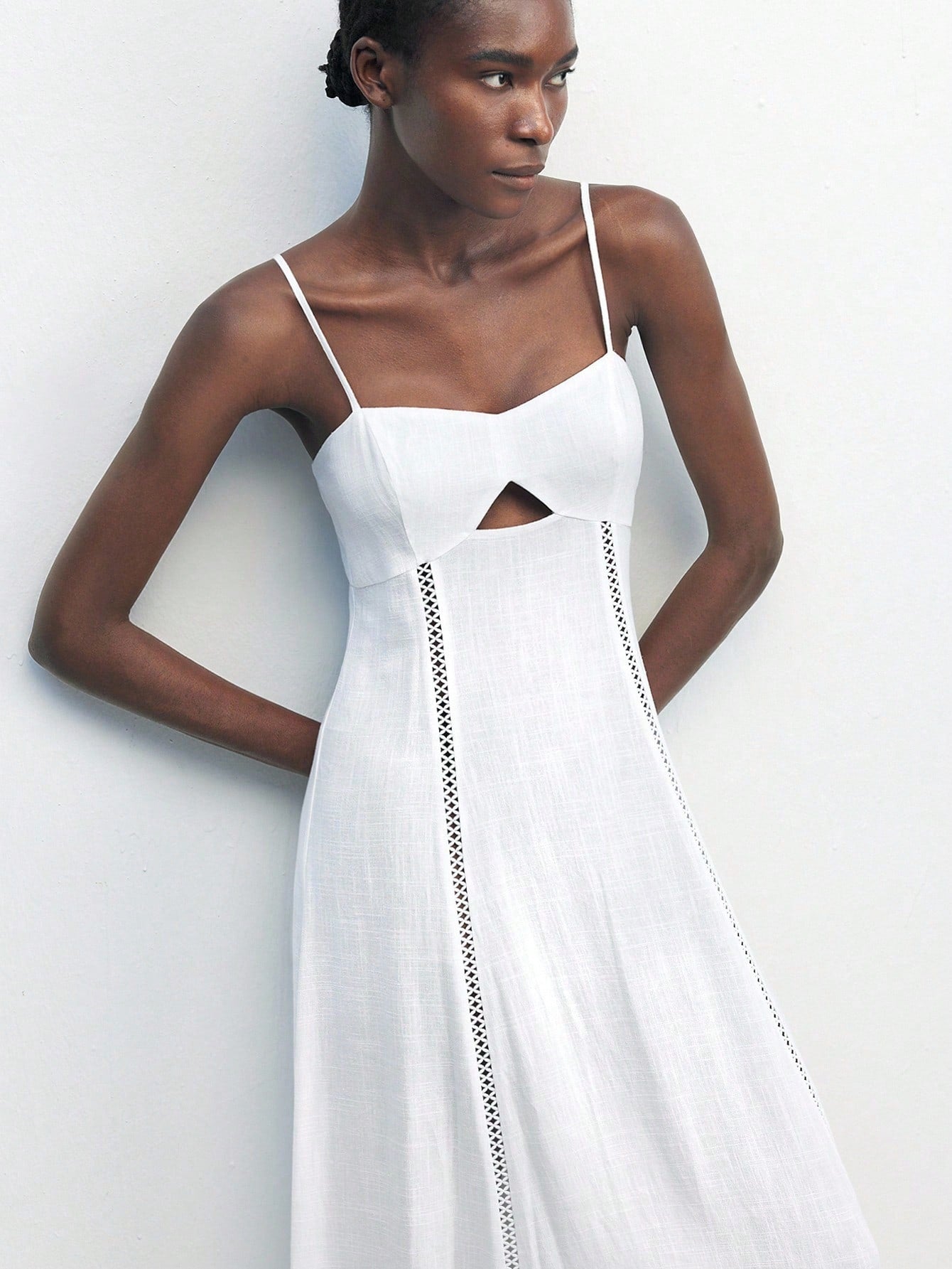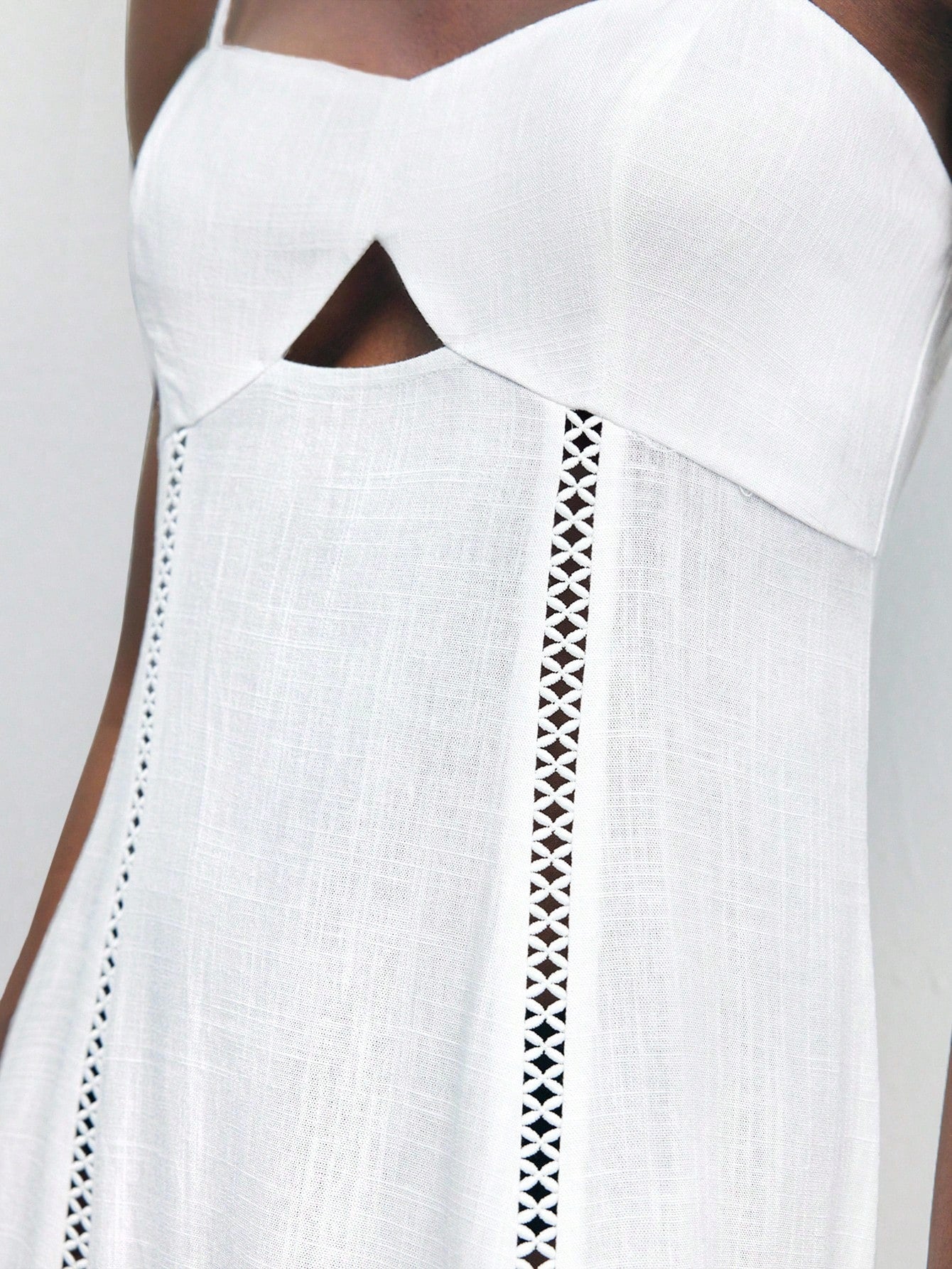 women Maija White Lace Patchwork Sleeveless Dress For Women