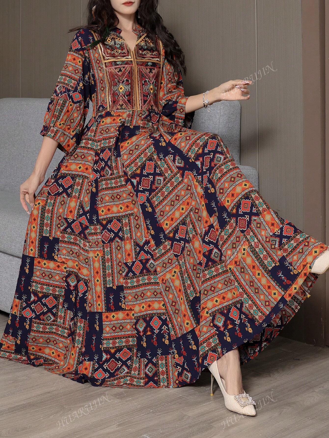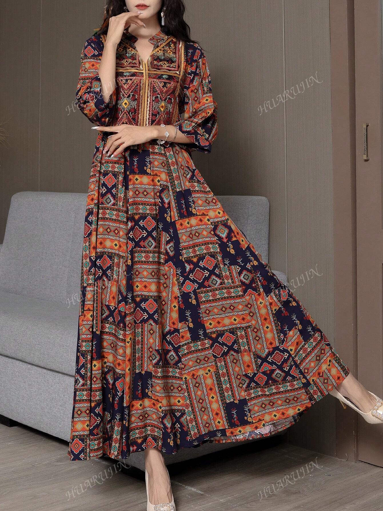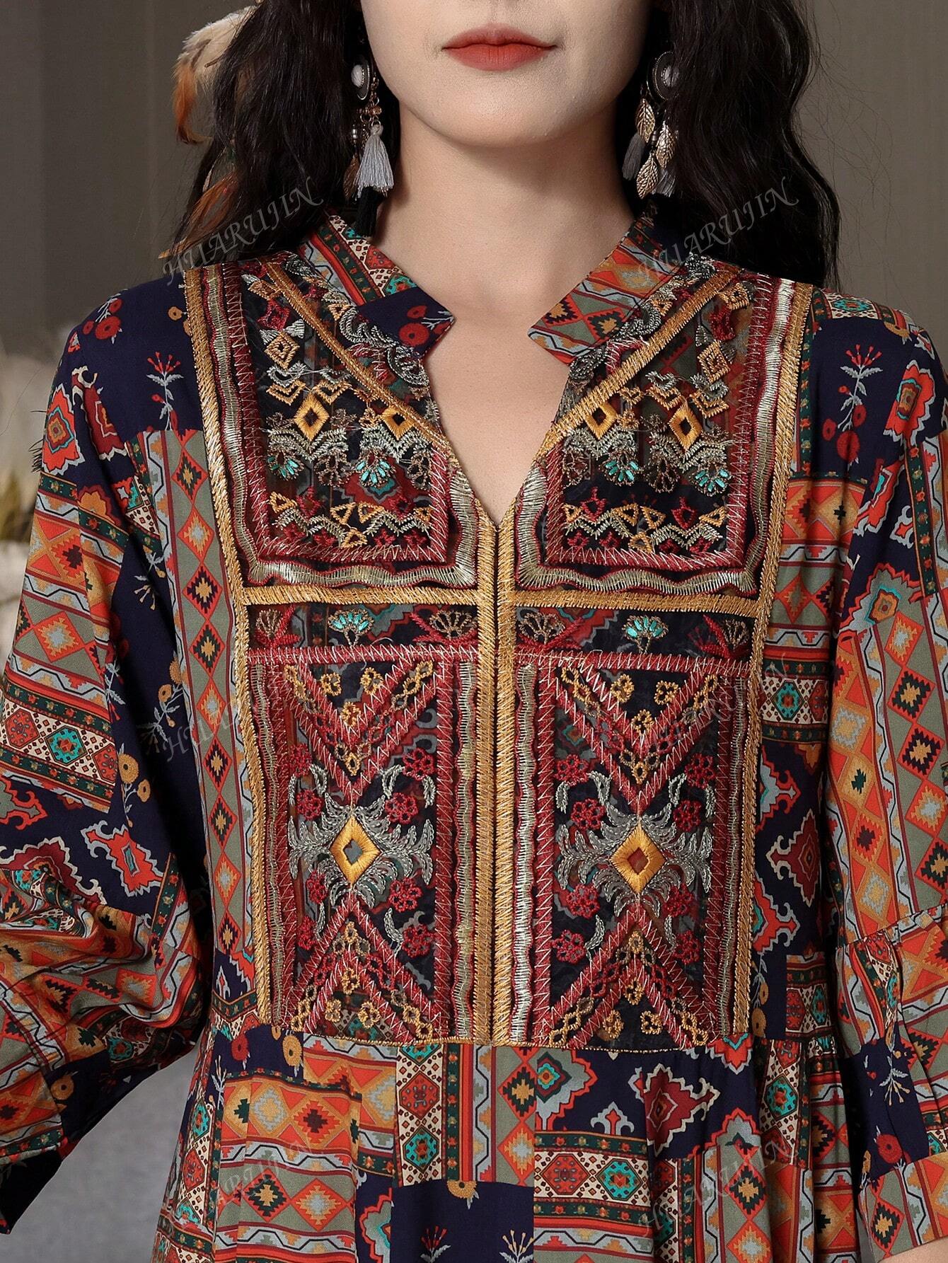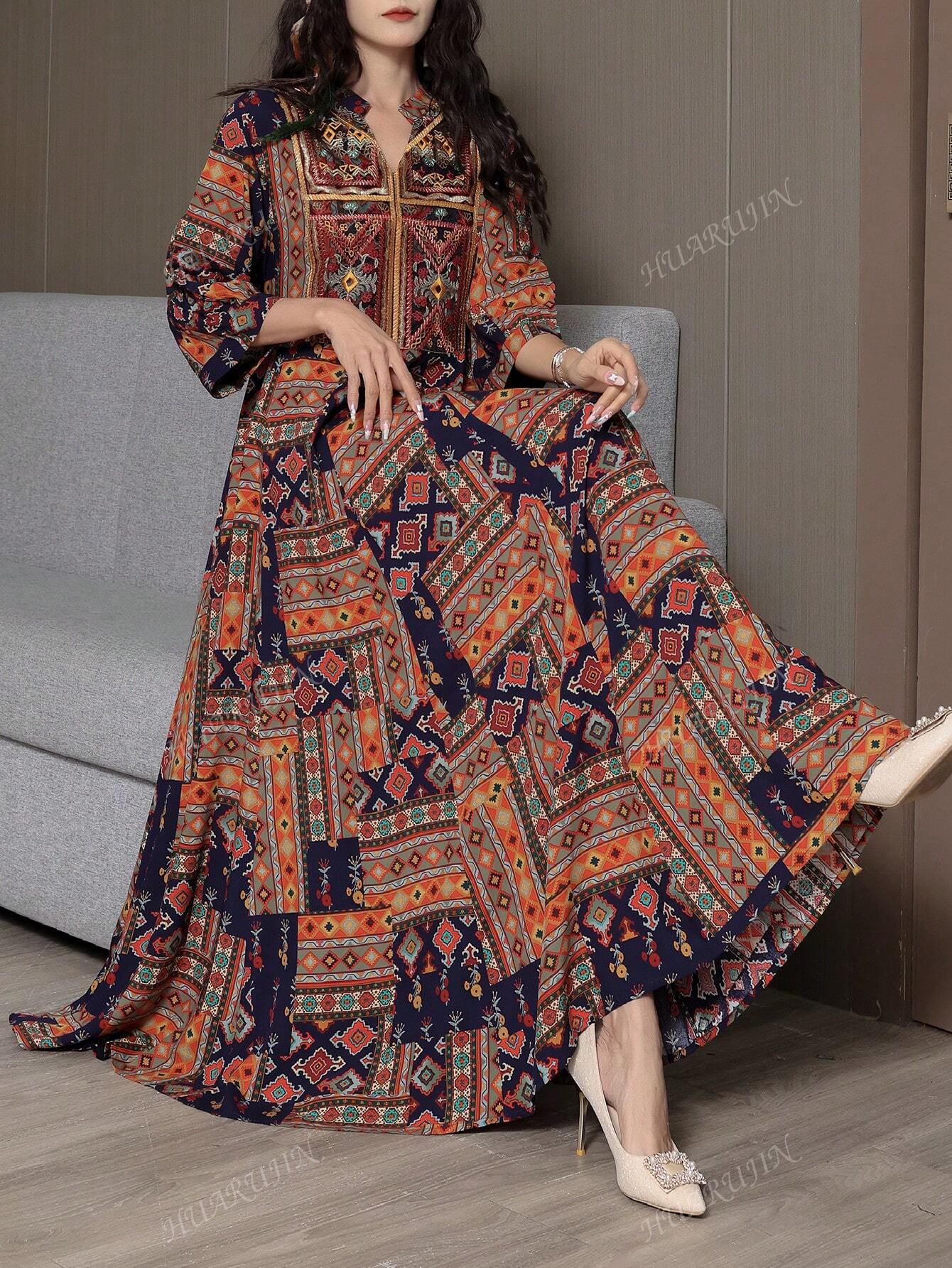 Middle East, Arab, Leisure, Bohemian, Embroidery, Literary, Retro, Vacation Travel Maxi Dress, Modest