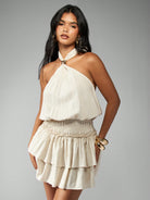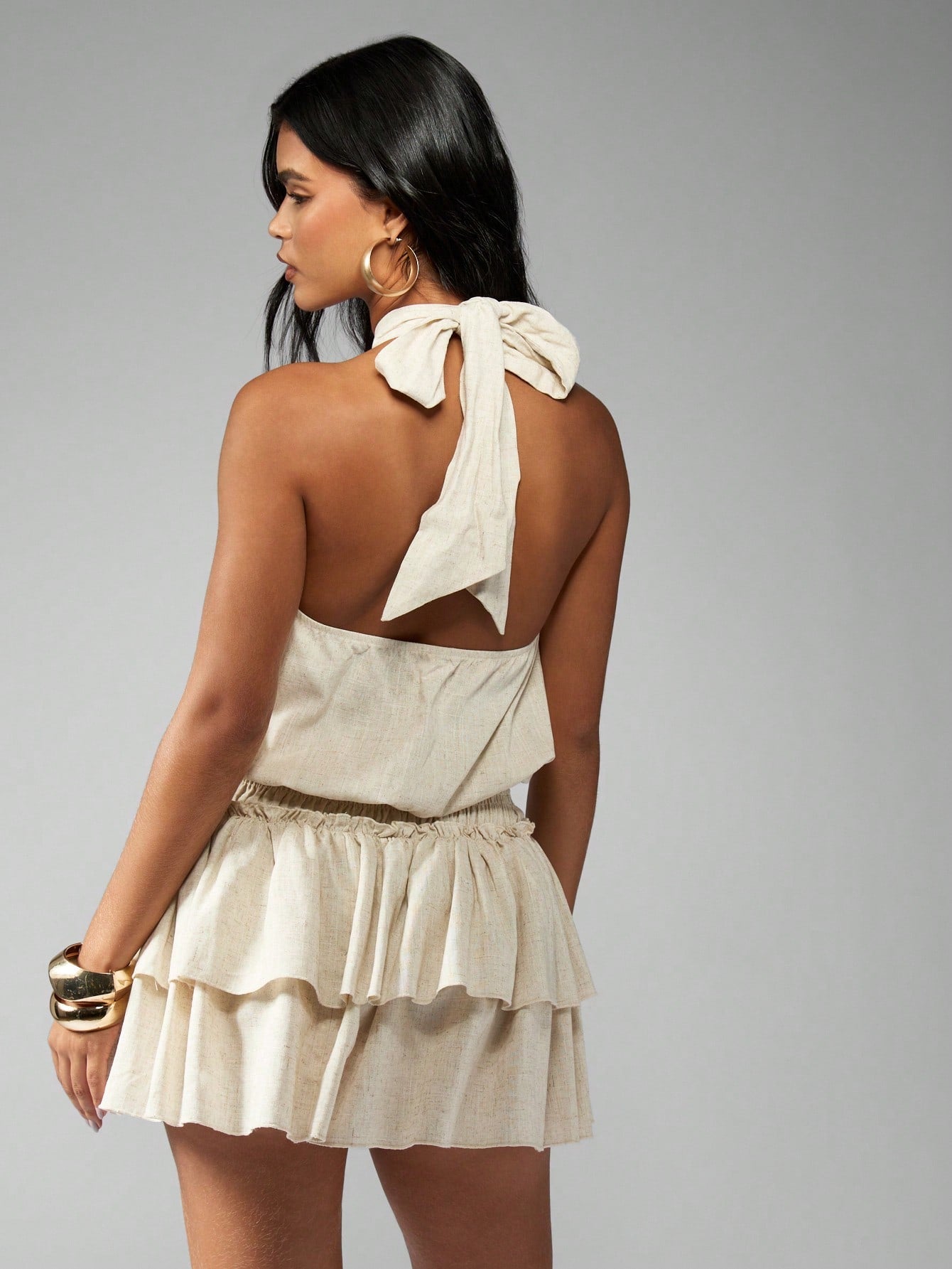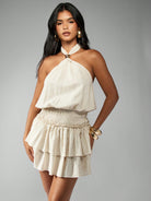 فستان قصير بياقة هالتر وتنورة متعددة الطبقات مكشكشة من ميس جايد، مناسب لحفلات الصيف والسهرات وحفلات الكوكتيل وحفلات الزفاف.