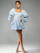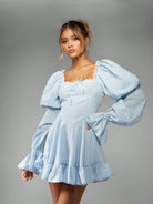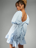 فستان MISSGUIDED Milkmaid قصير بأكمام منتفخة وحواف من الدانتيل وفتحة رقبة مربعة وحافة مكشكشة ومربعات من قماش Skater Spring