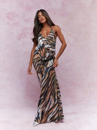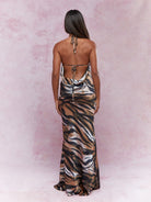 MISSGUIDED Tiger Print Plunge Halter Neck Backless Maxi Dress