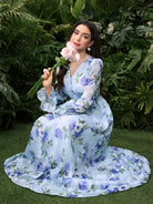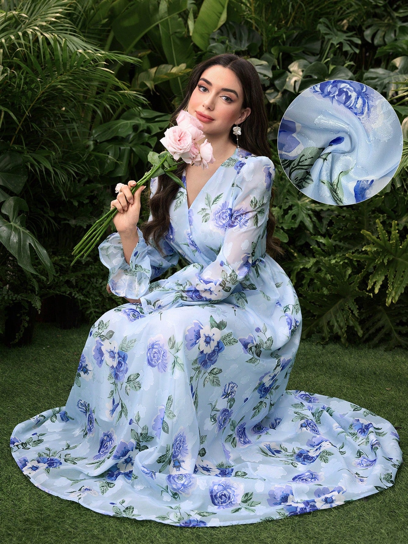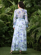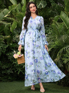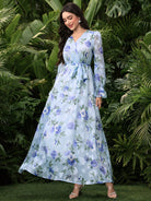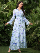 women Modelyn Laser Cut Pattern Crossed V-Neck Belted High Low Dress For Women