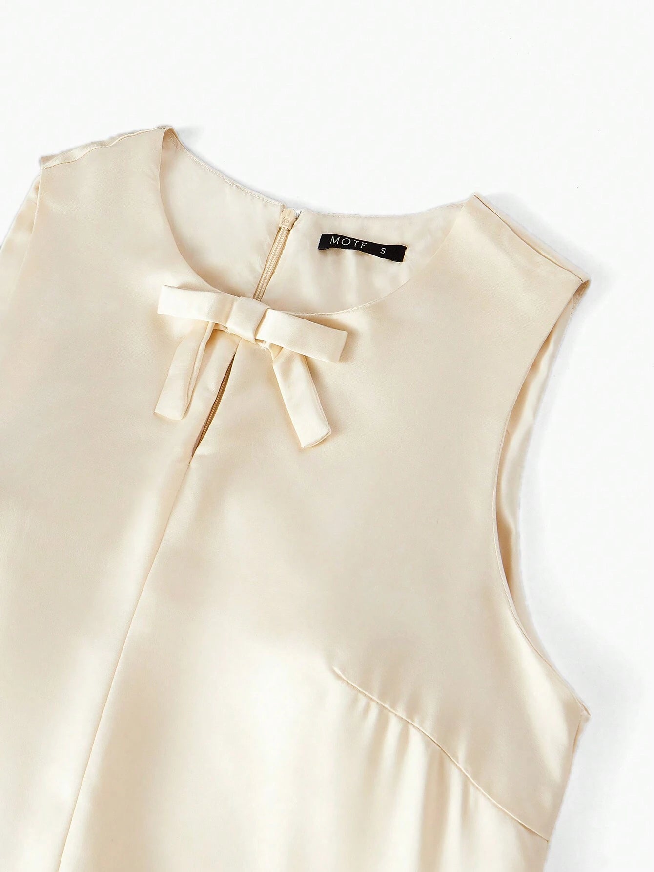 فستان قصير من MOTF PREMIUM مع فيونكة أمامية وحافة متباينة من الترتر