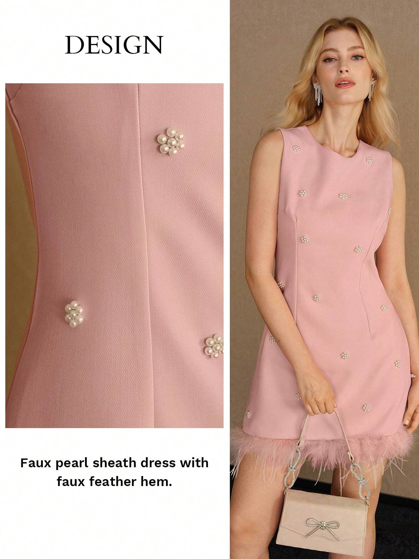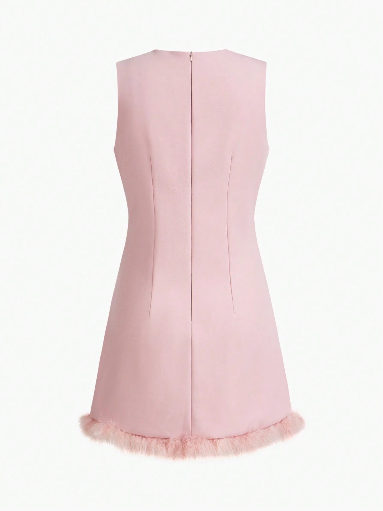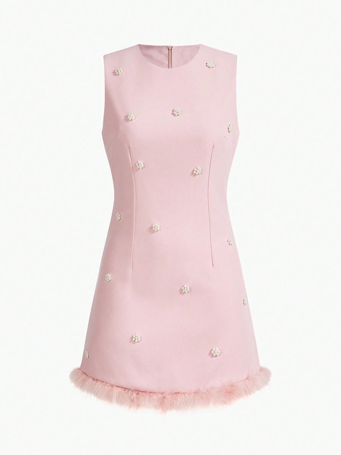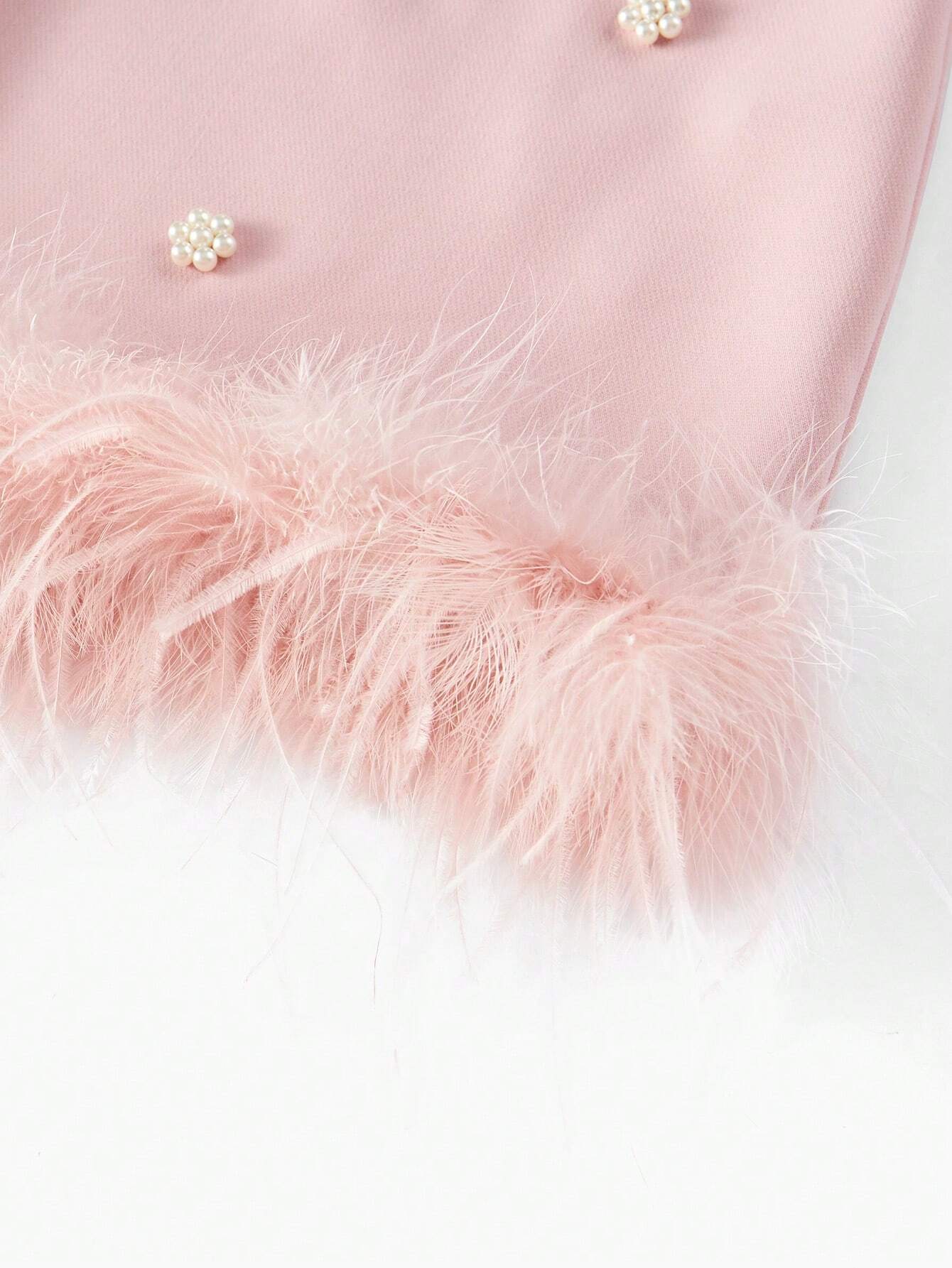 MOTF PREMIUM FAUX PEARL DETAIL FUZZY HEM SHORT DRESS