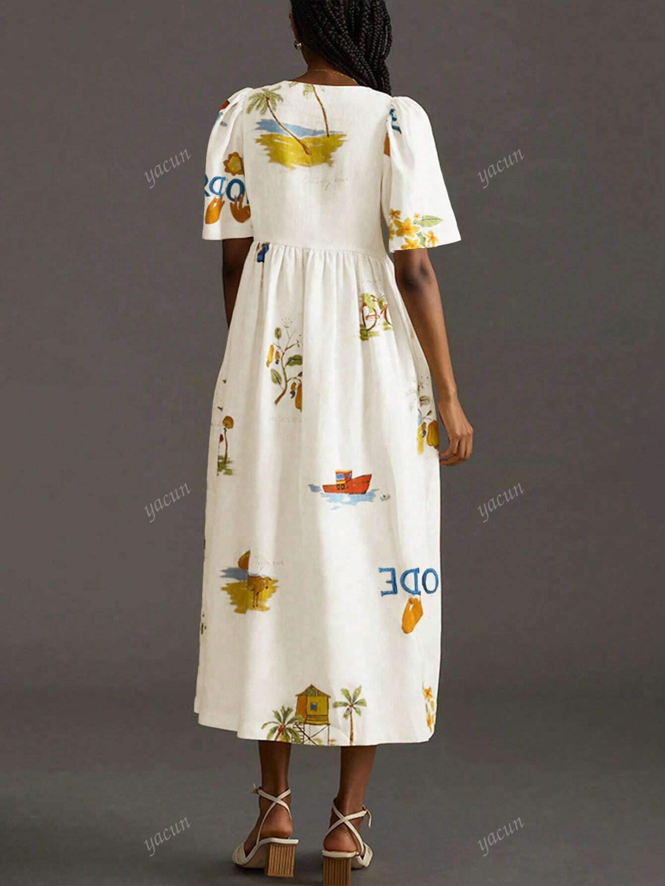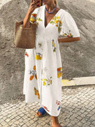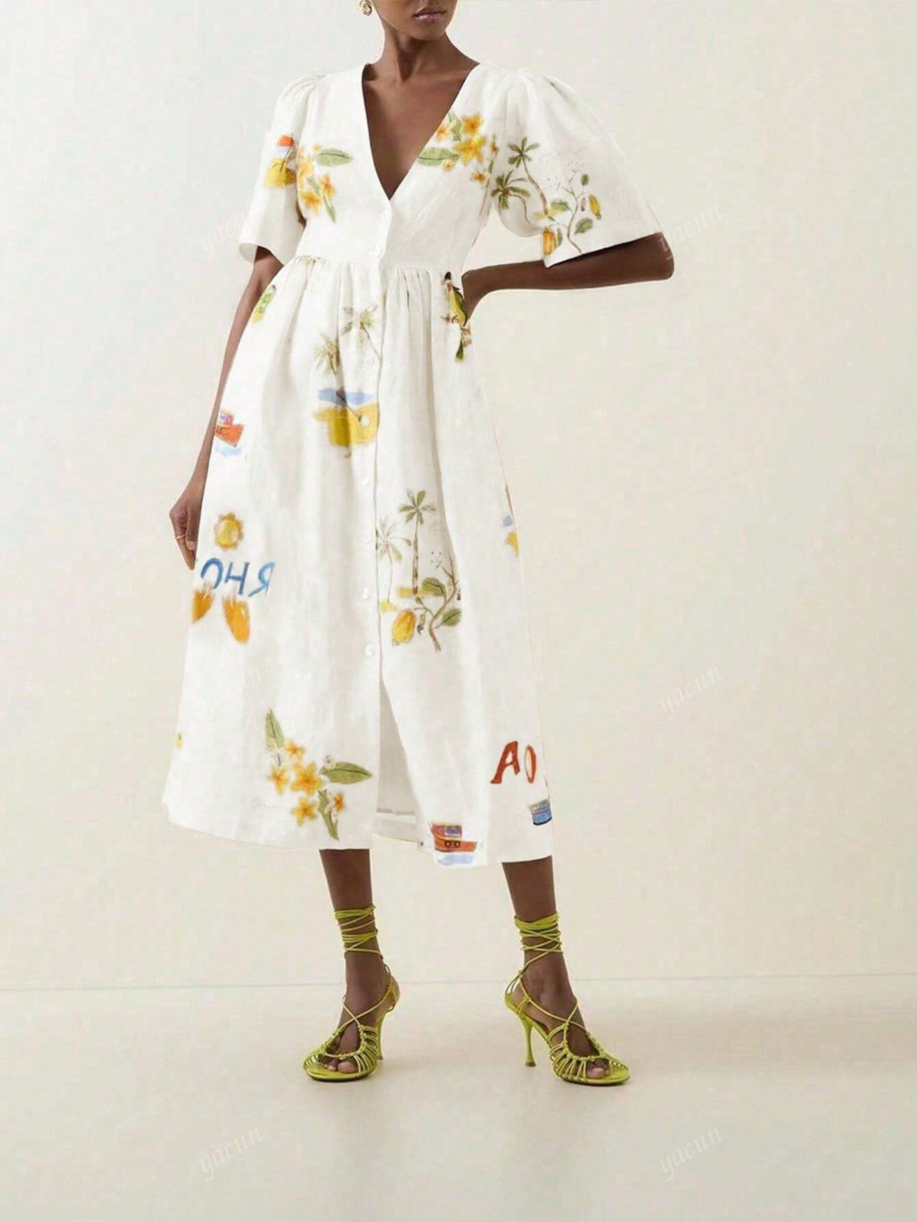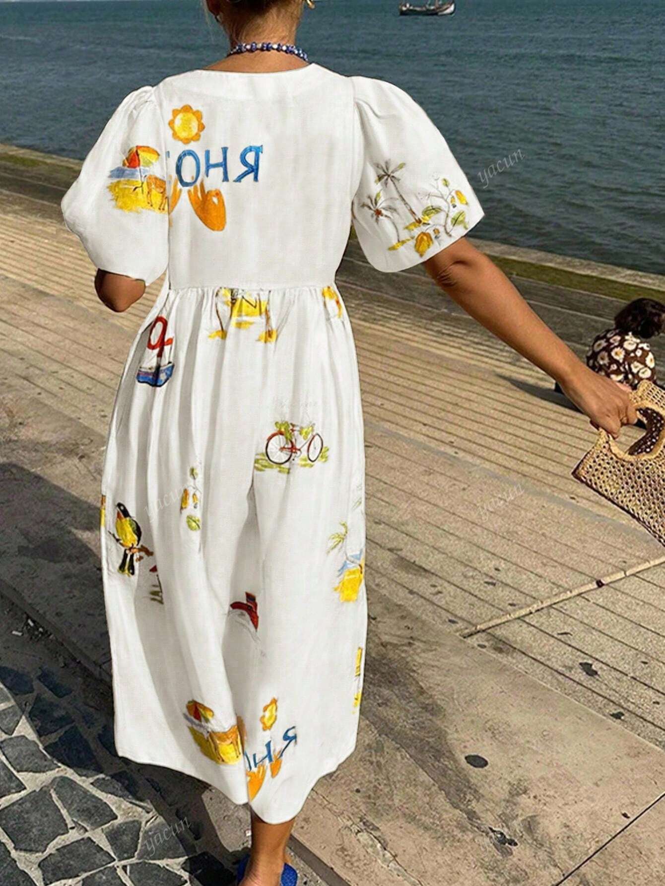 New Spring/Summer Fashion Random Floral Print V-Neck Loose Fit Bubble Short Sleeve Dress For Women, Boho