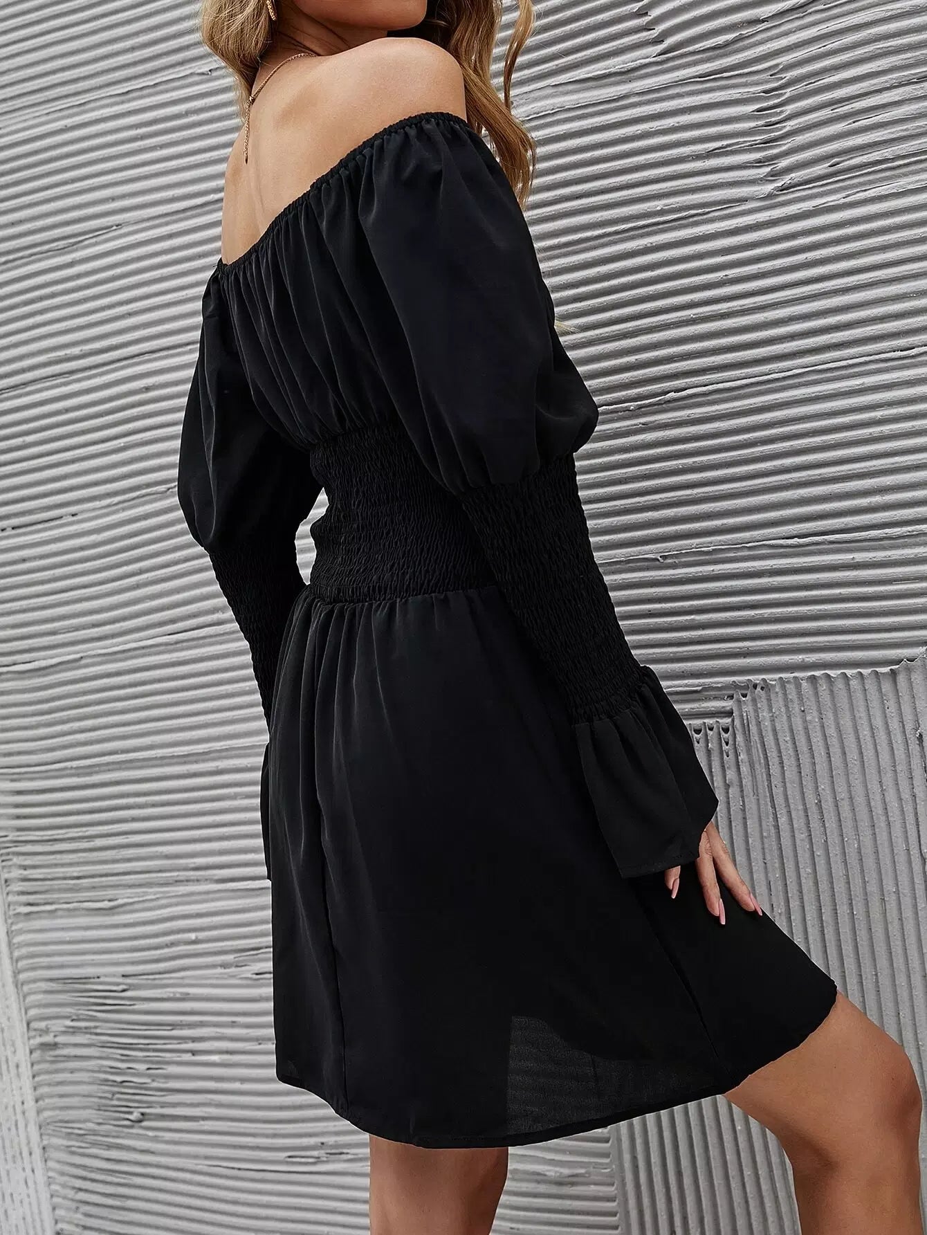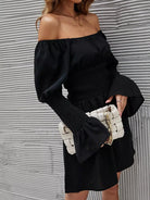 فستان بأكمام مكشوف الأكتاف بأكمام كشكش