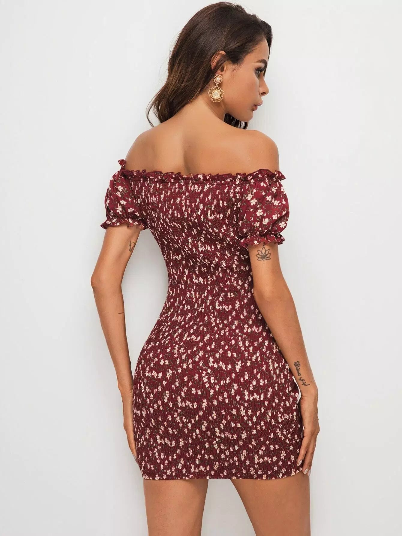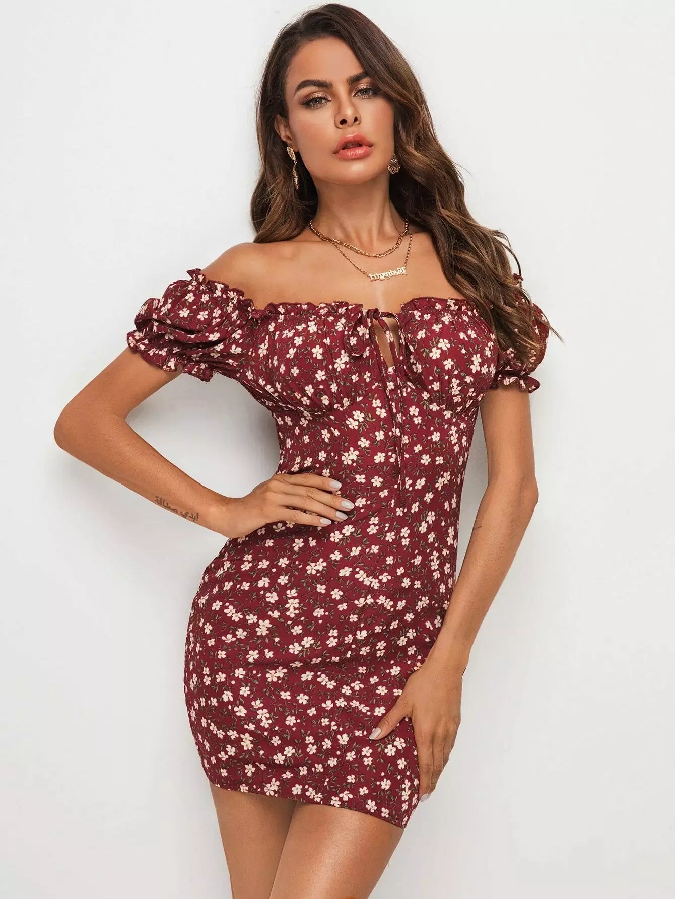 فستان مكشوف الأكتاف بربطة عنق بربطة عنق بشريط على الظهر