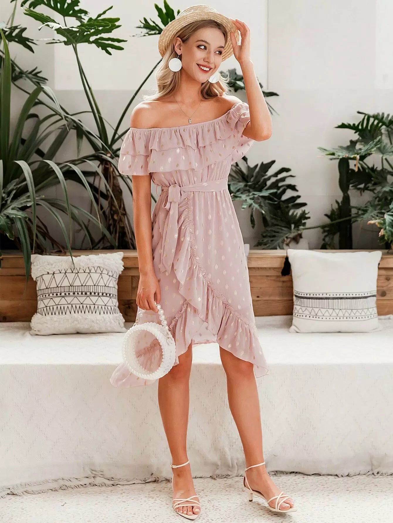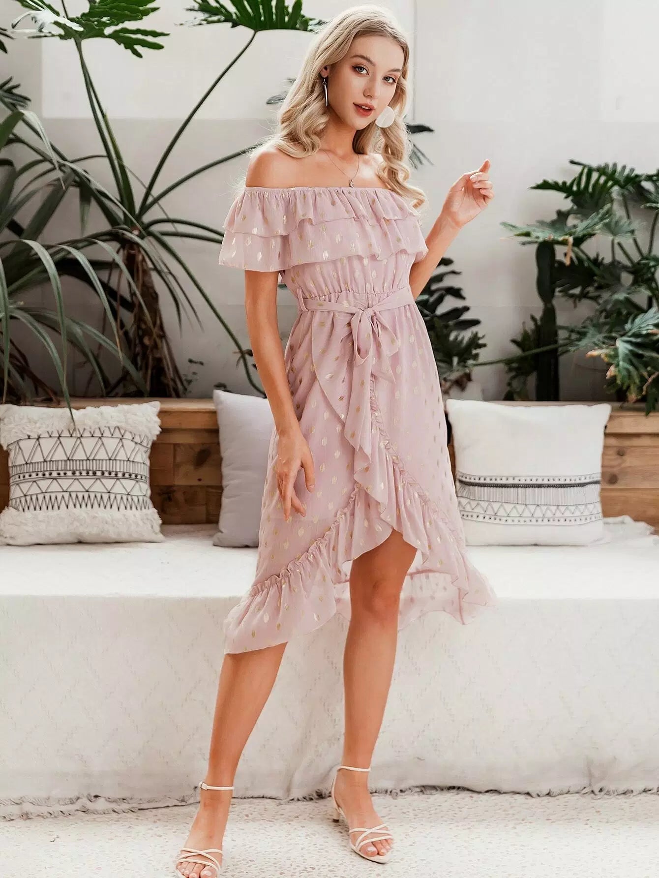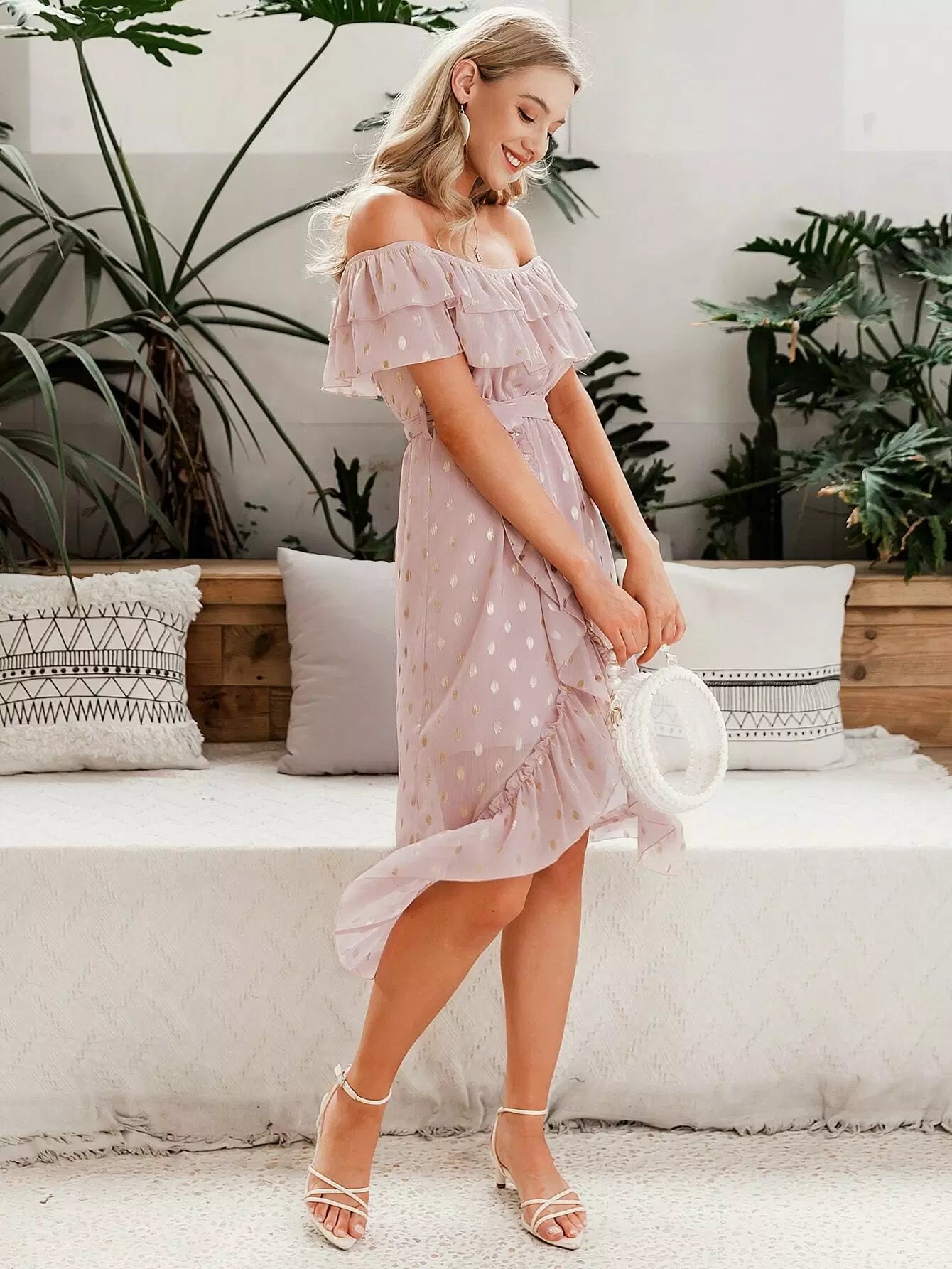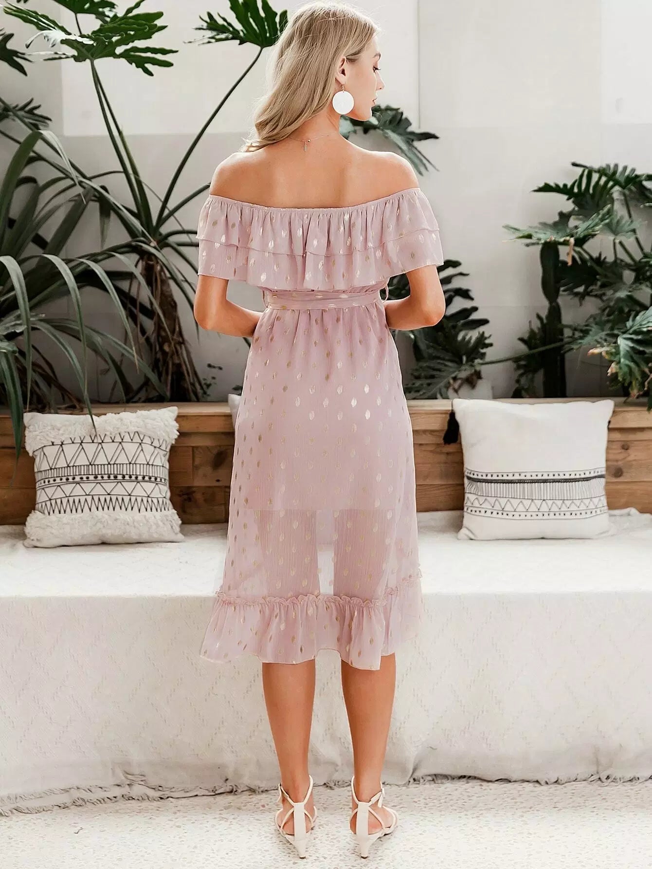 فستان بطبعة ذهبية ملفوفة بدون أكتاف بدون حزام