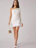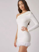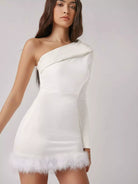 فستان بكتف واحد بحافة ضبابية