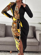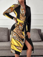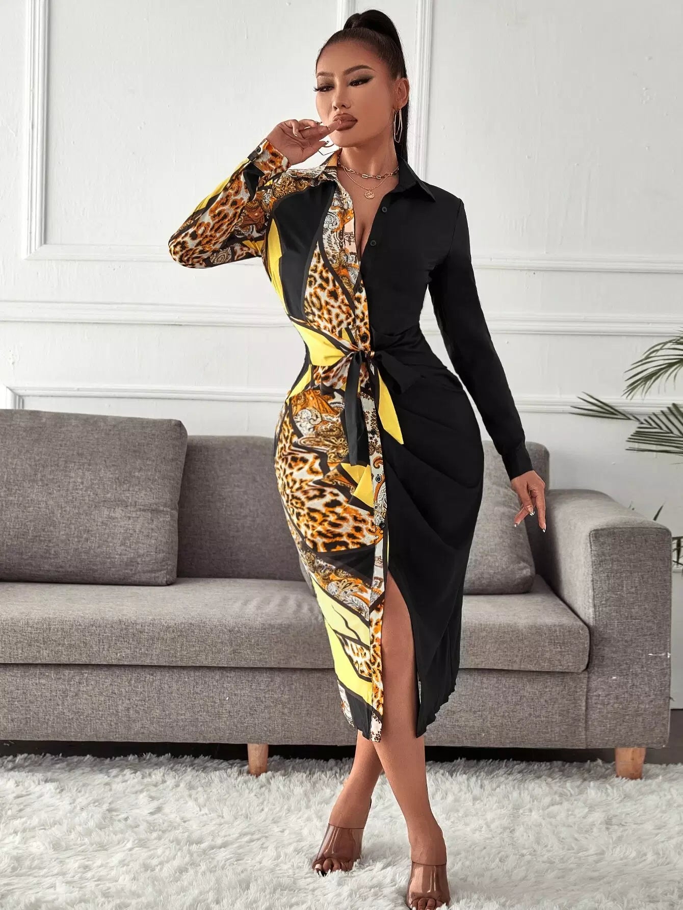 فستان قميص بطبعة بيزلي بربطة عنق أمامية