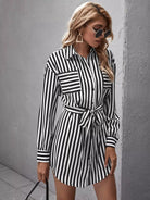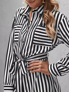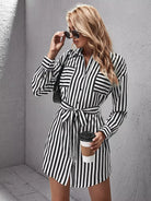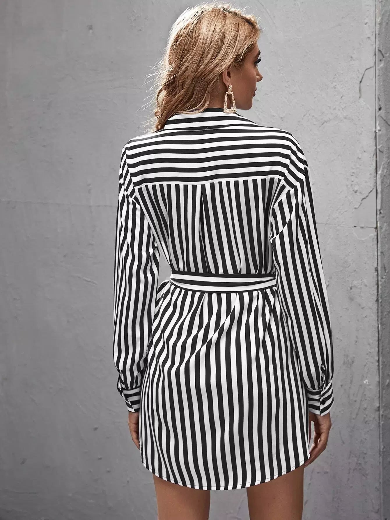 فستان قميص مخطط بجيب رقعة بدون حزام