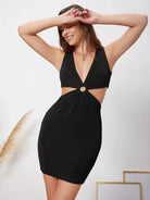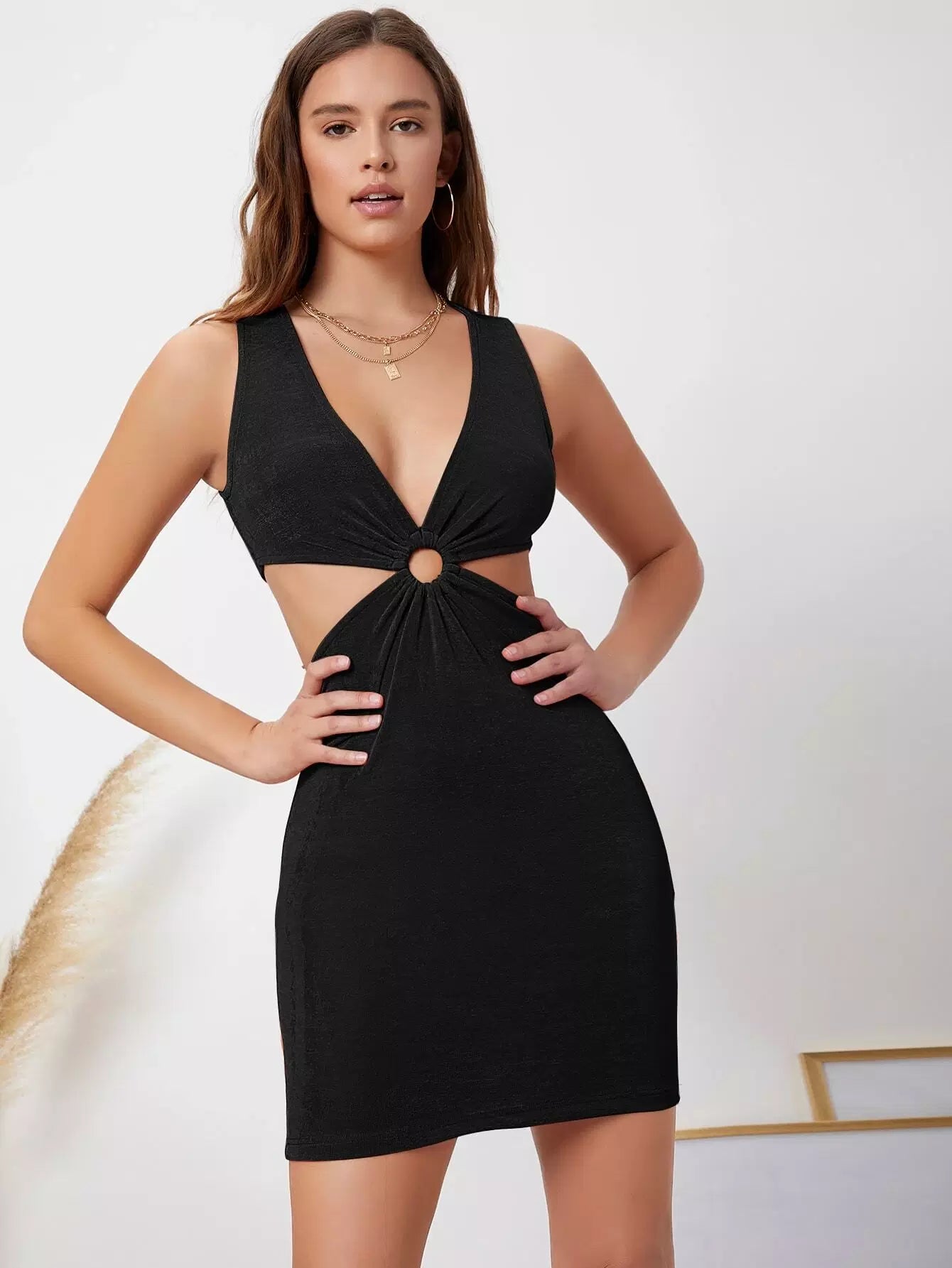 فستان بوديكون سادة بفتحة عنق واسعة عند الخصر مكشوف الصدر