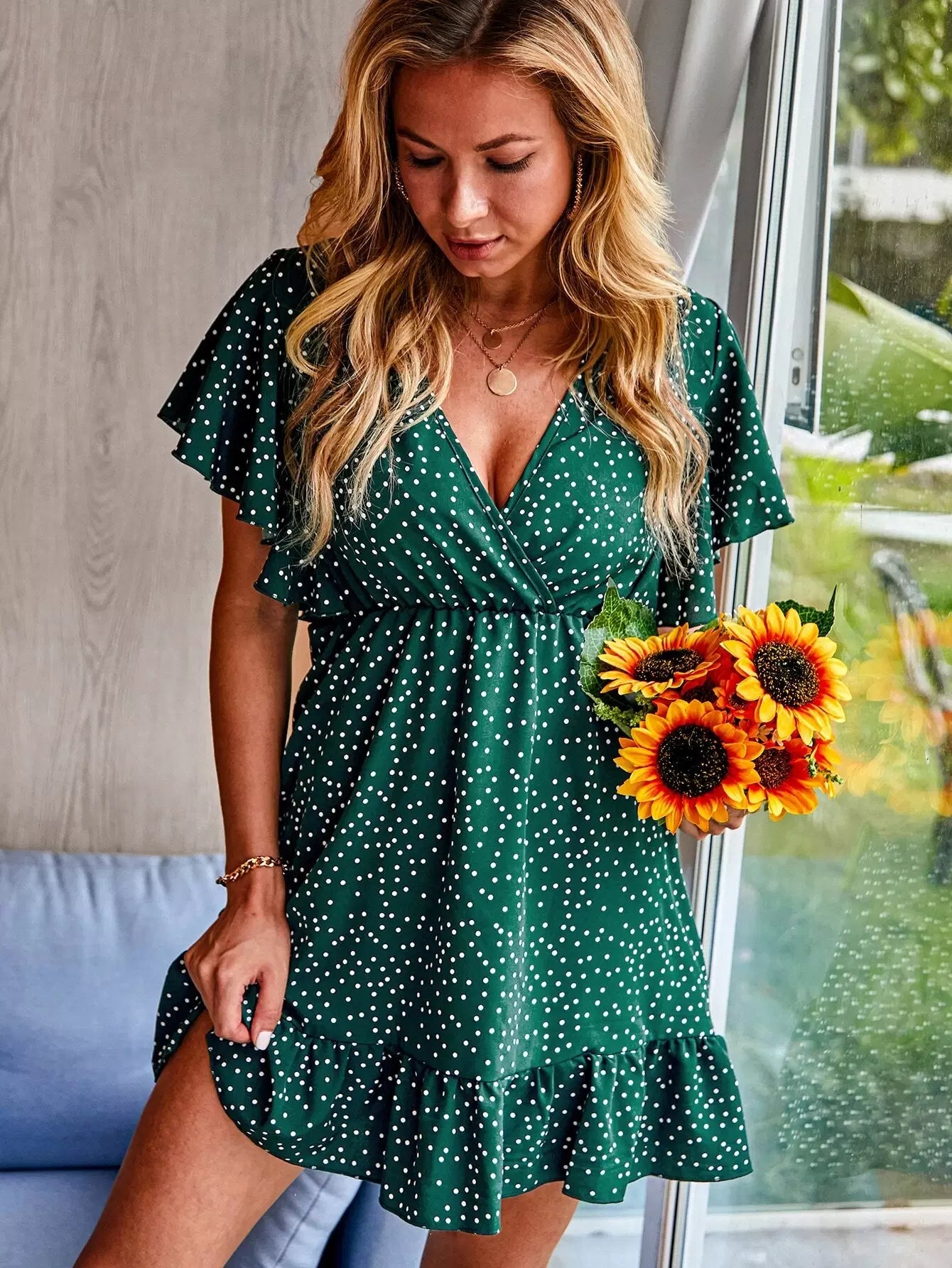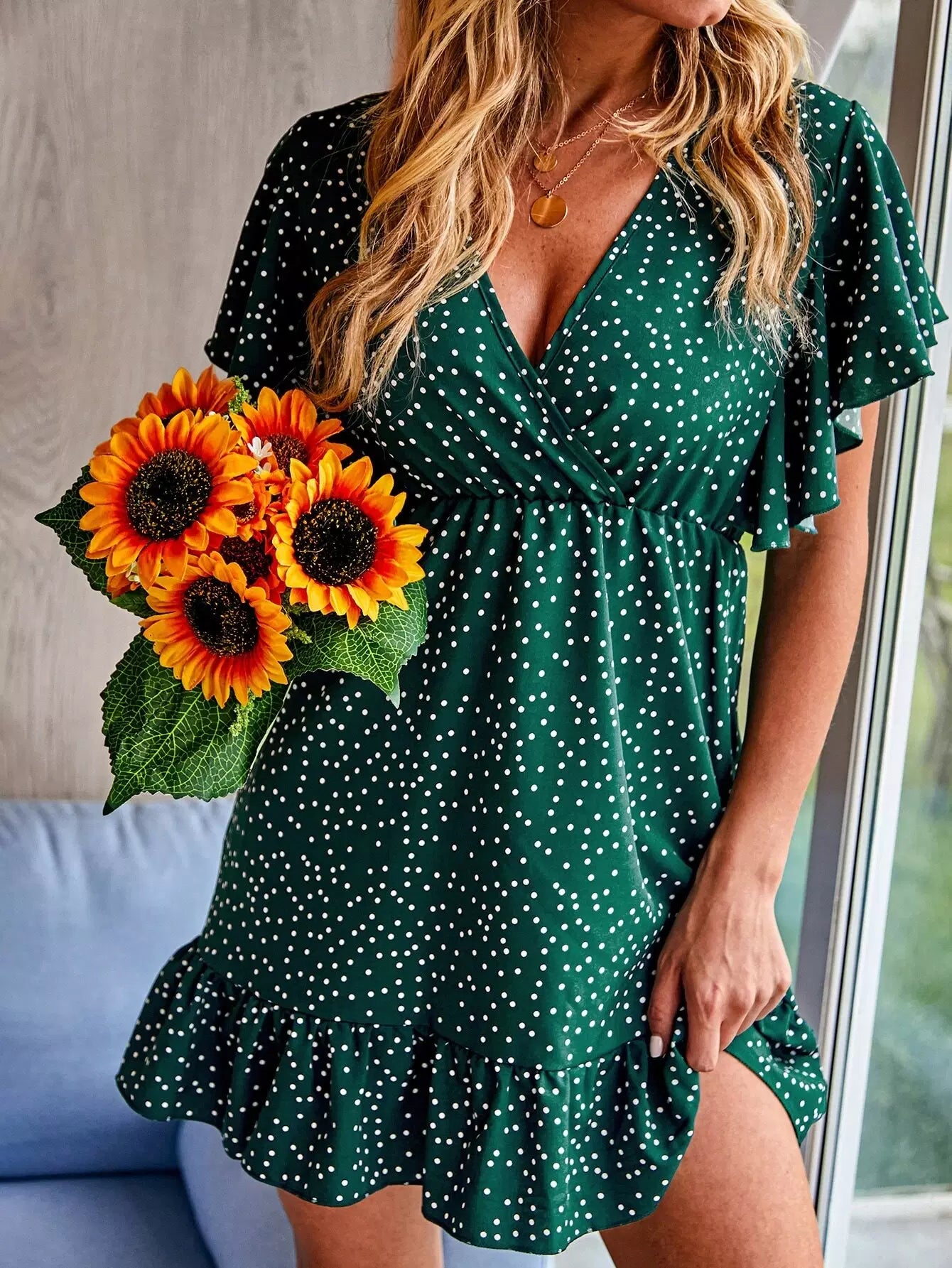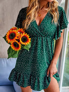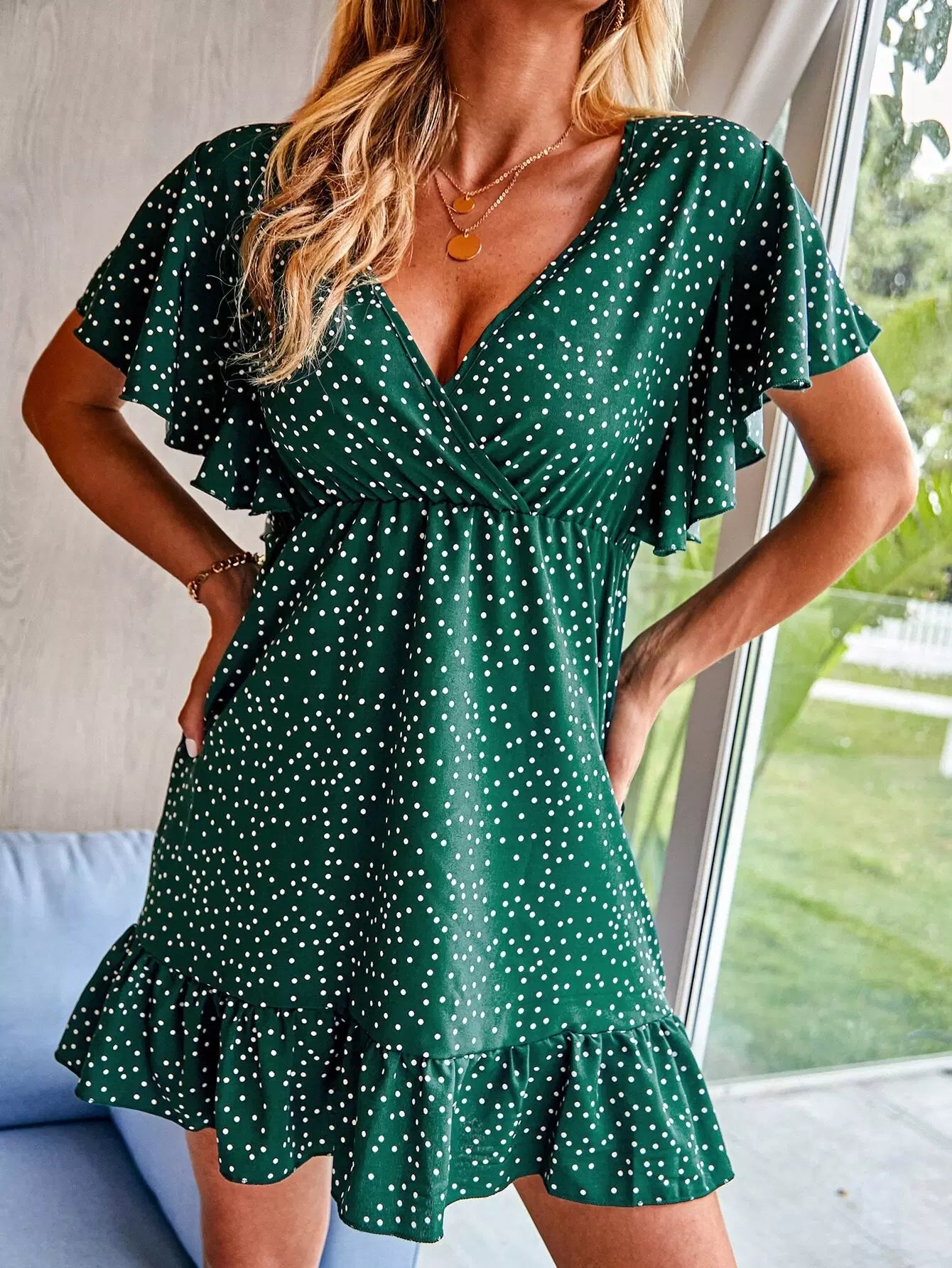 فستان مكشكش بياقة مكشكشة برقبة مكشكشة بياقة مكشكشة منقطة