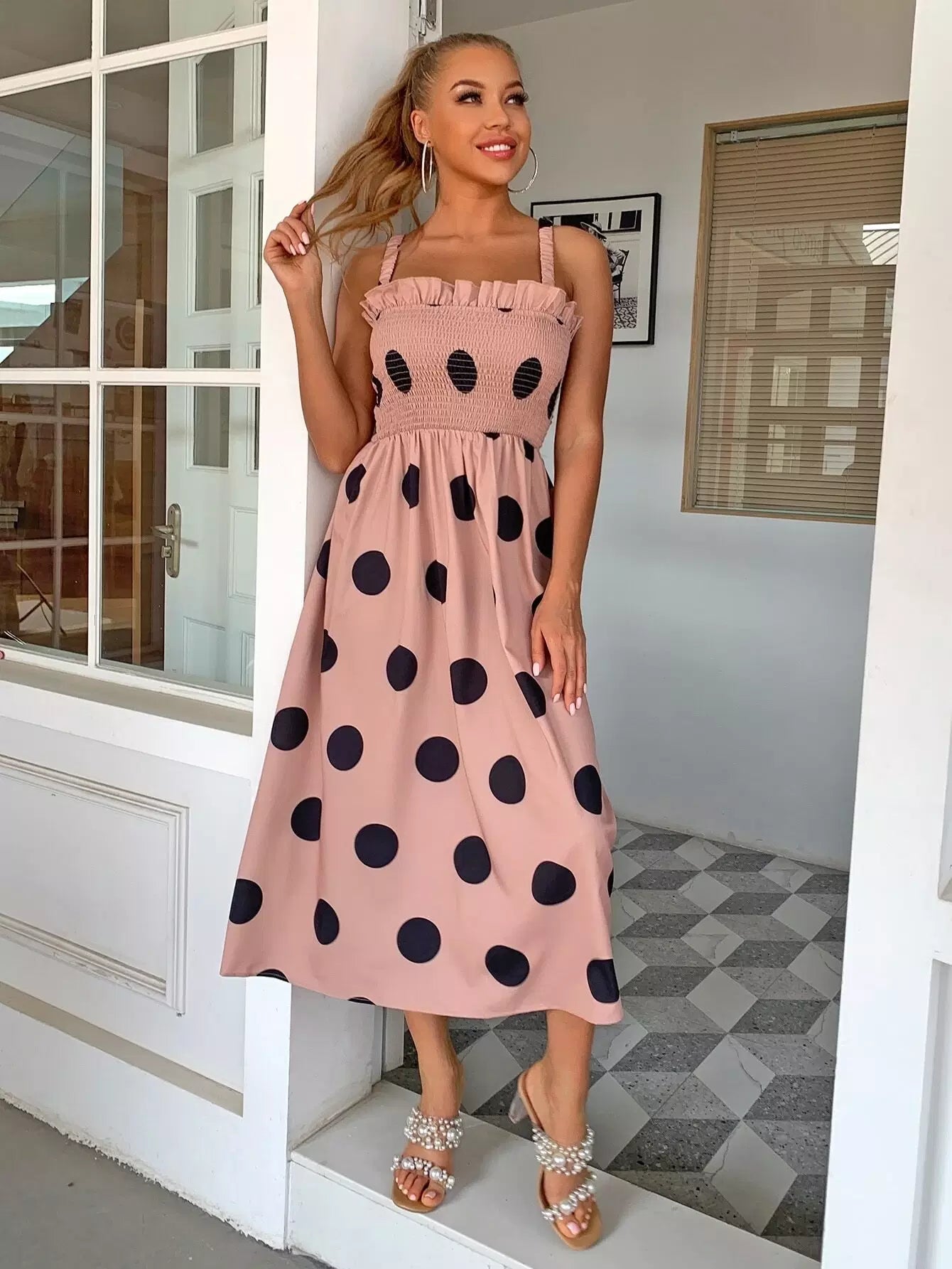 فستان كامي منقّط مطبوع بنقشة البولكا دوت بطبعة شيرد