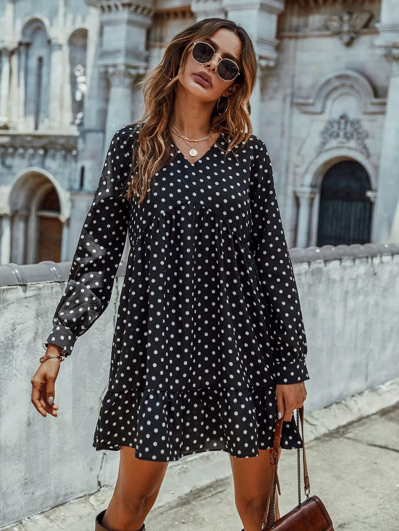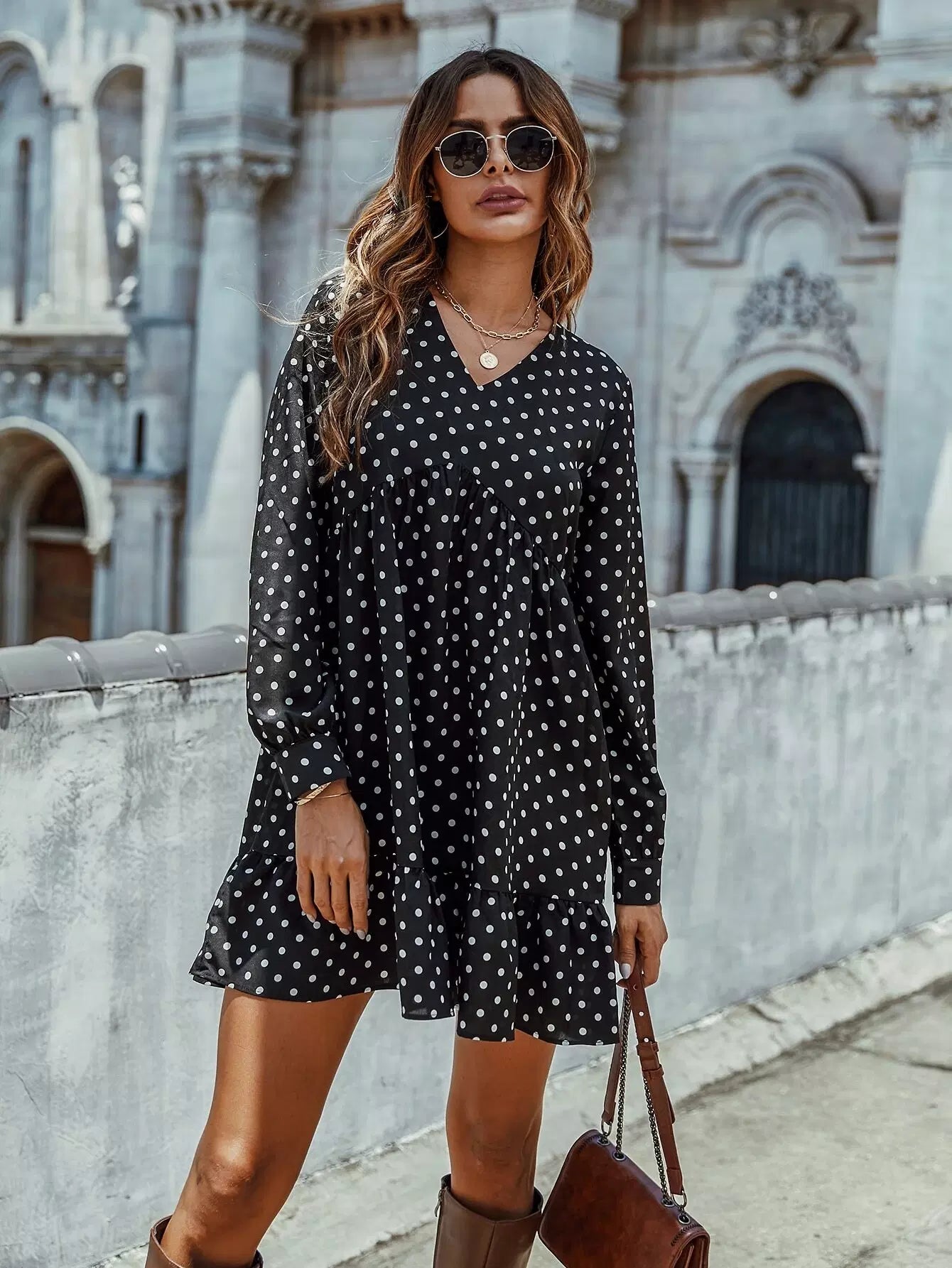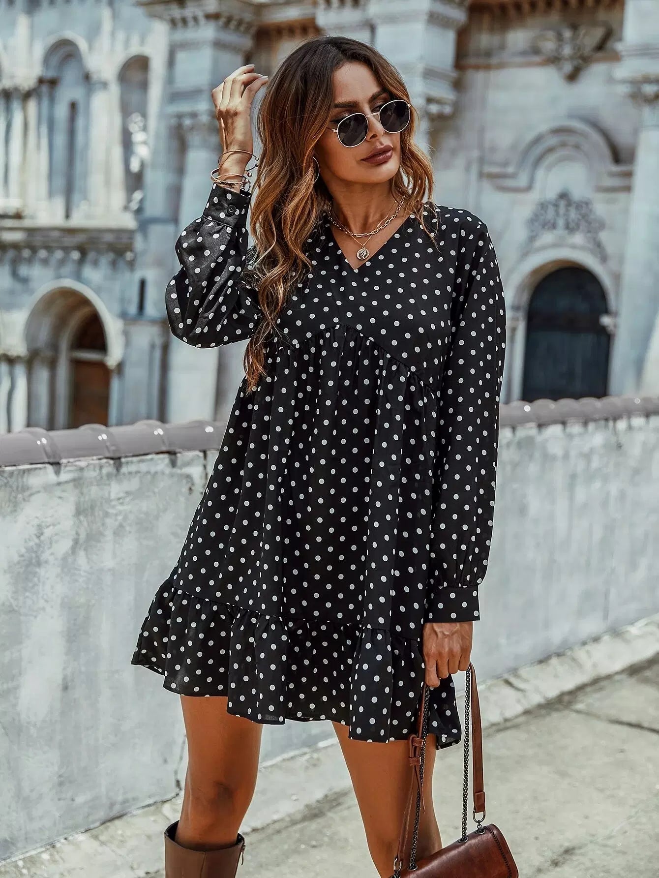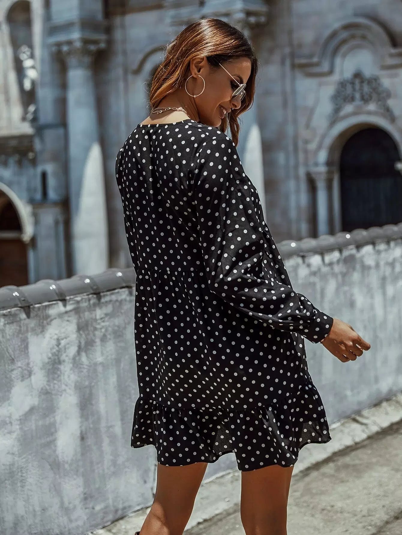 فستان منقّط من الكشكش بحافة مكشكشة سموك