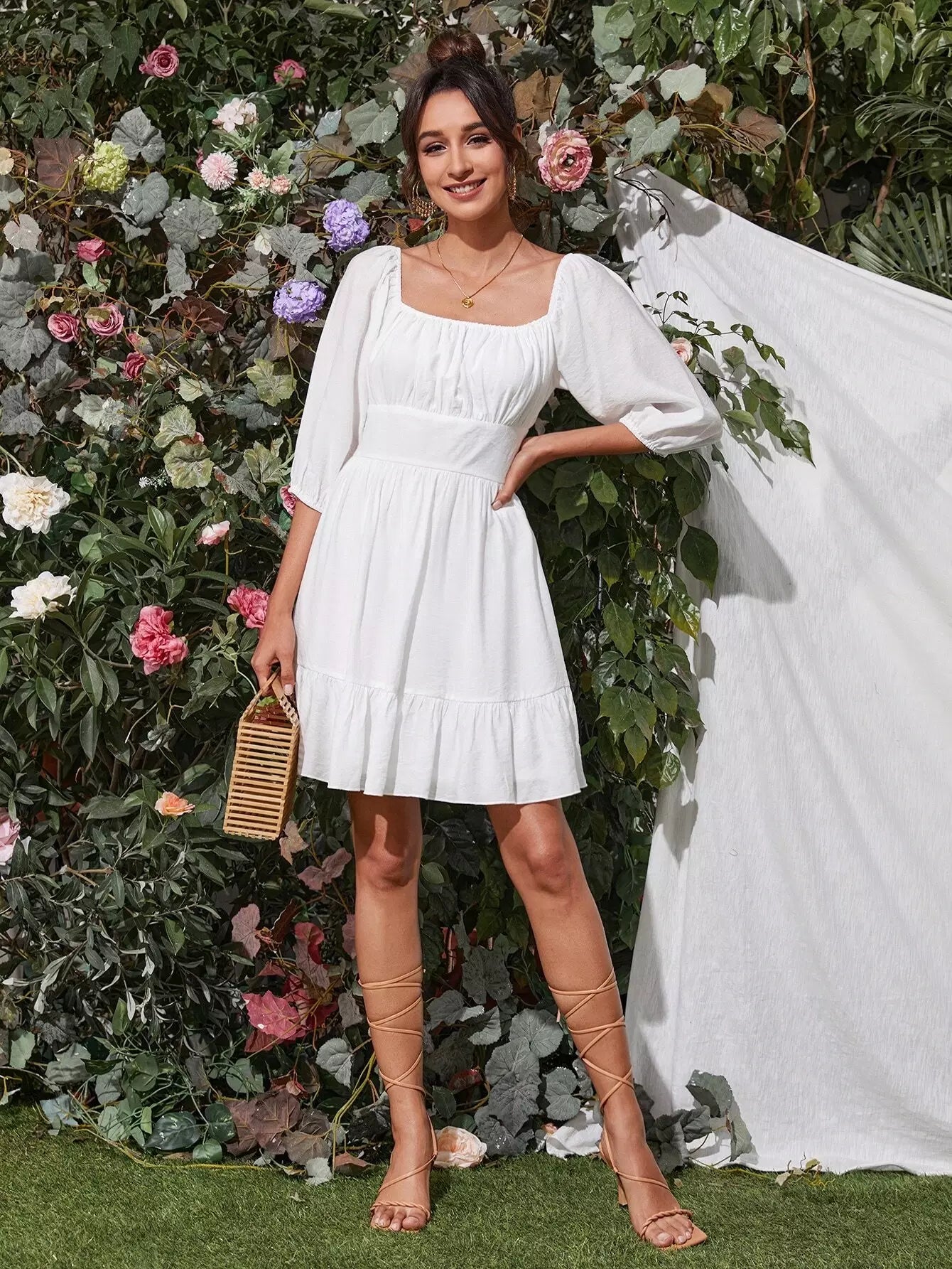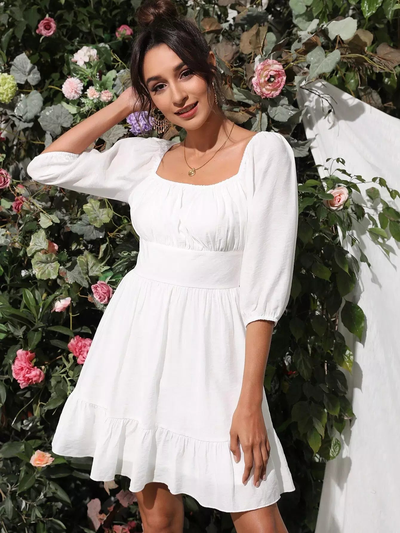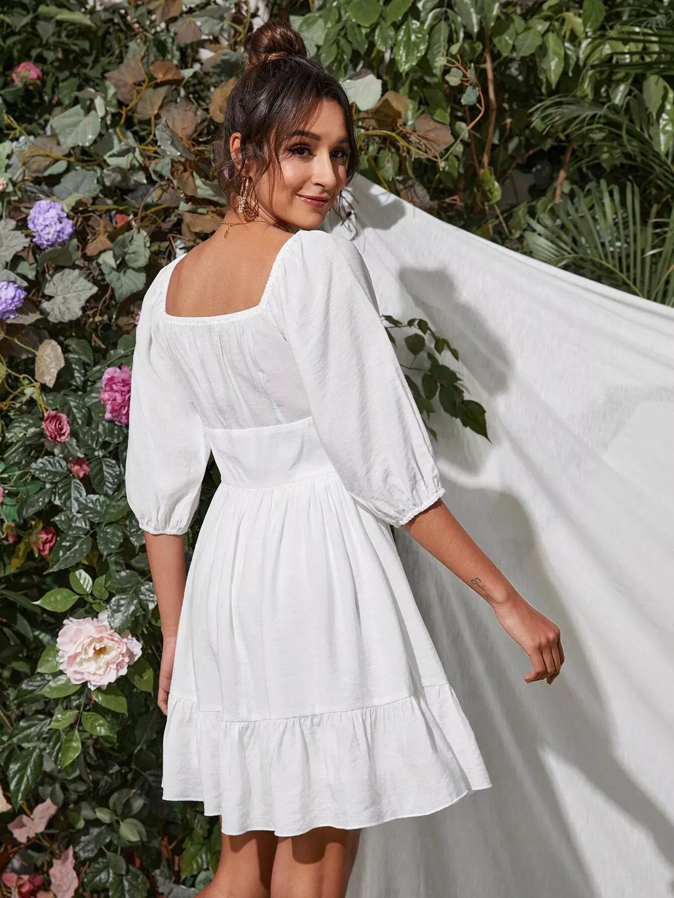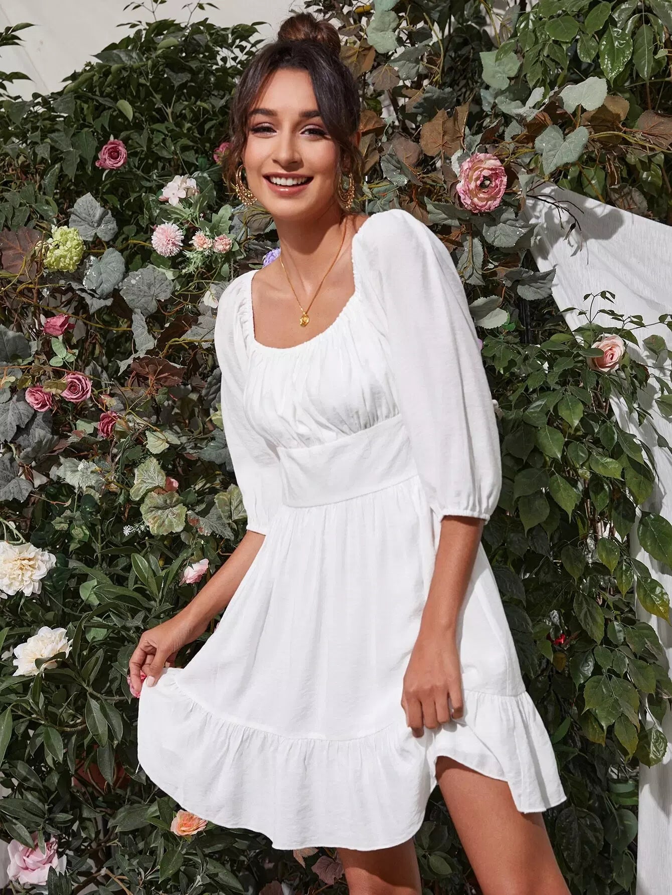 الملابس - فستان بحاشية مكشكشة وأكمام منتفخة