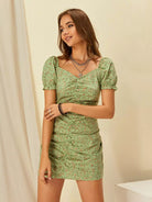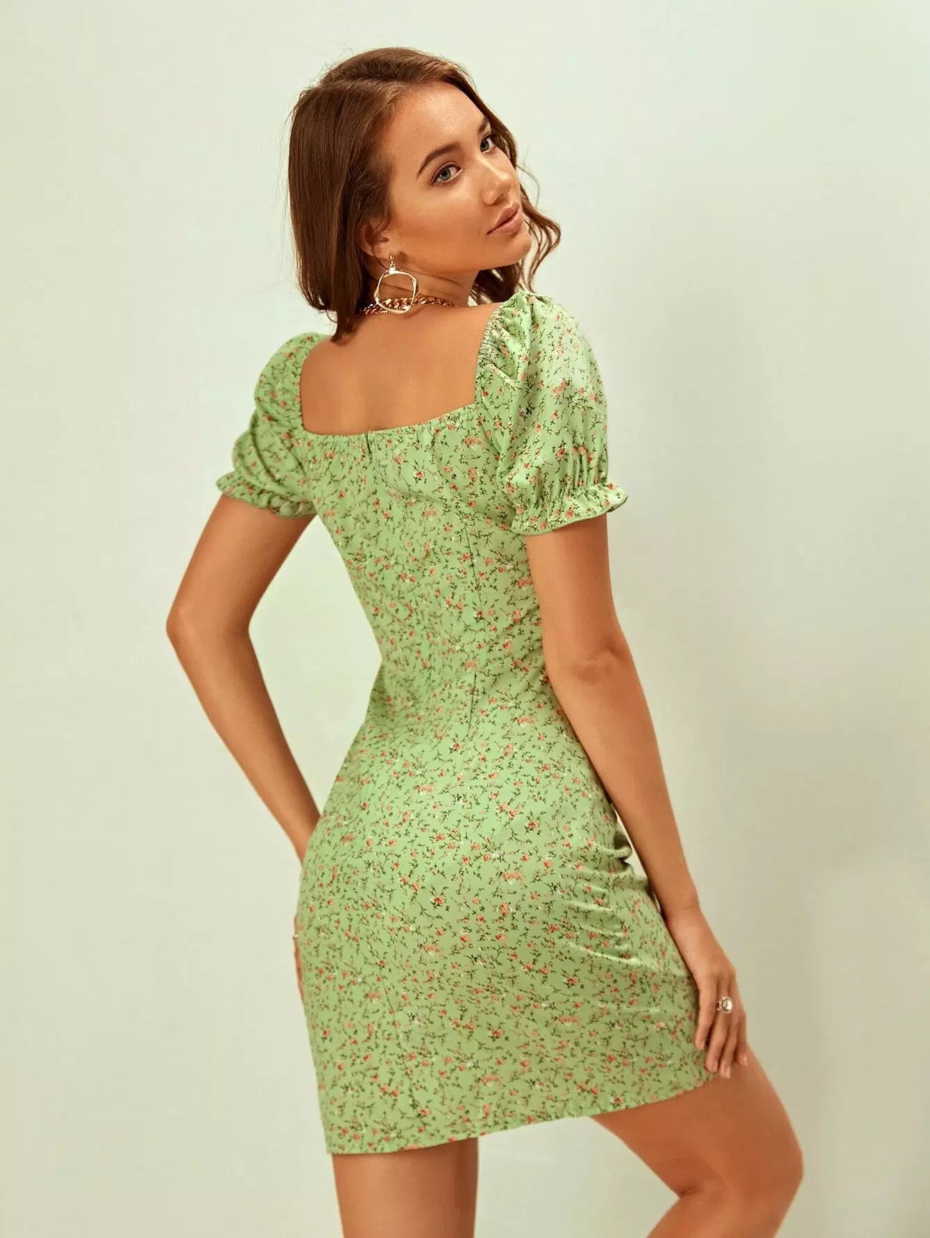 فستان بأكمام منفوشة مكشكشة بأزهار منفوشة