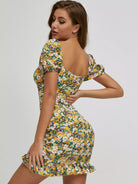 فستان كشكش بأكمام منفوشة بحواف مكشكشة ذات أكمام منفوشة