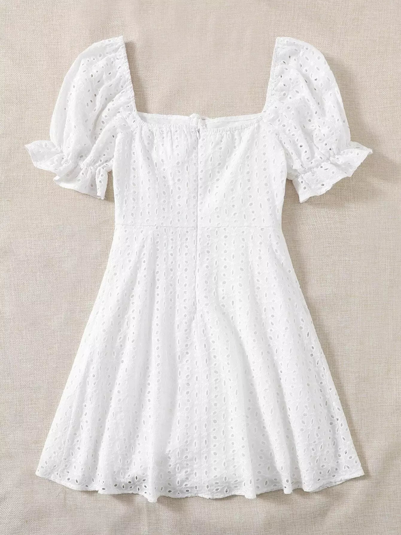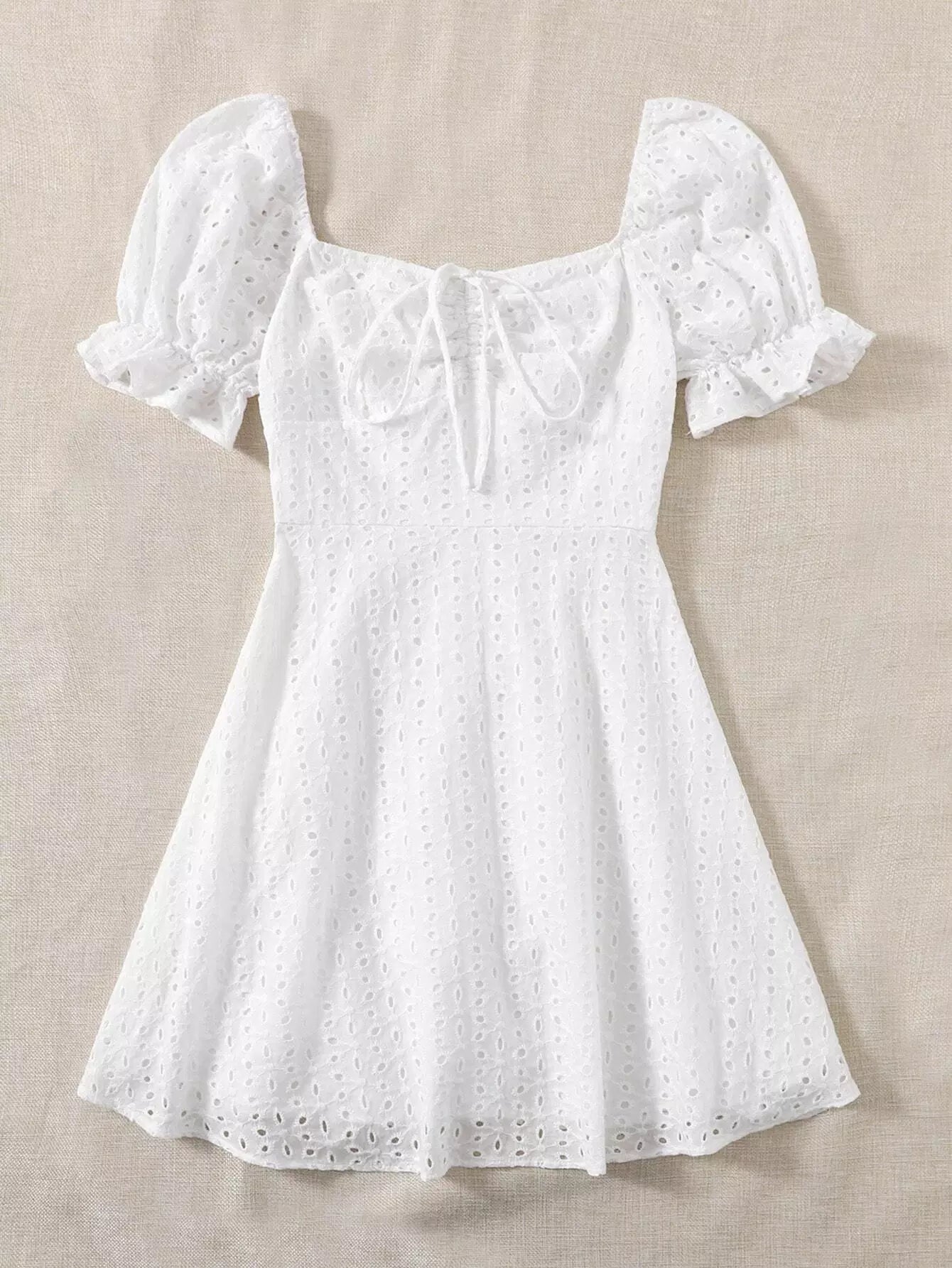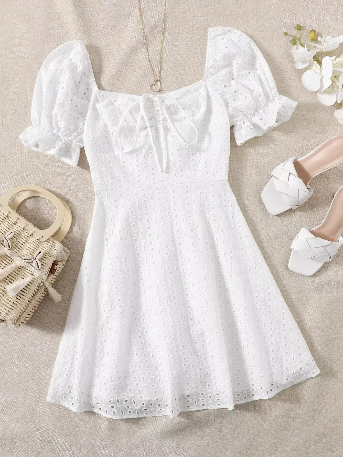 فستان شيفي بأكمام منفوشة بربطة عنق أمامية منفوشة