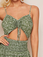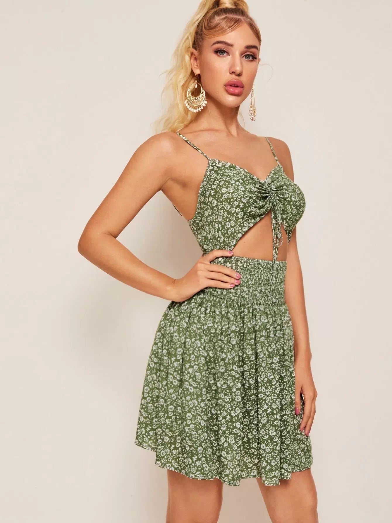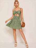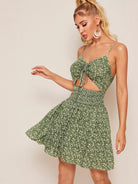 فستان قصير مكشكش برباط أمامي برباط مشدود من الأمام بخصر ديتسي مزين بالزهور