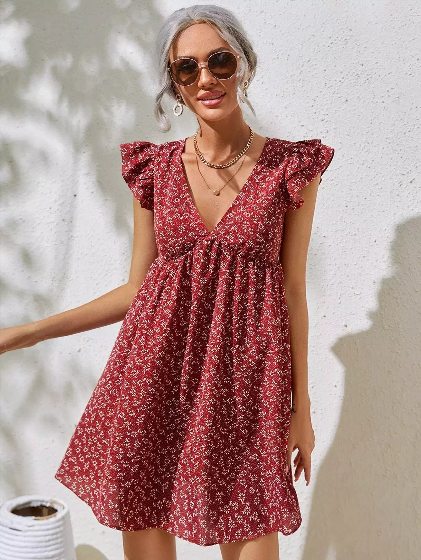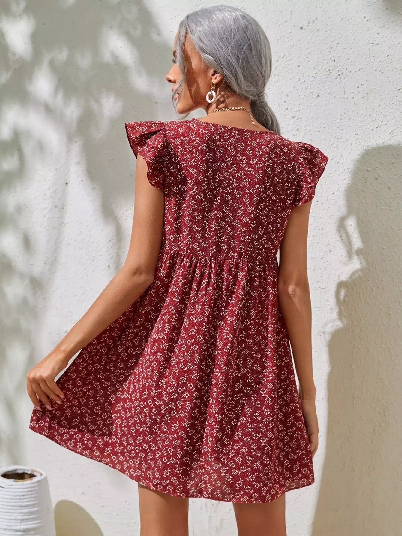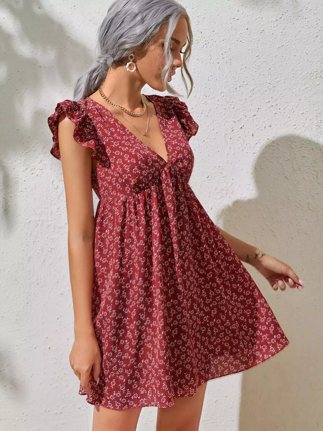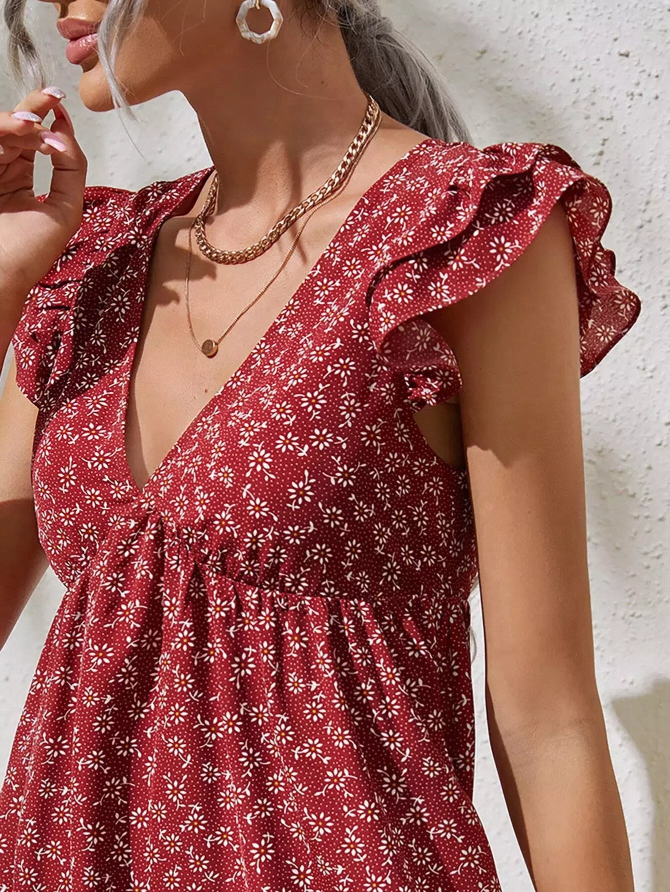 فستان كشكش بفتحة ذراع مكشكشة بفتحة زهرية