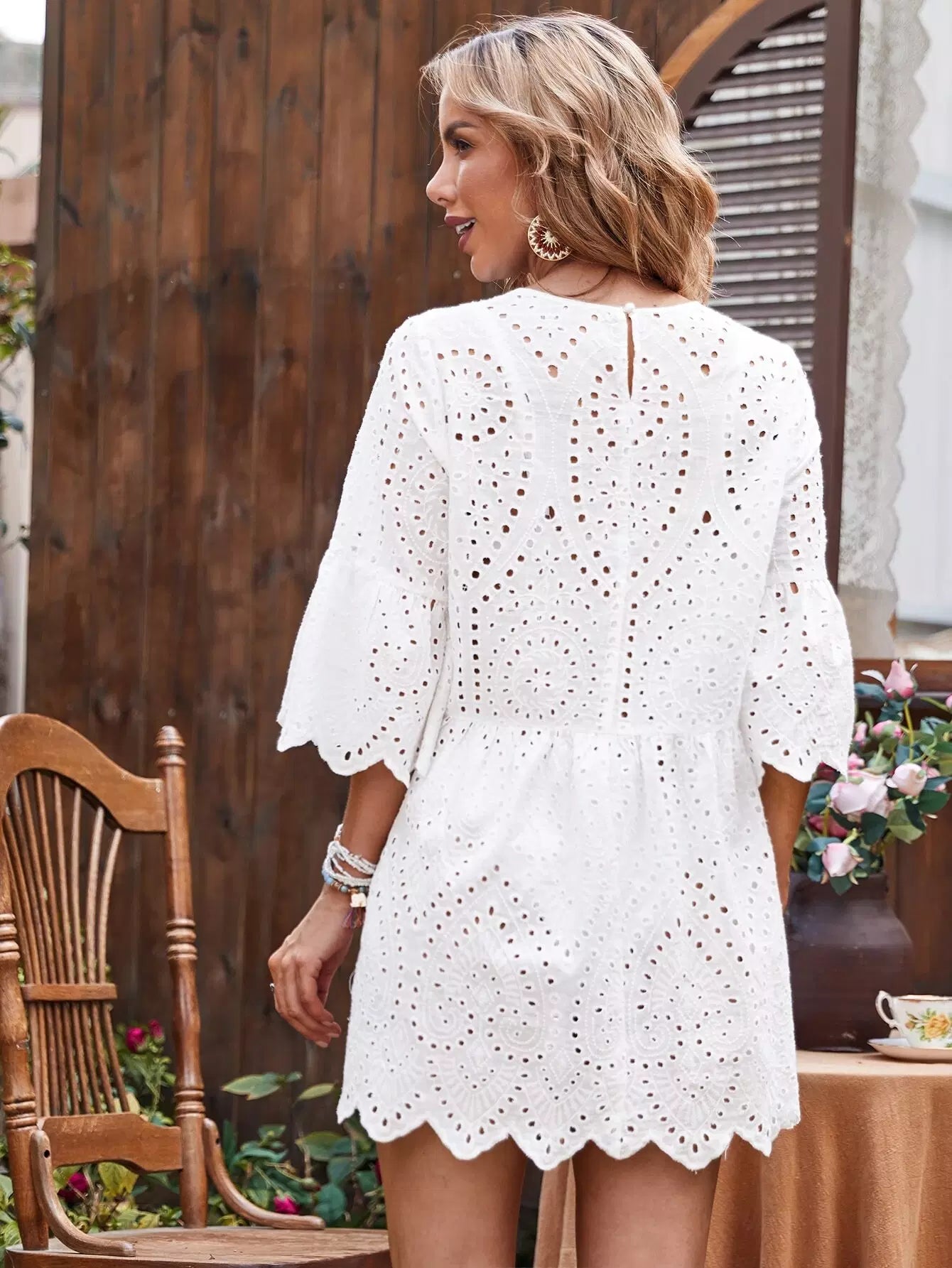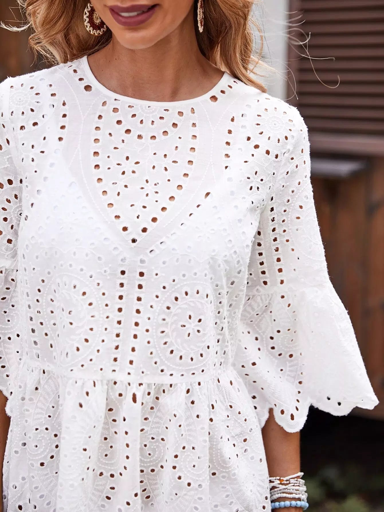 فستان شيفي بأكمام مكشكشة وحواف صدفية