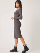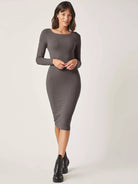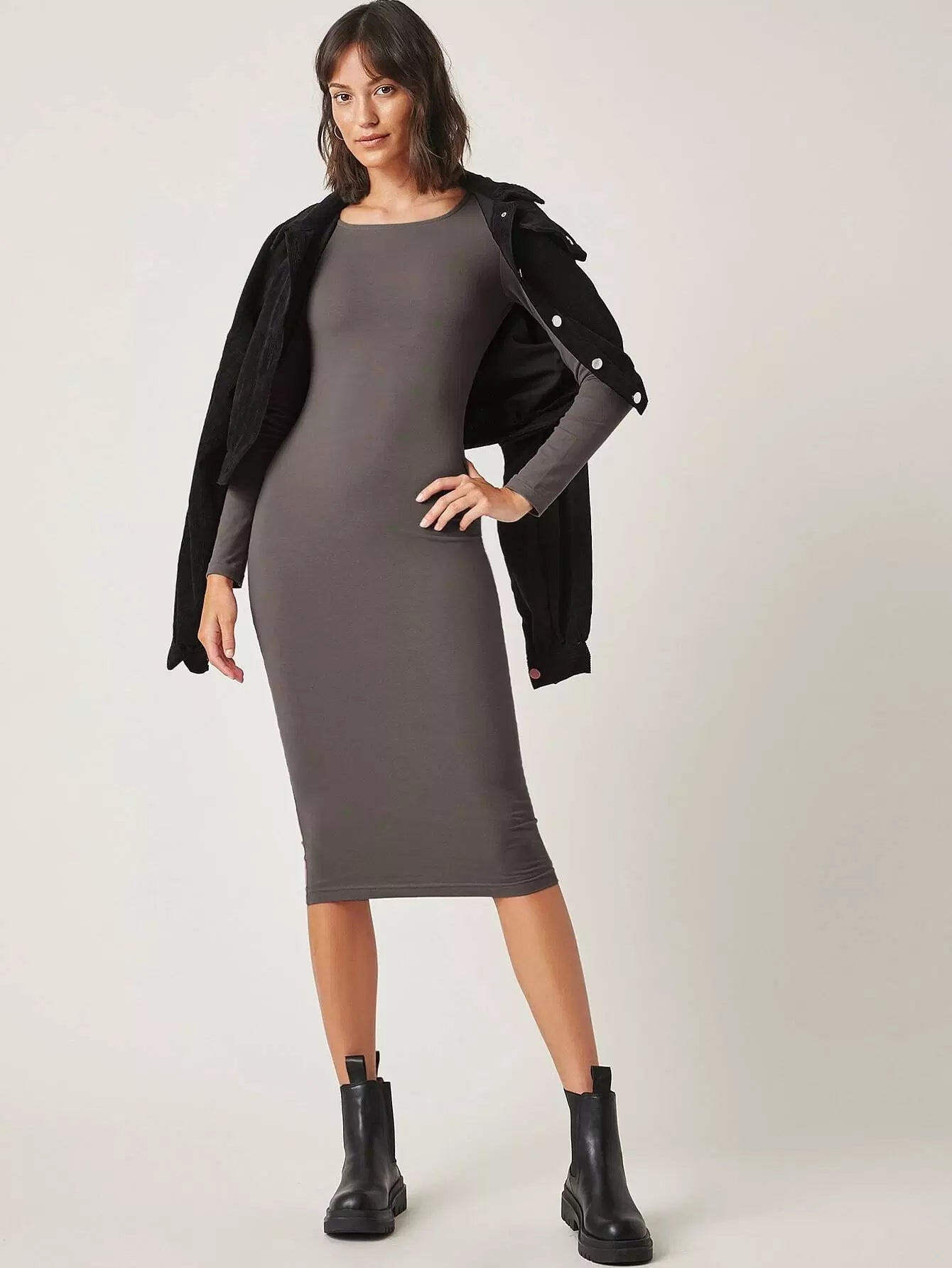 فستان بوديكون سادة بأكمام طويلة برقبة دائرية سادة
