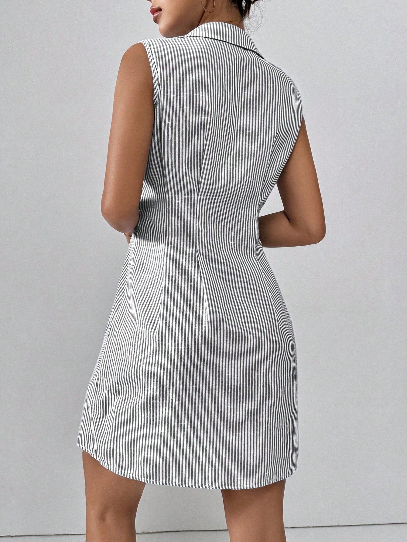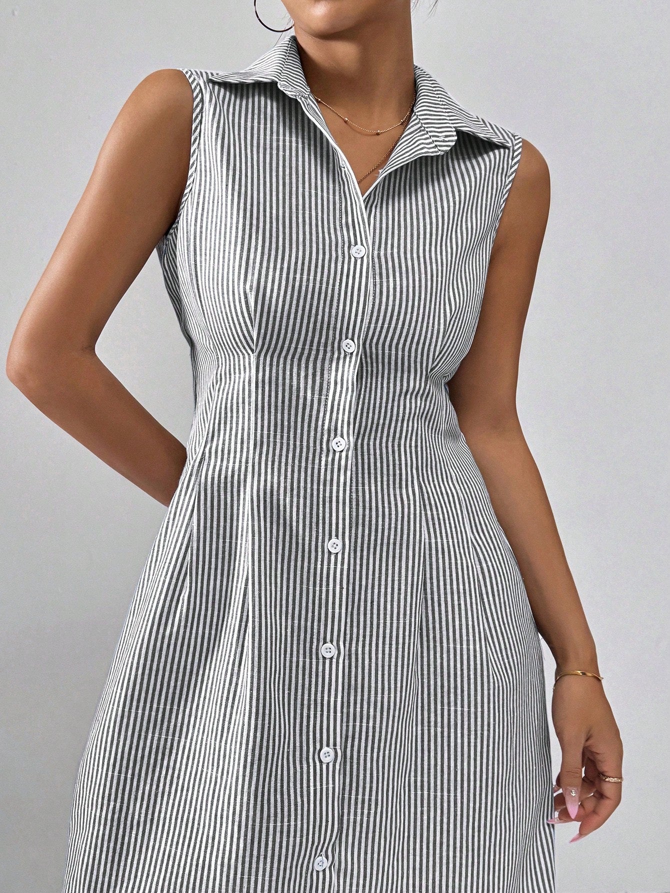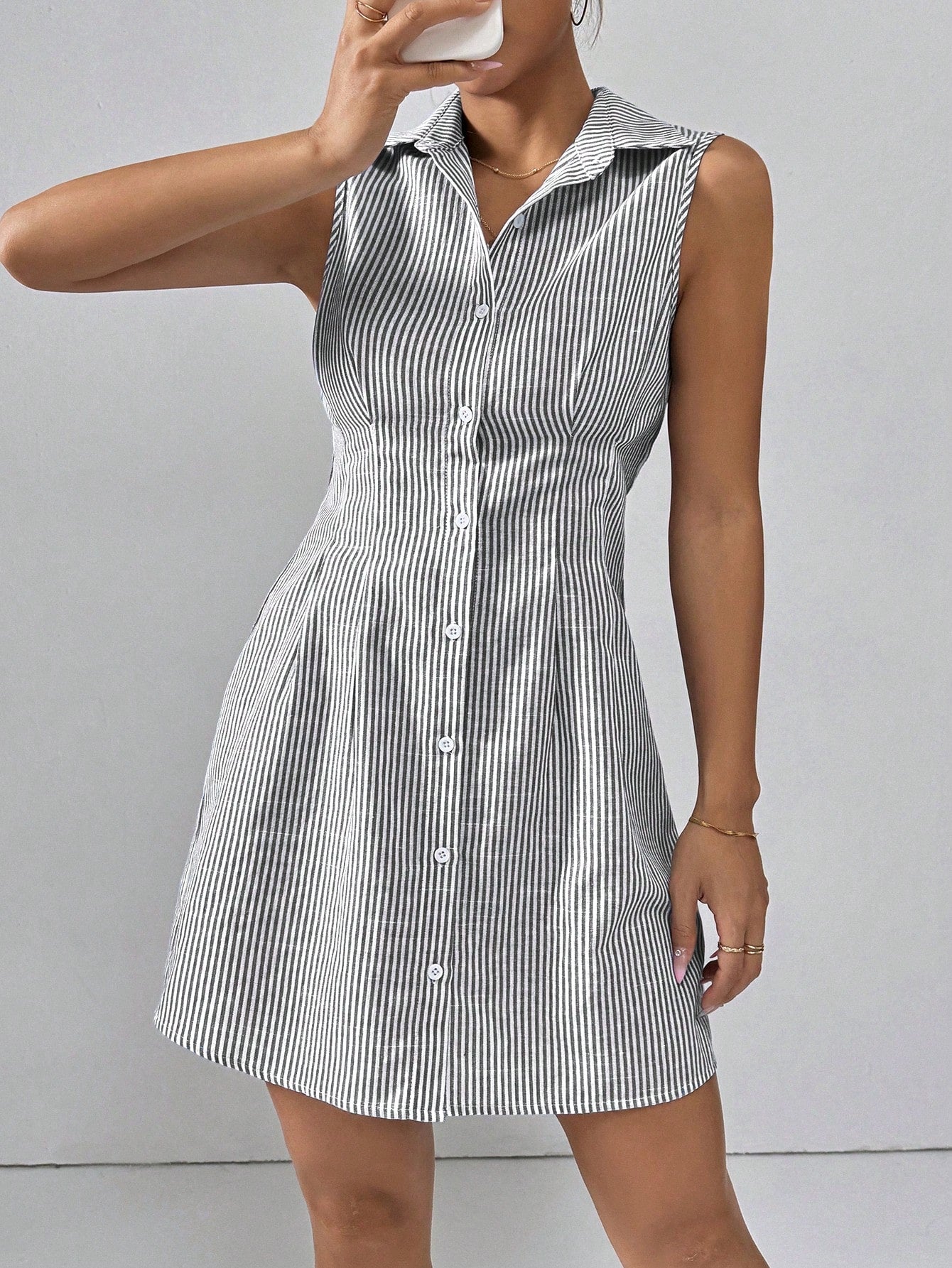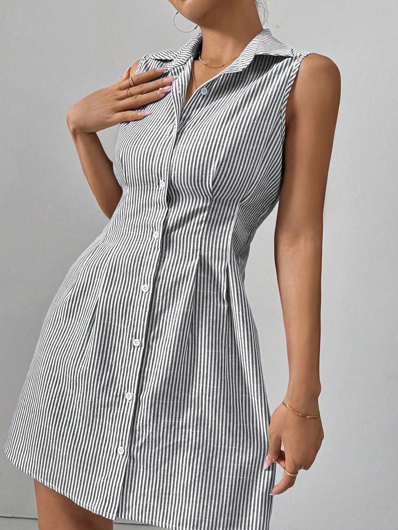 فستان قميص نسائي صيفي مخطط بدون أكمام وياقة مطوية من SHEIN Essnce