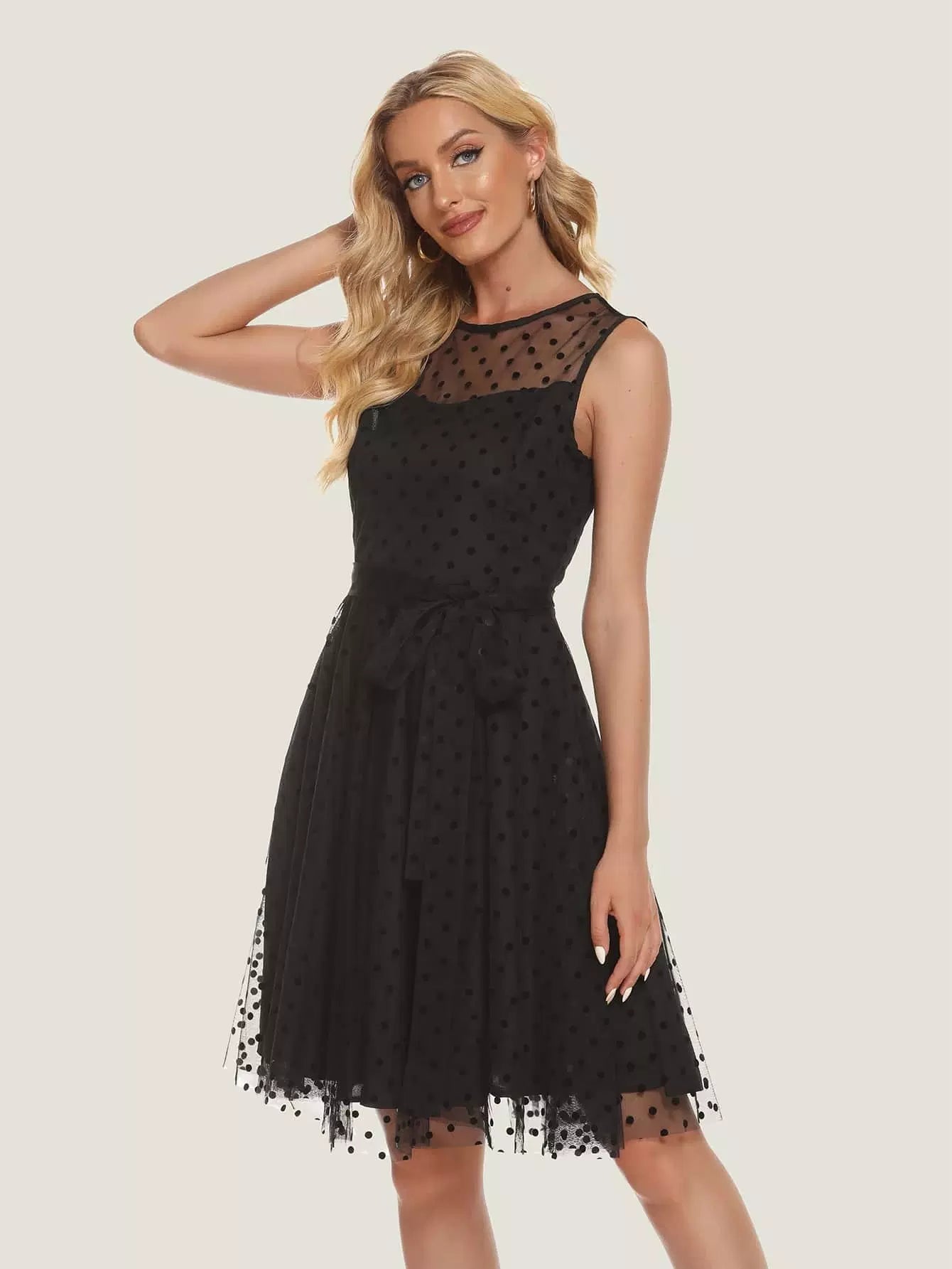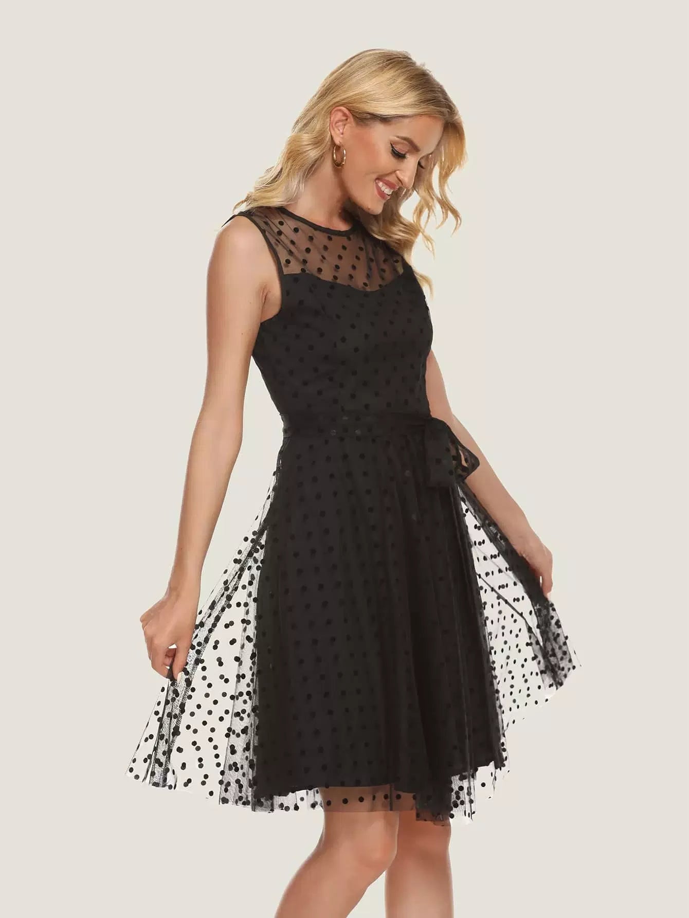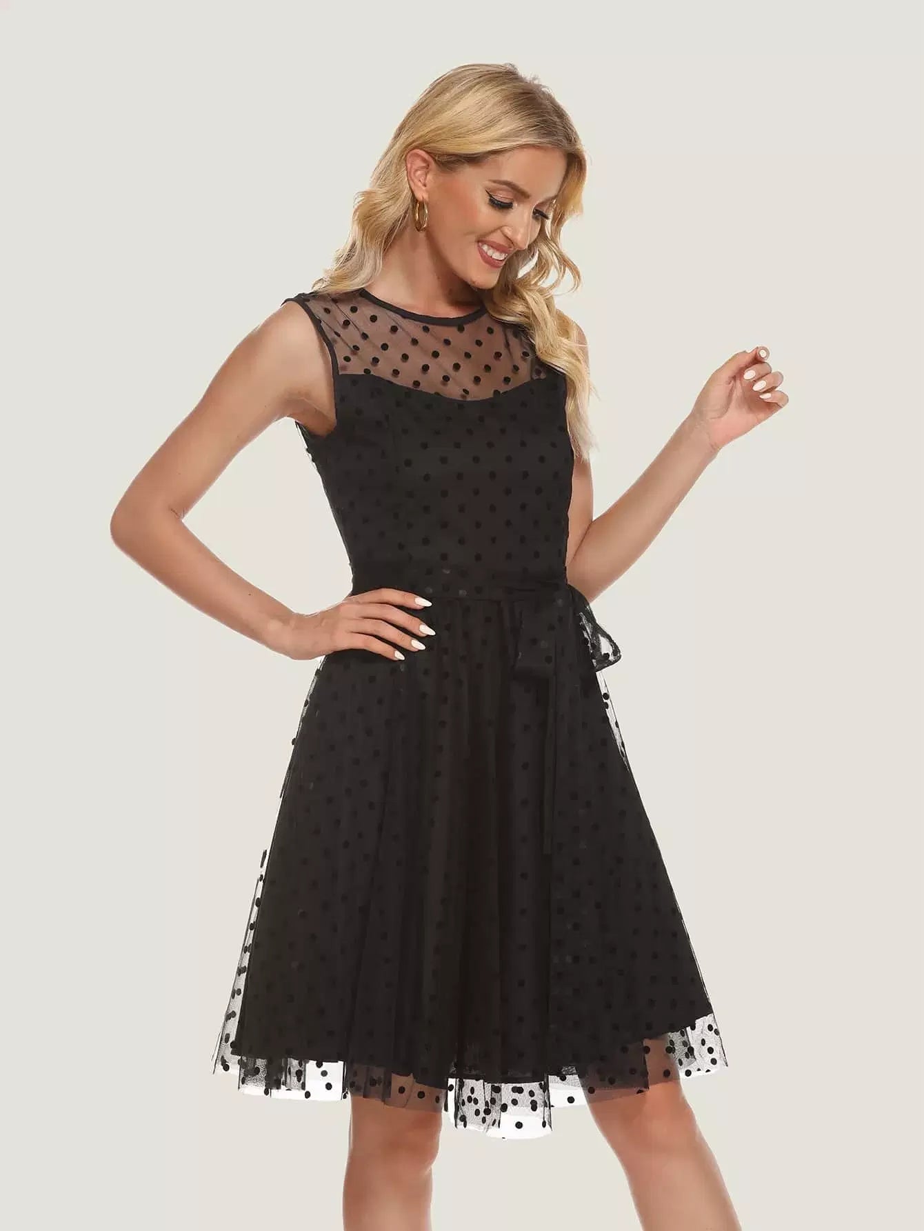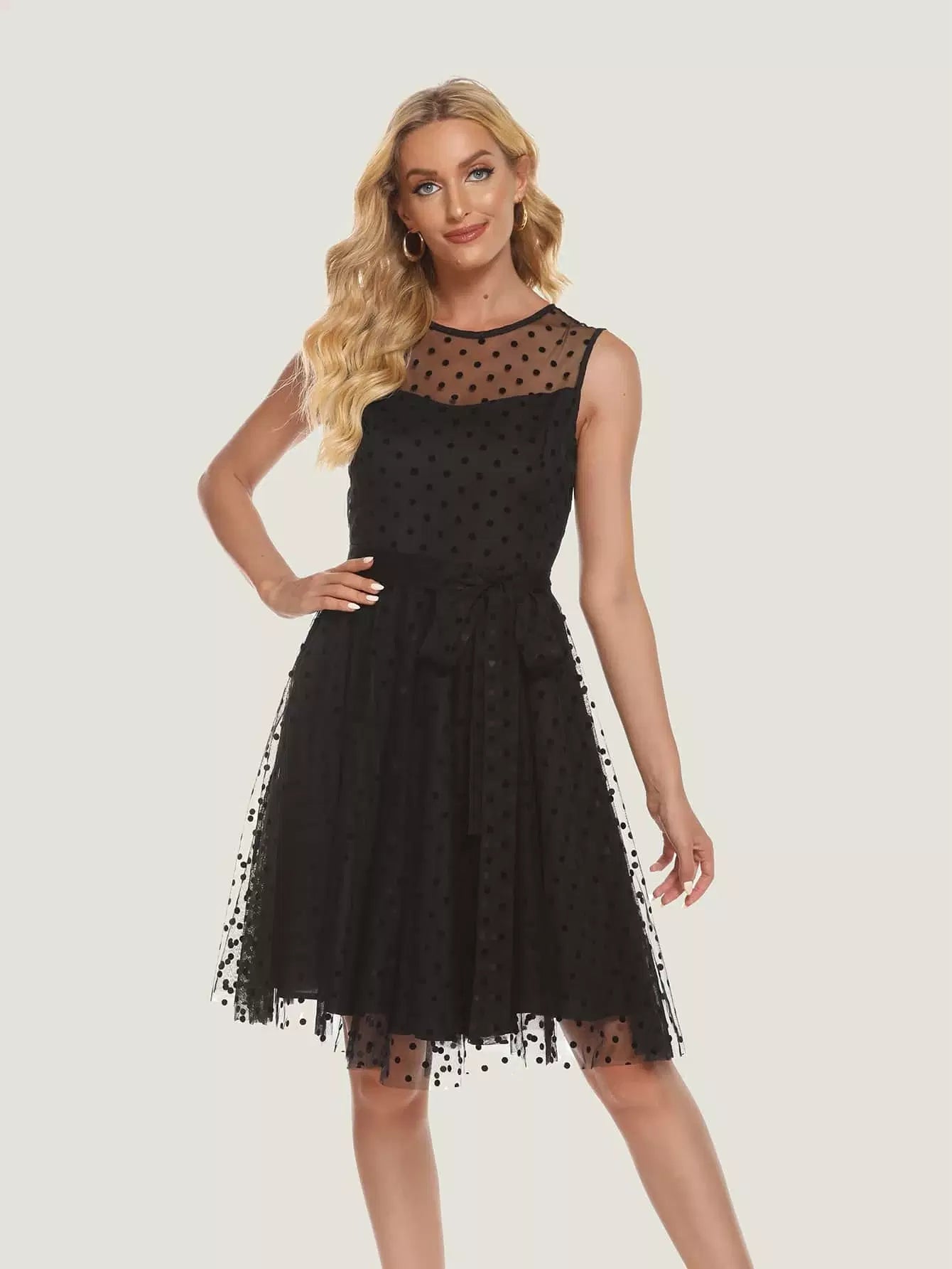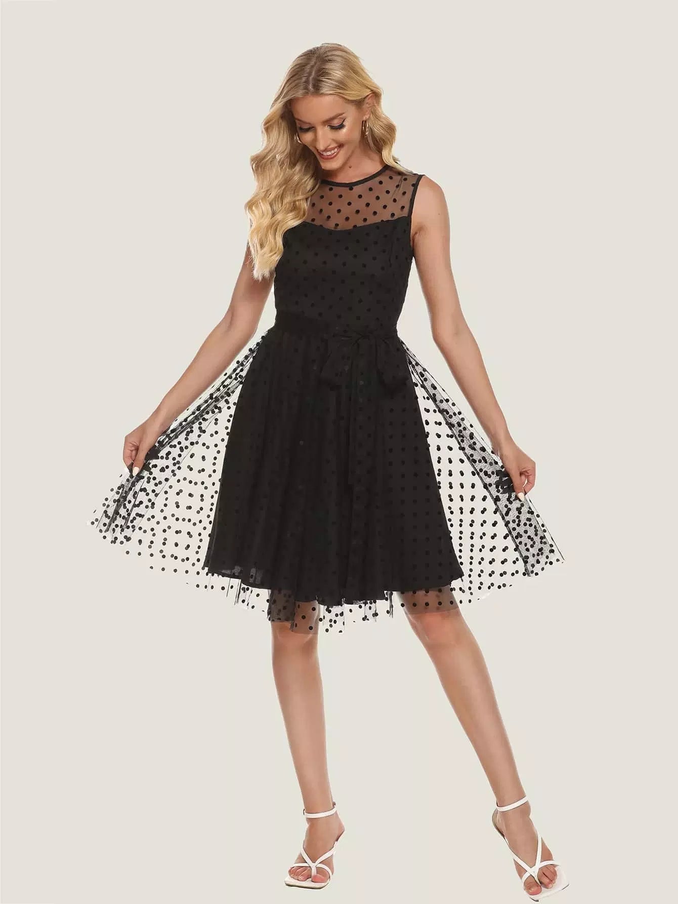 فستان دوبي شبكي بدون أكمام بدون حزام