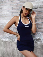 فستان بوديكون بحافة غير متناظرة برقبة مرقعة برقبة رقبة غير متناظرة