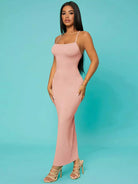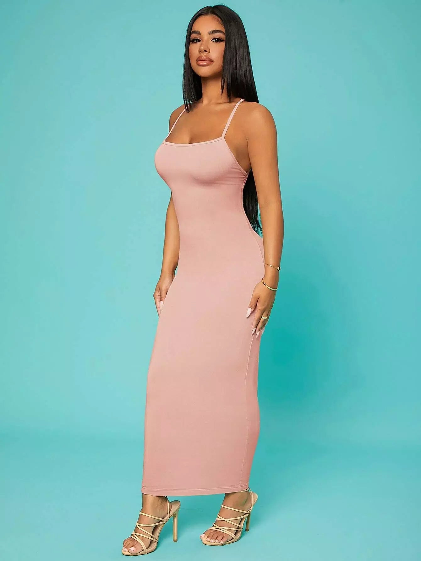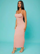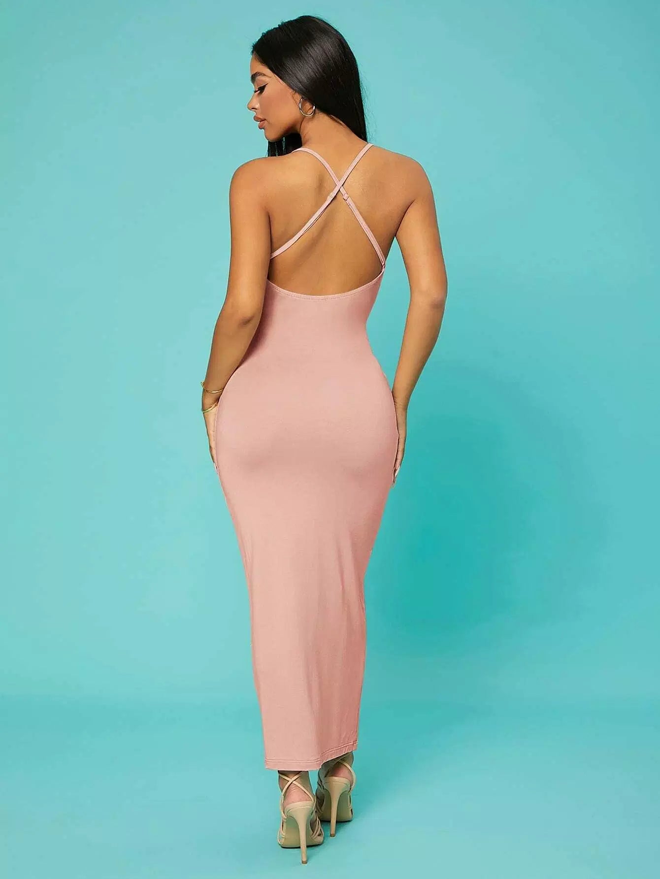 فستان بوديكون سادة متقاطع من الخلف مكشوف الظهر سادة