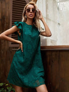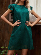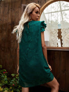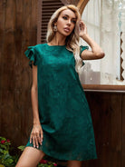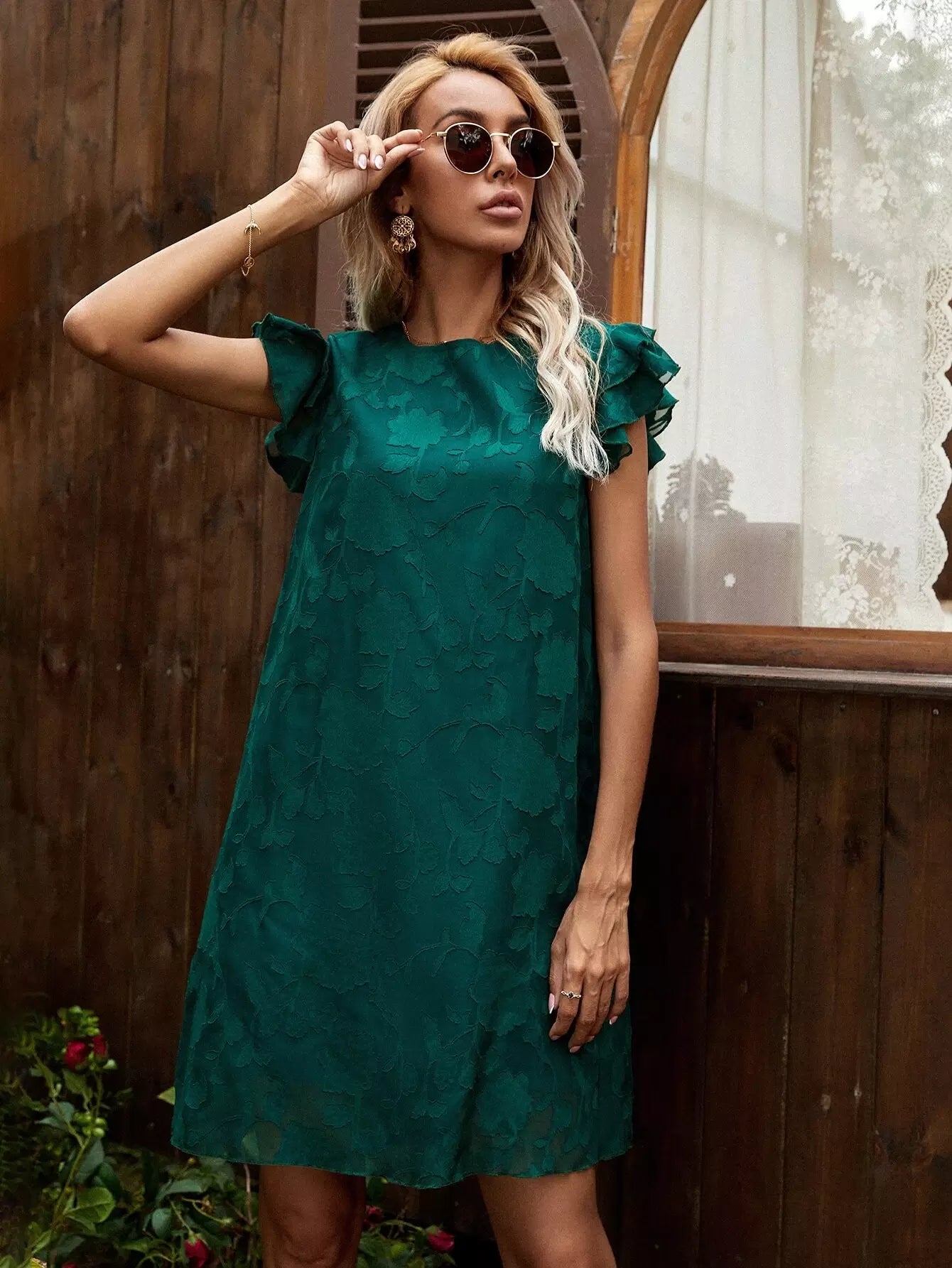 فستان سادة بطبقات من الكشكشة ذات حواف مكشكشة سادة