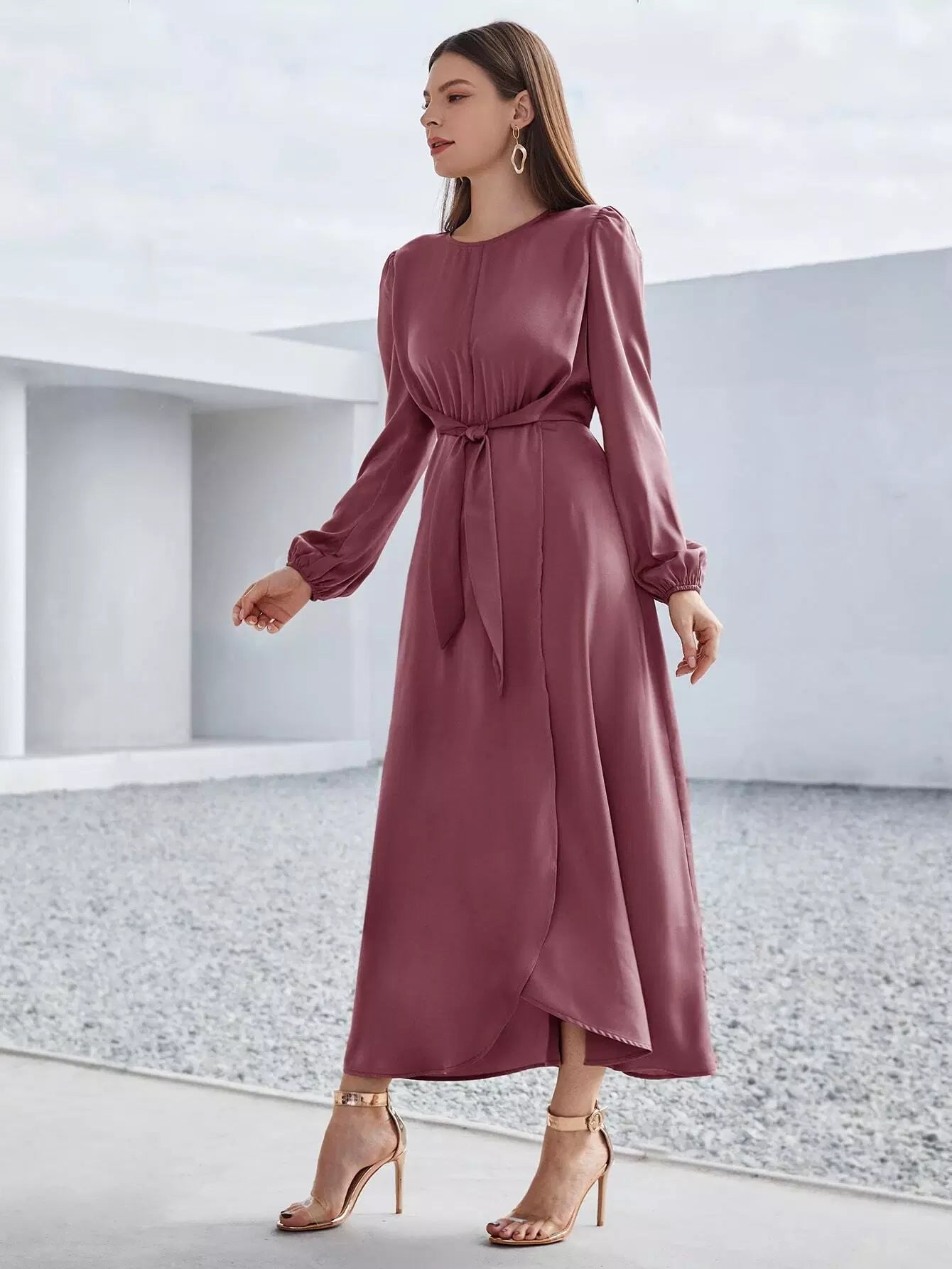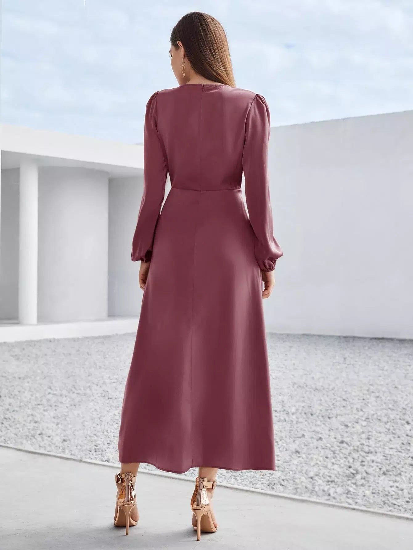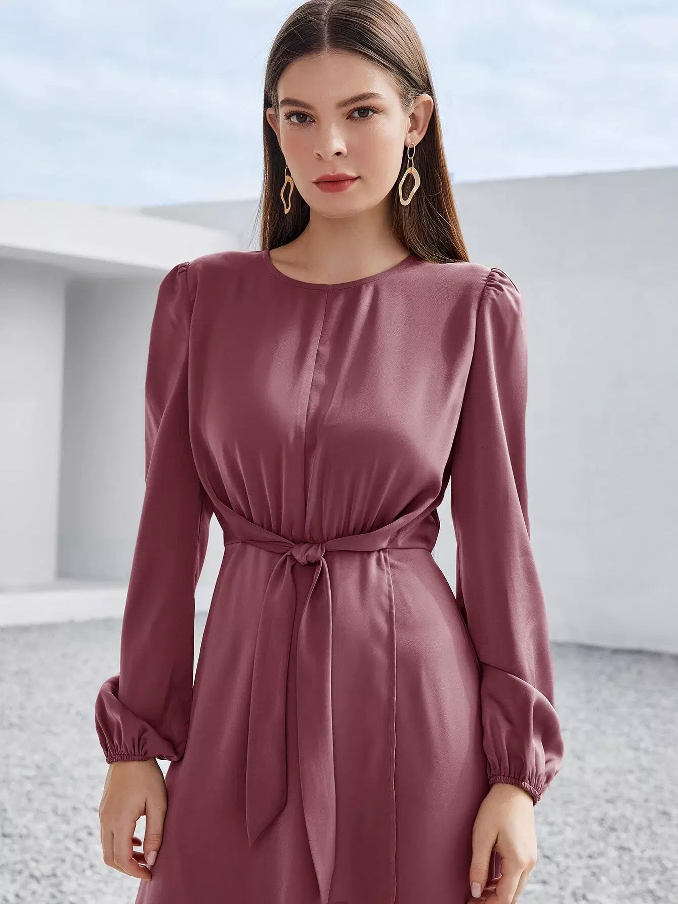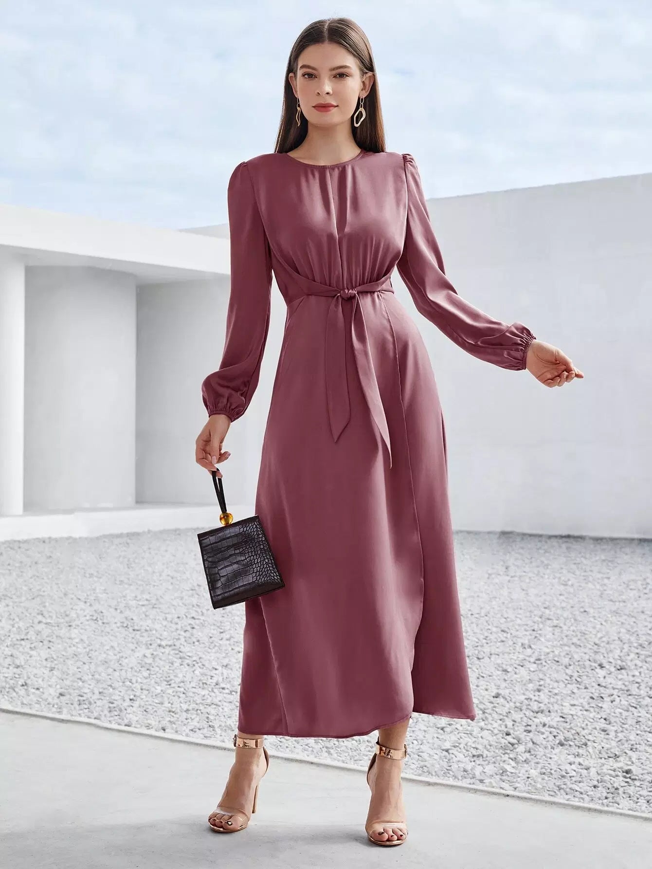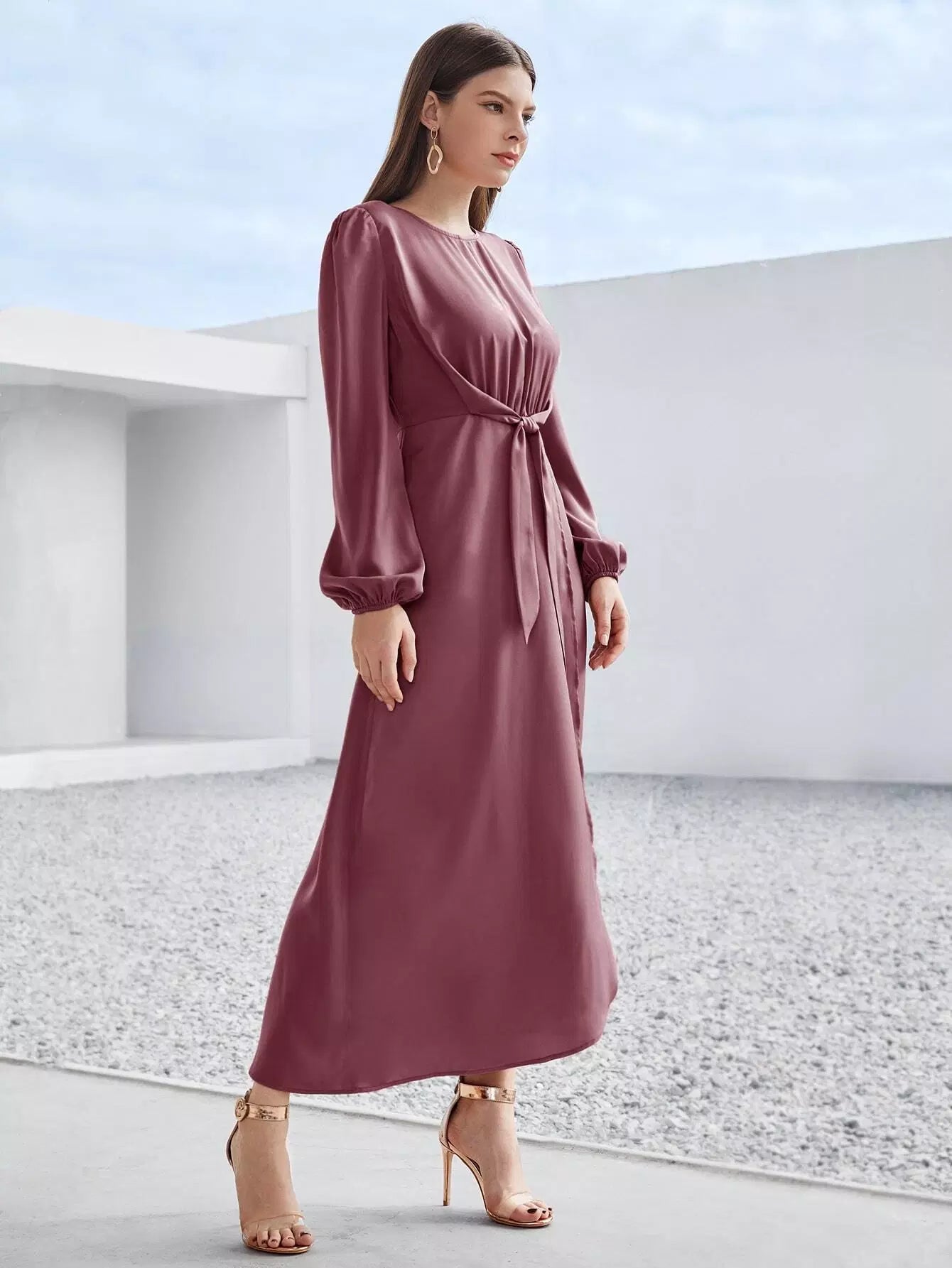 فستان سادة ملفوف بربطة عنق أمامية على شكل حرف A