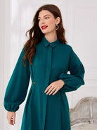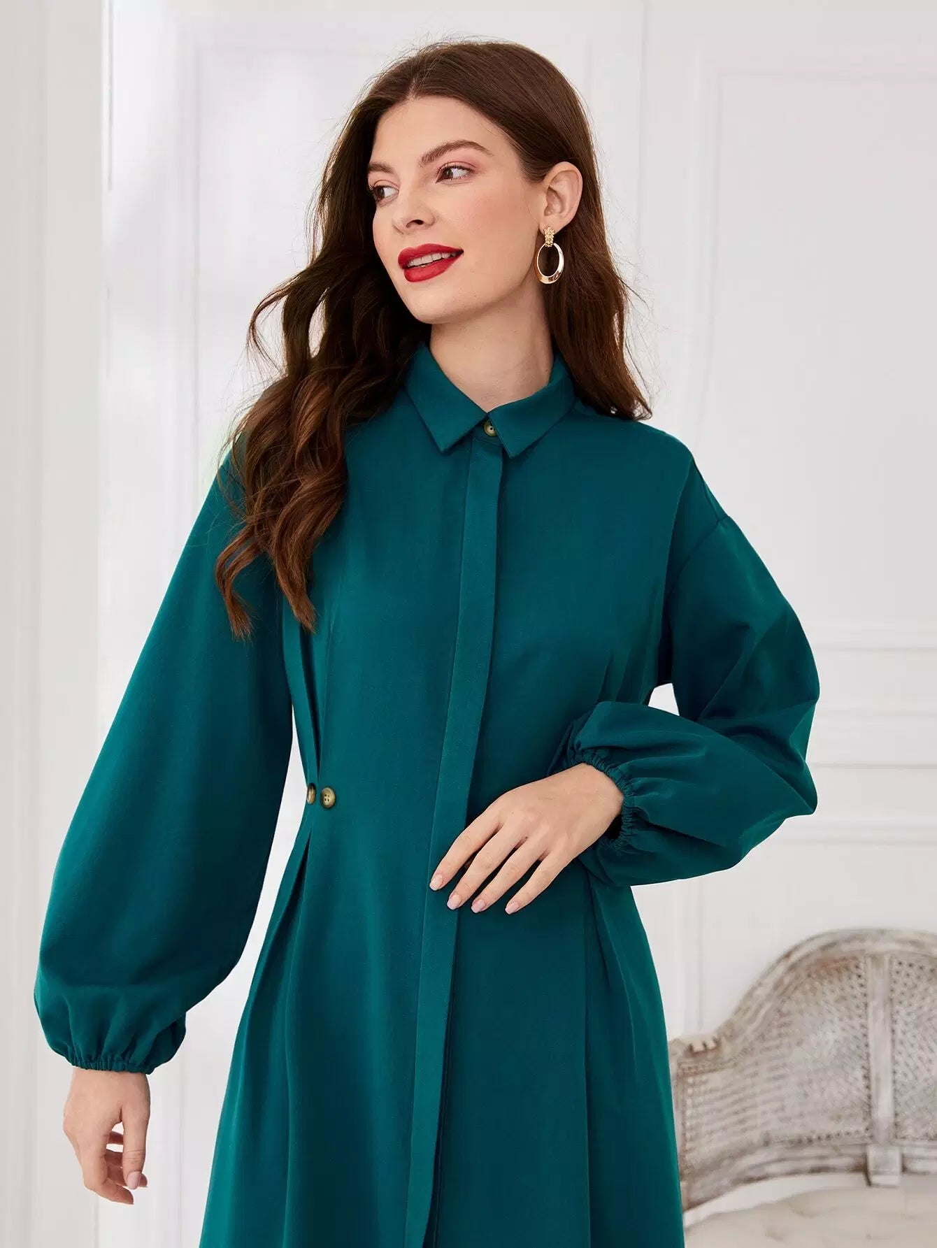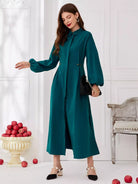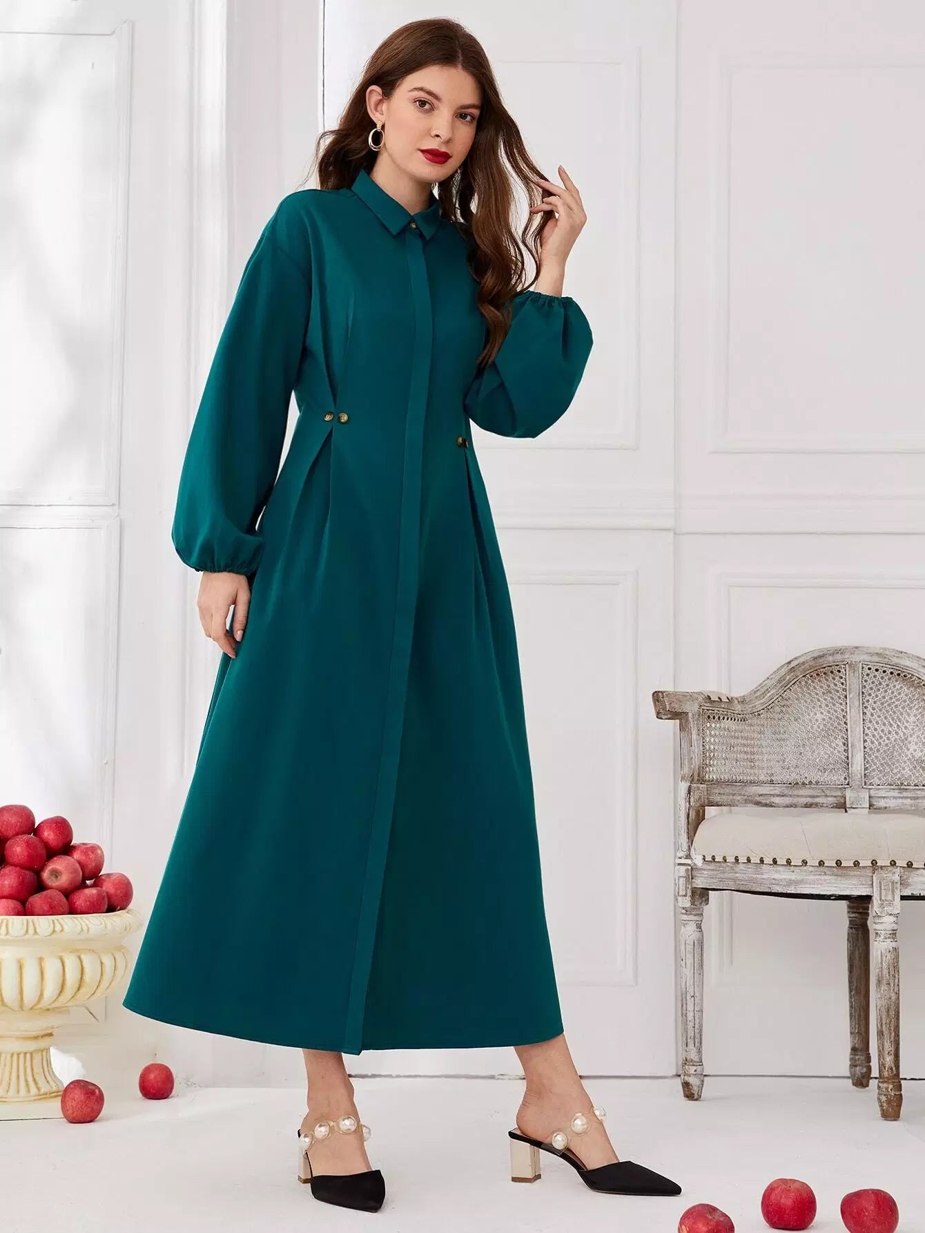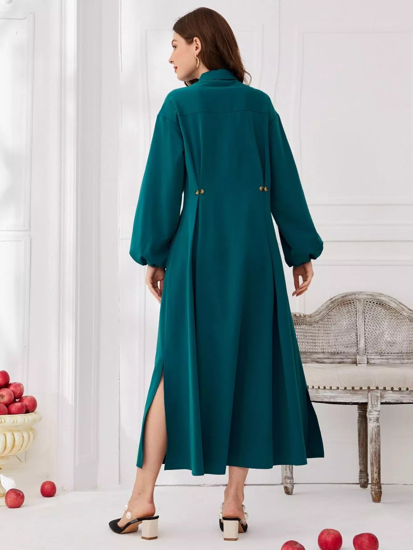 فستان بأكمام أسقف منقسمة من الجانبين، ذو أكمام على شكل حرف A