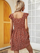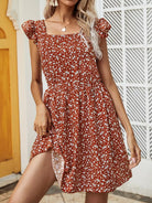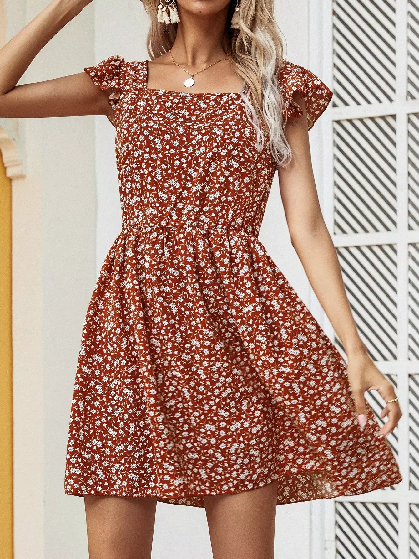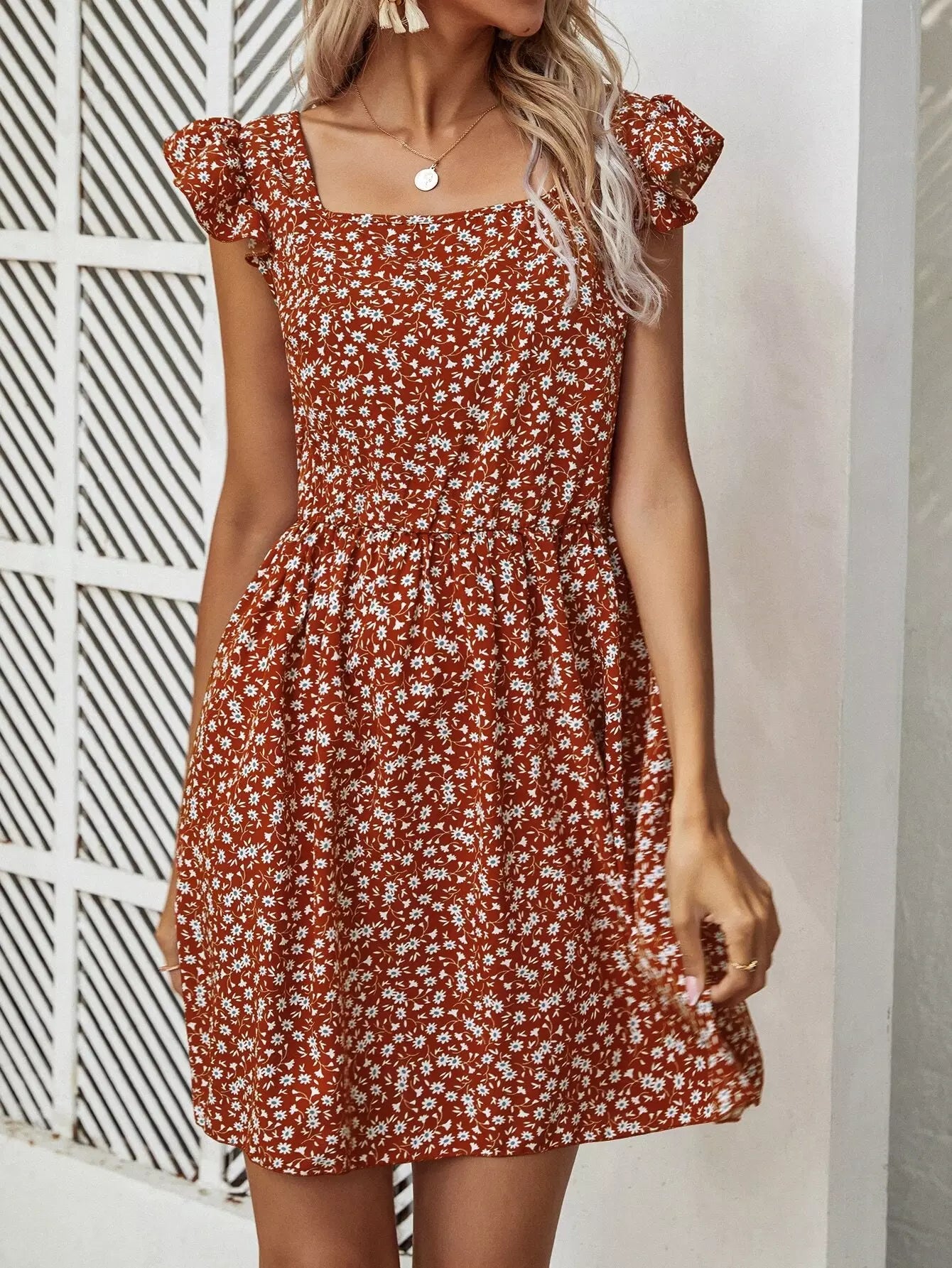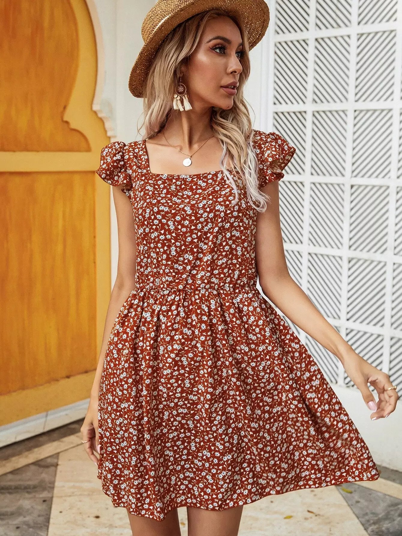فستان بياقة مربعة برقبة مربعة مزين بالورود
