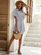 فستان بطبعة مخططة بنصف أزرار أمامية ملتوية بنصف أزرار