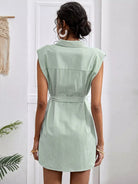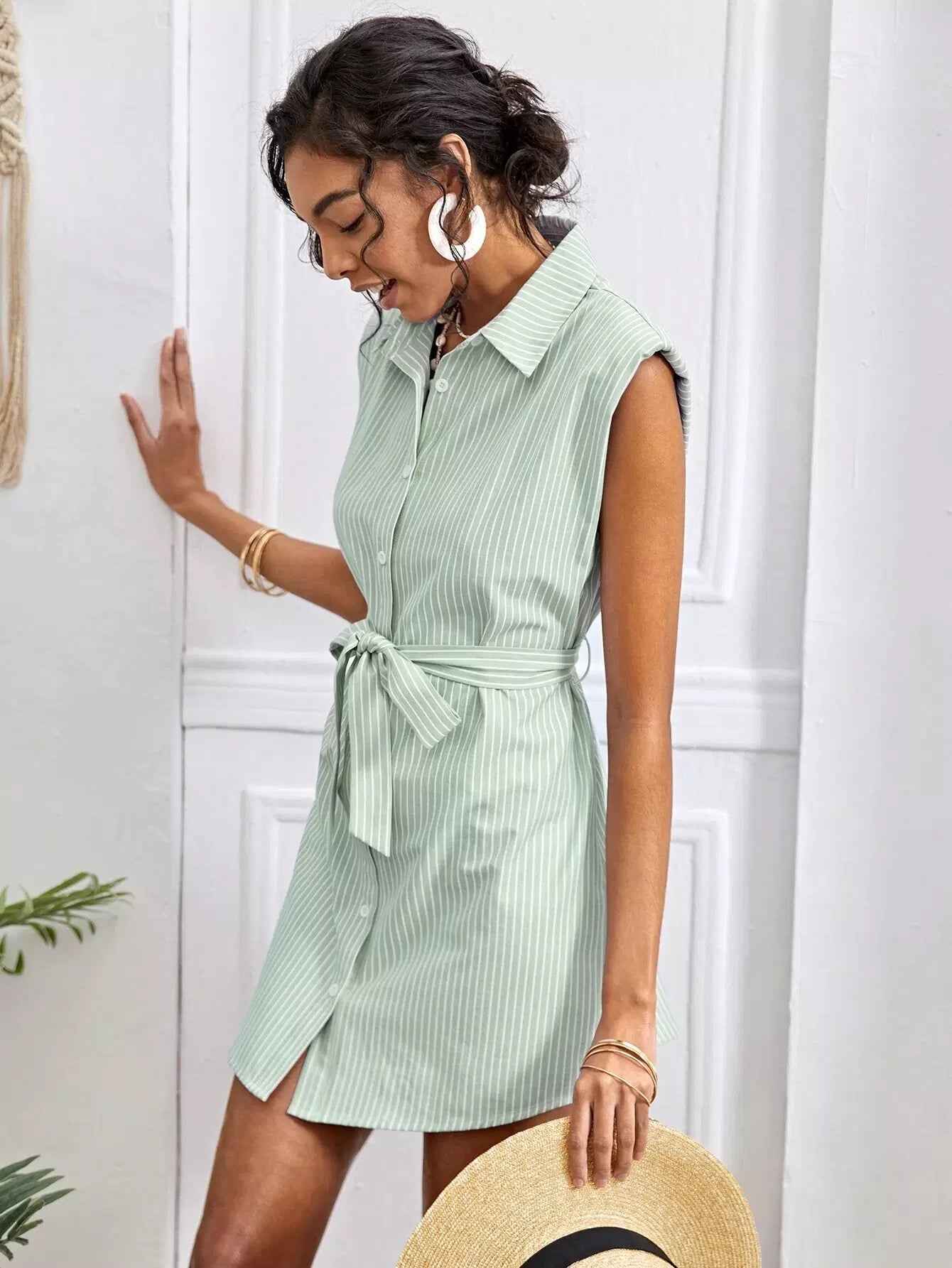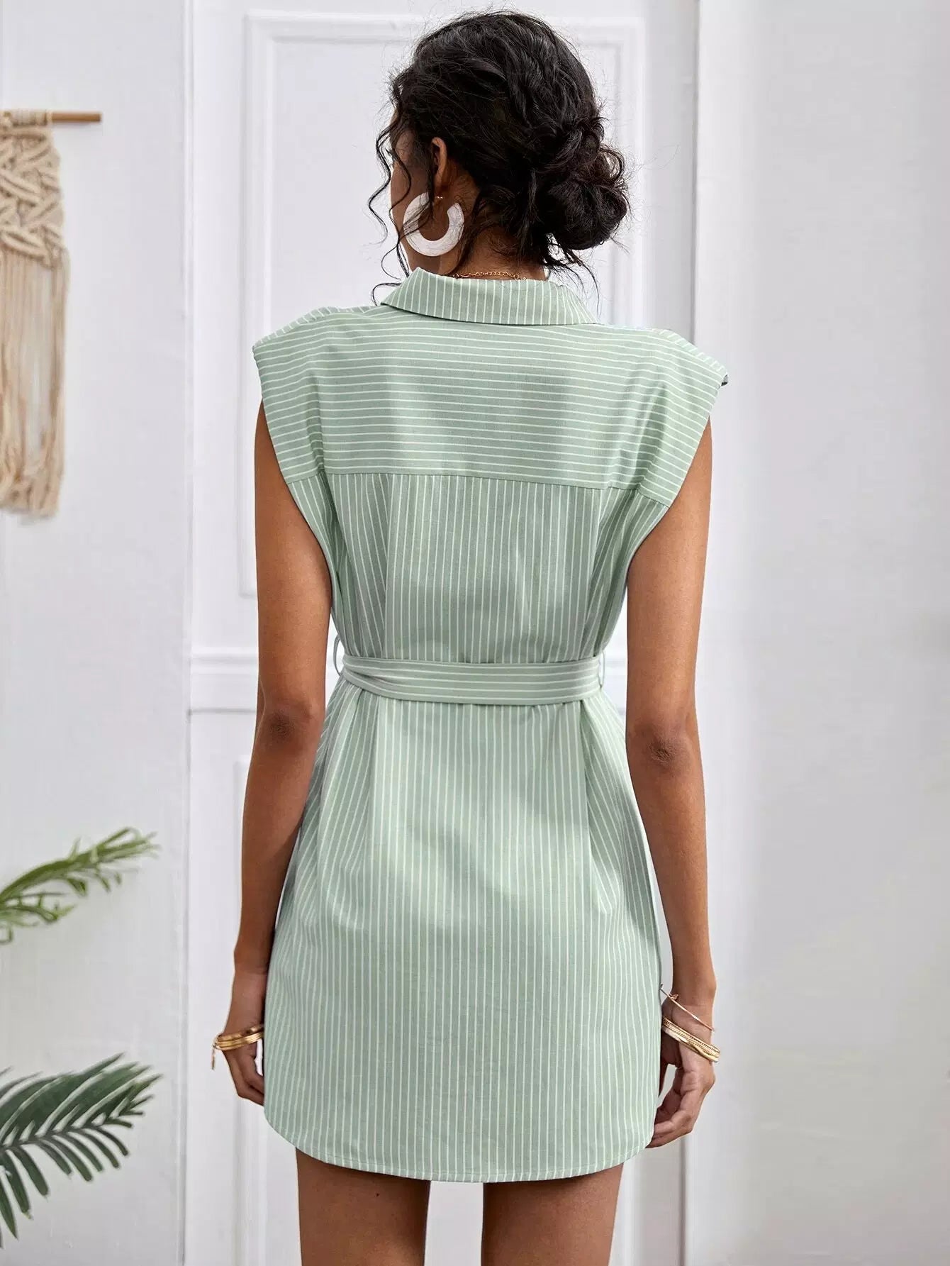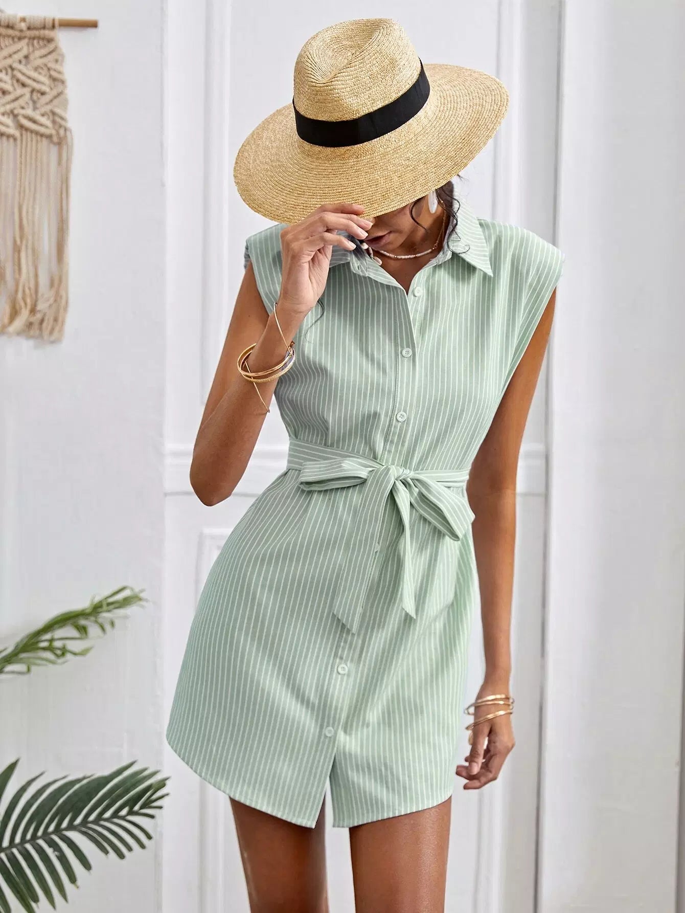 فستان قميص مخطط بربطة كتف مخططة بربطة كتف مخططة