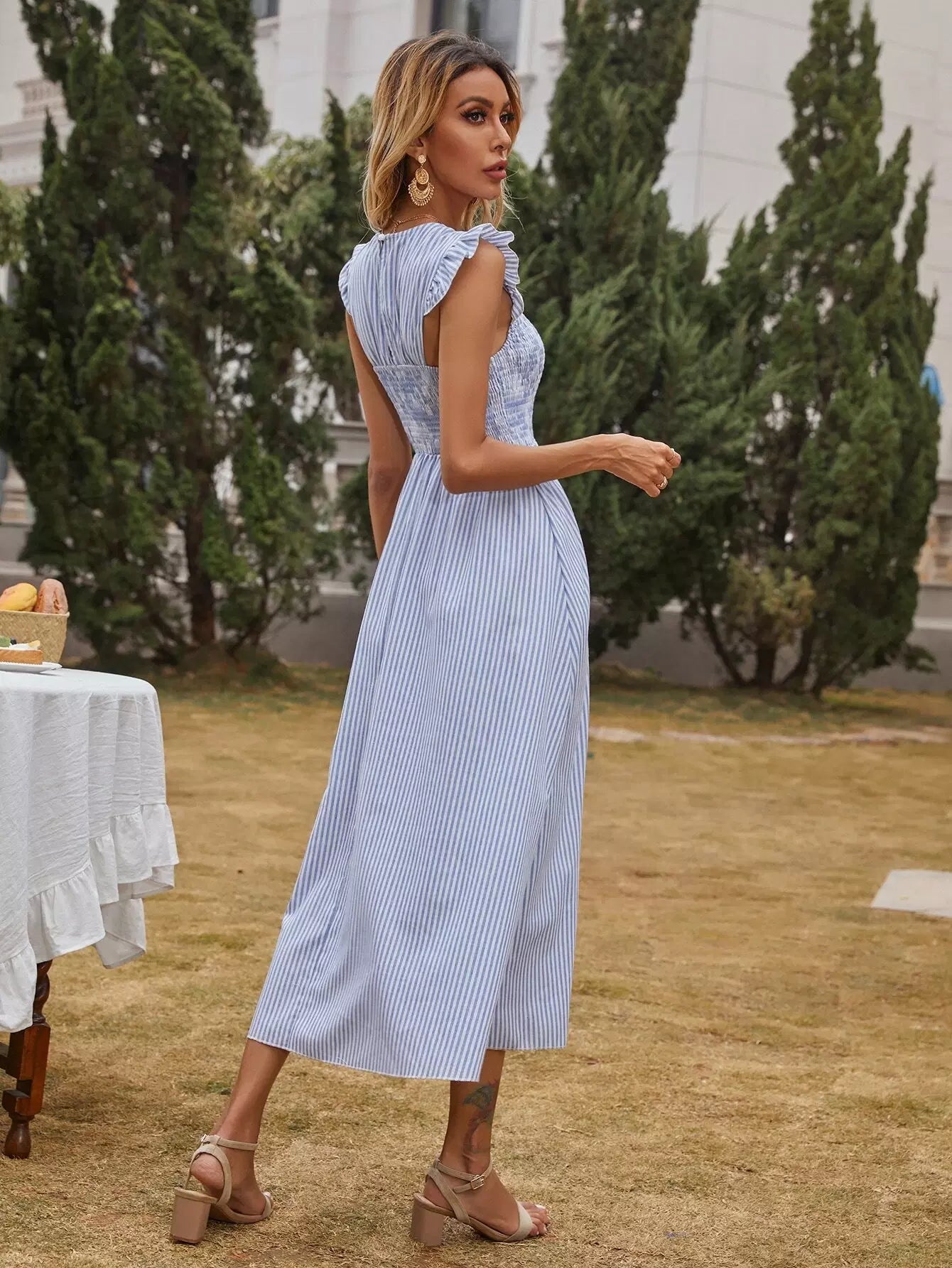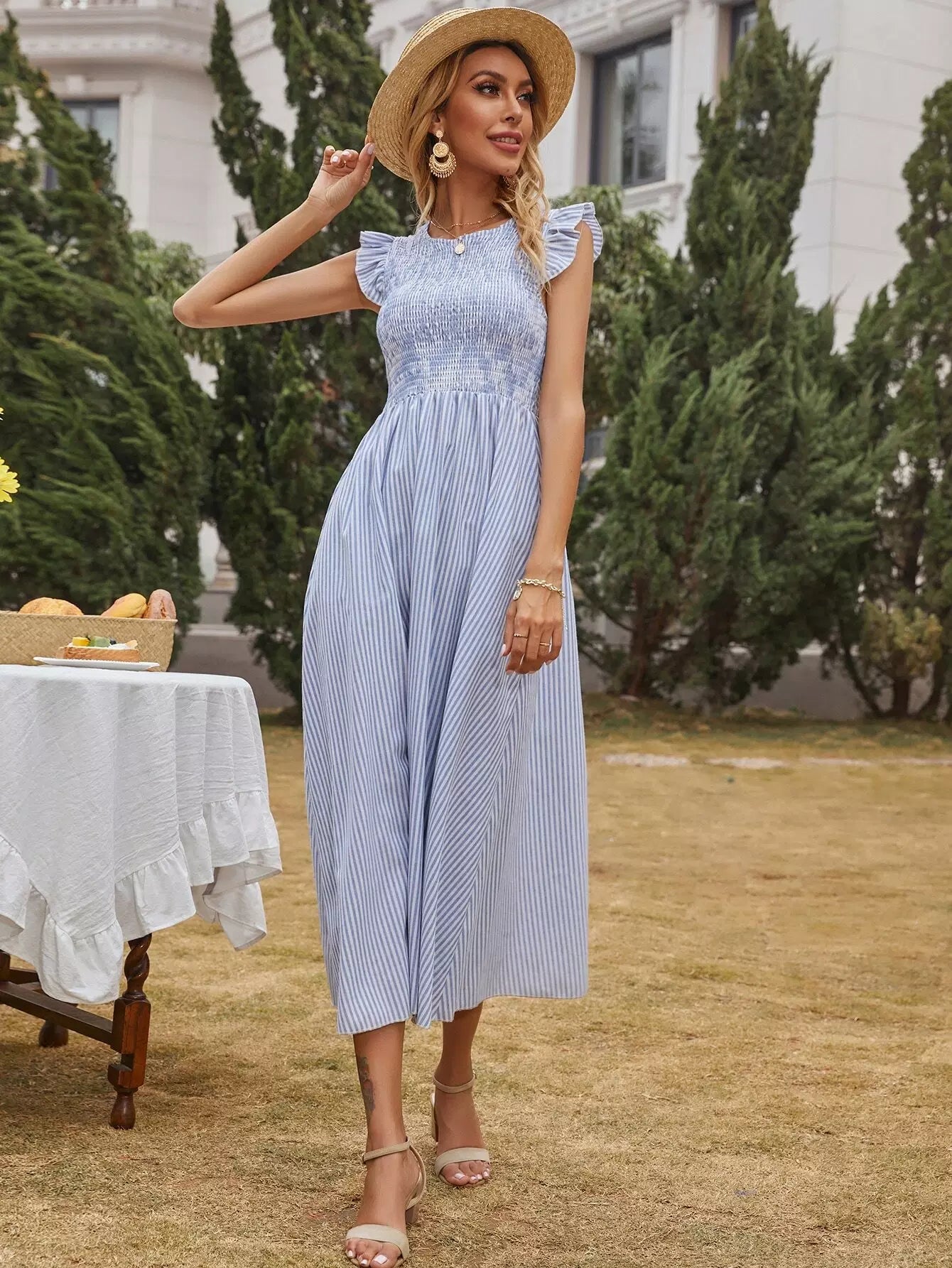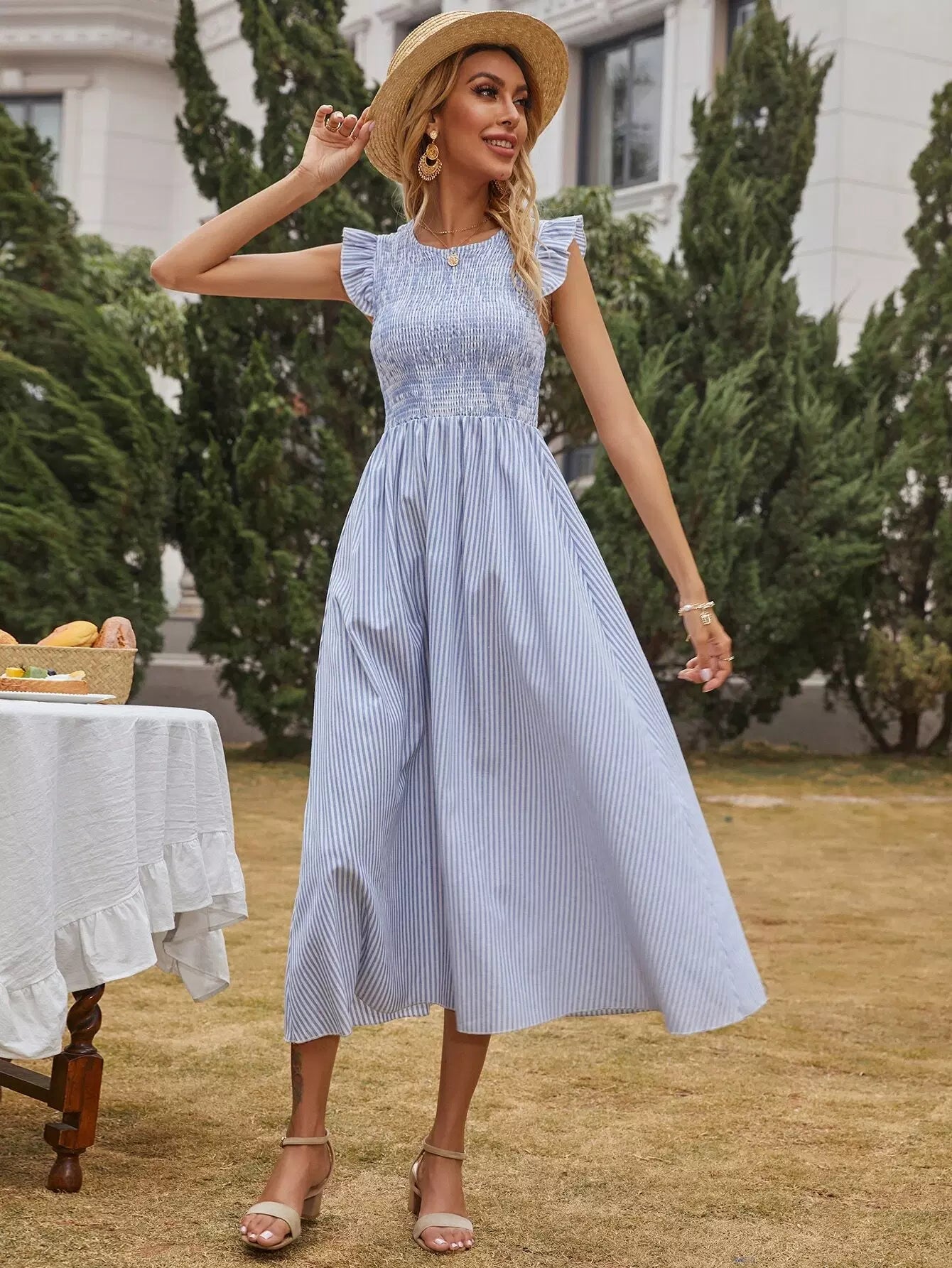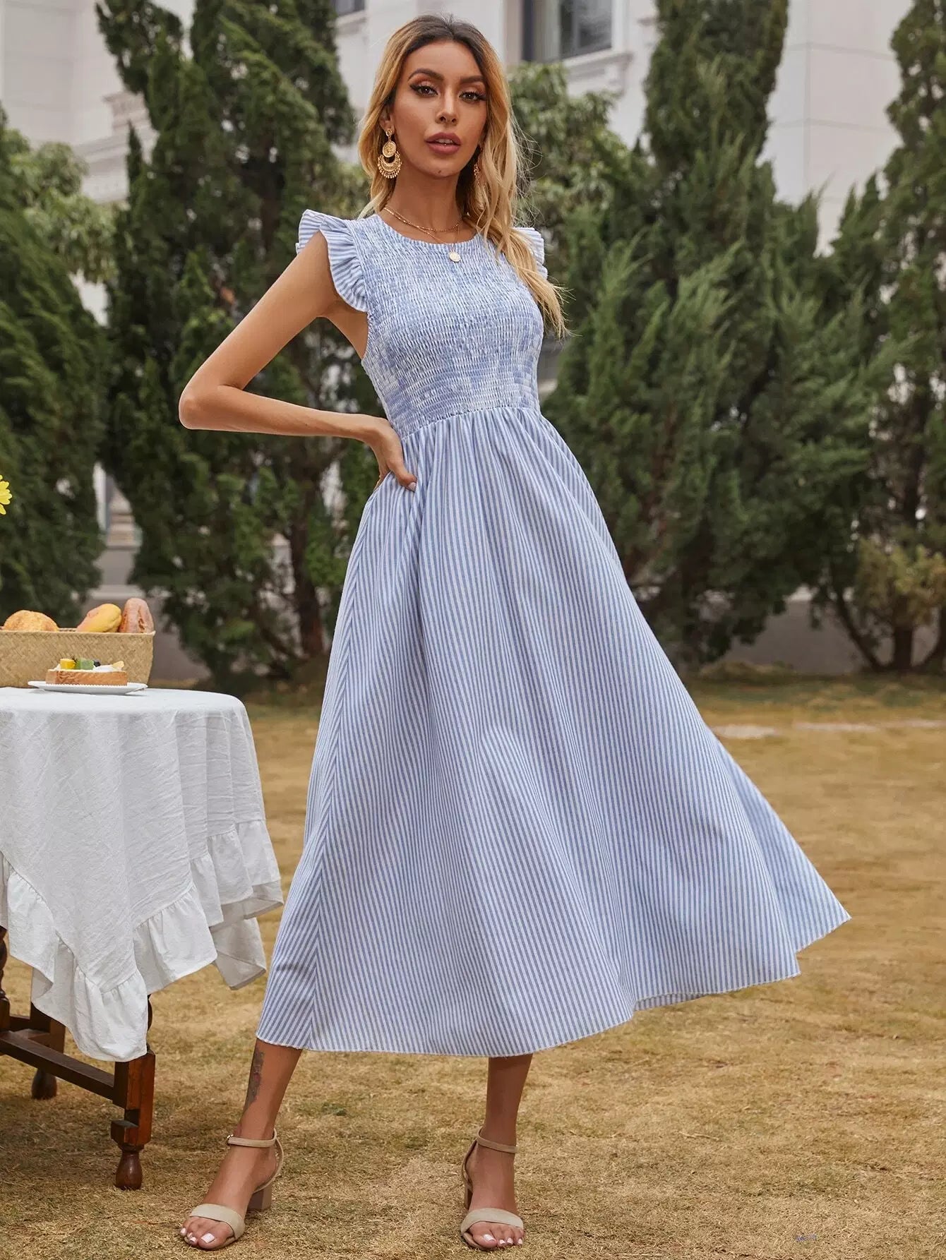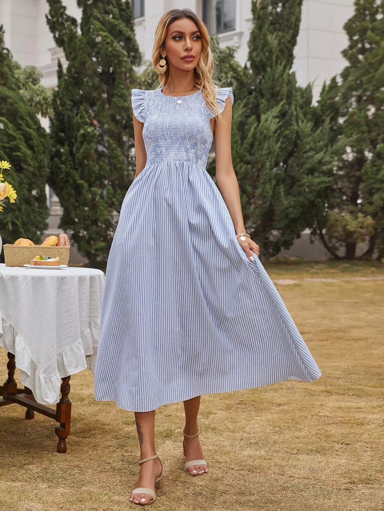 فستان مخطط بكشكش مخطط بكشكش على شكل حرف A