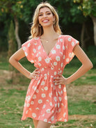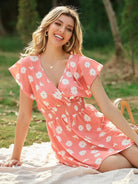 فستان كشكش على الخصر مزين بالورود من الأمام