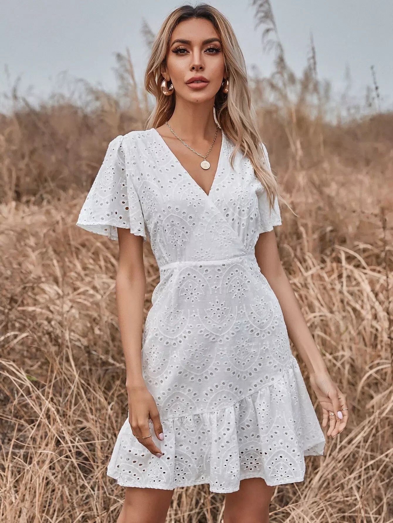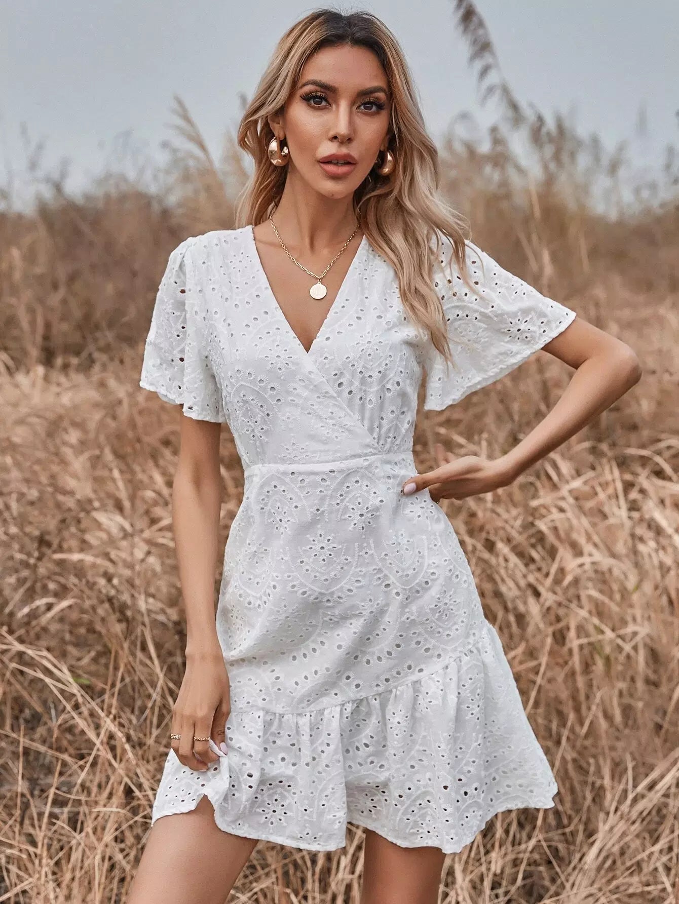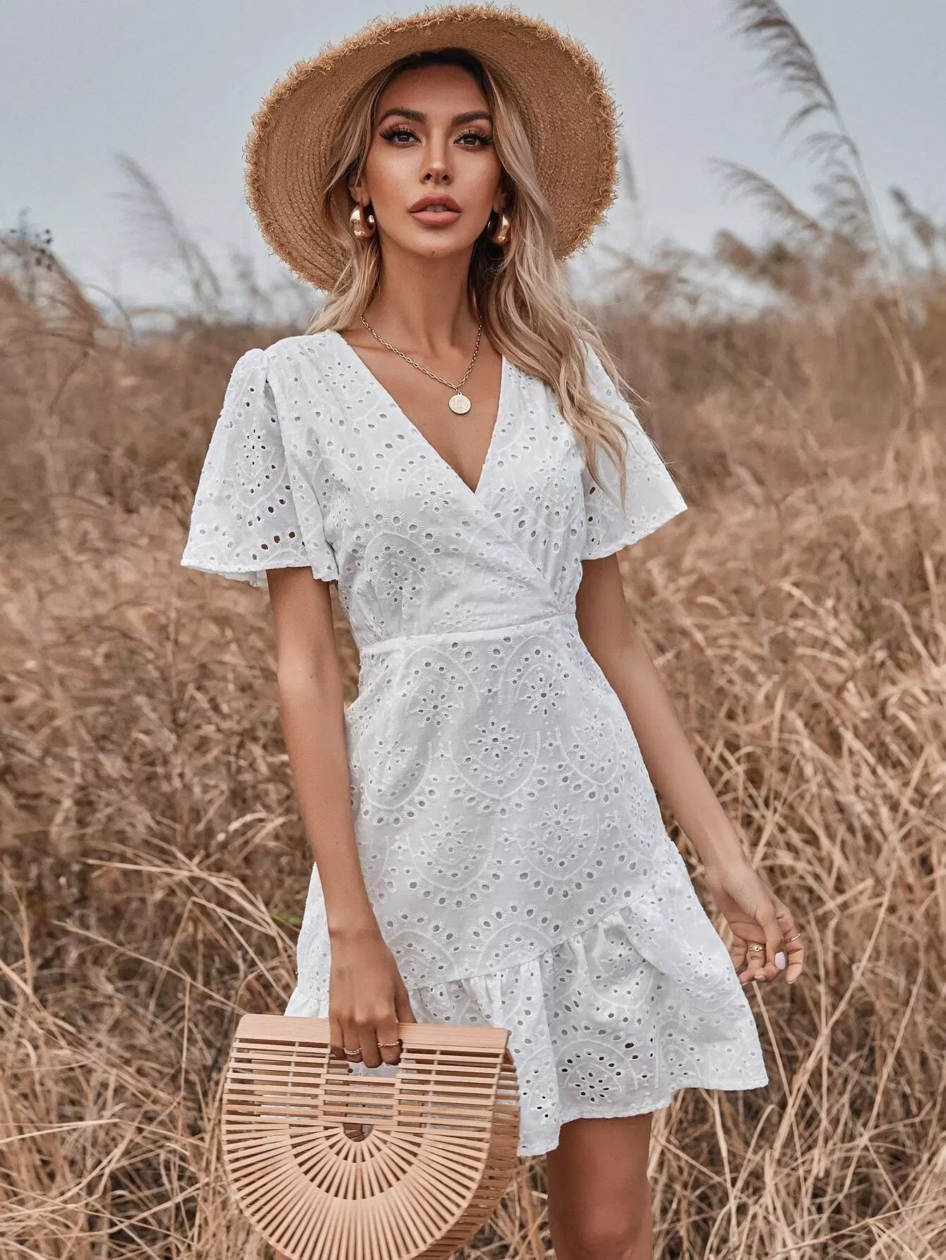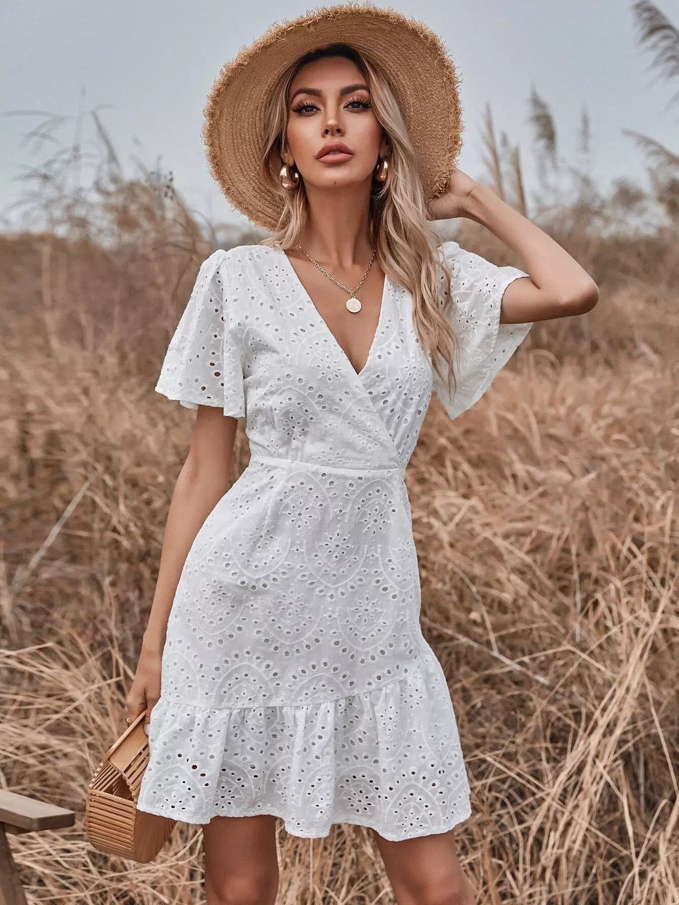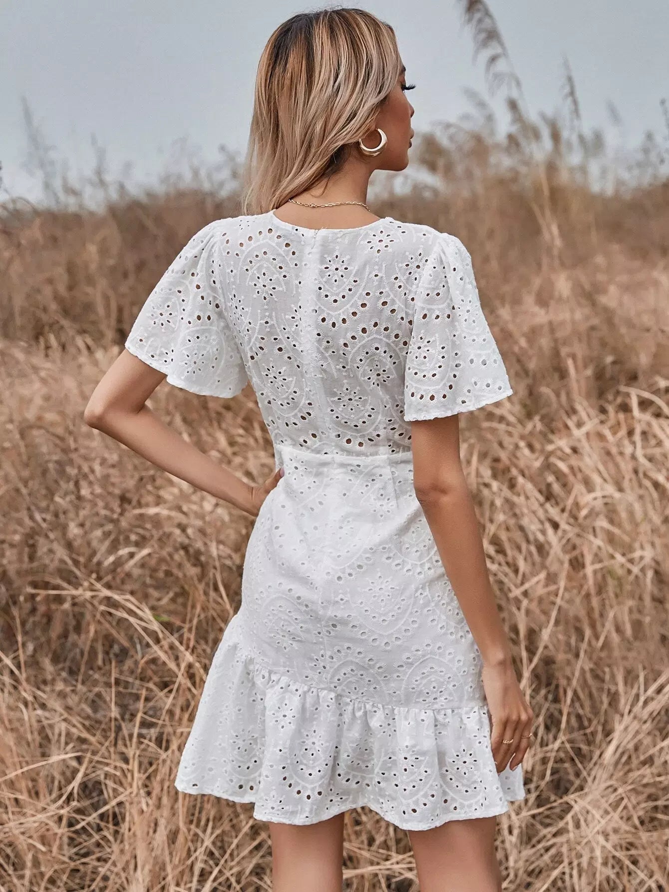 فستان مزين بتطريزات على شكل حرف A من الأمام مع تطريزات على شكل حرف A