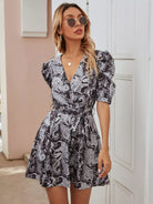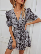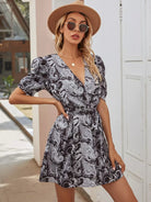 فستان بيزلي بياقة منتفخة وأكمام منتفخة بدون حزام