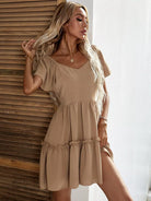 فستان برقبة على شكل كشكش برقبة على شكل كشكش